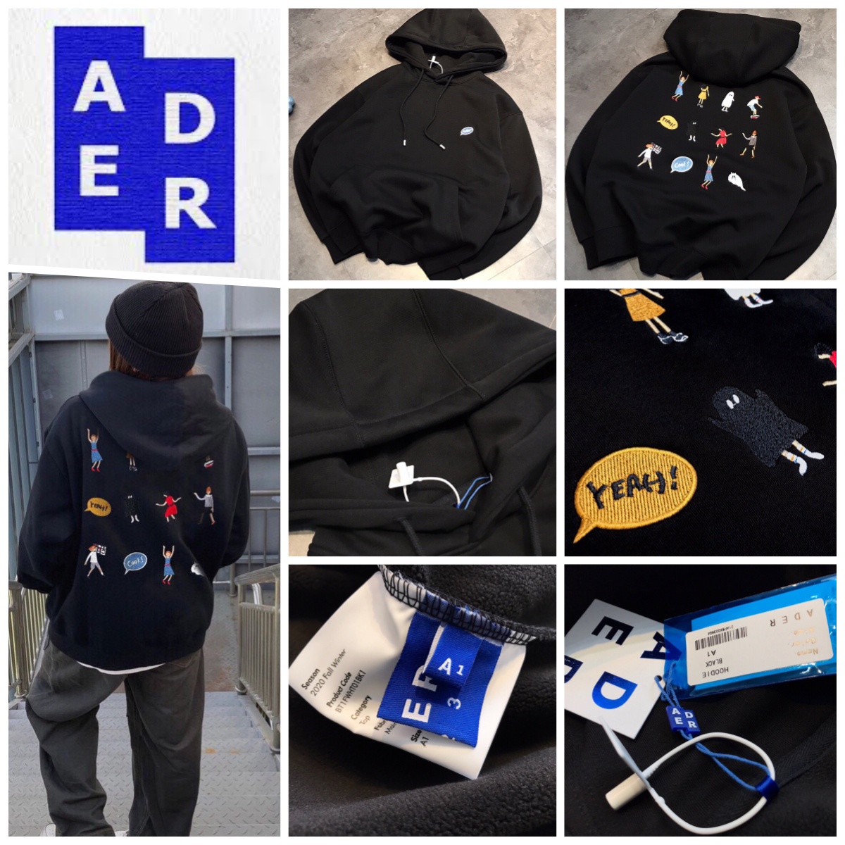ADER 後背刺繡人物加絨連帽衛衣