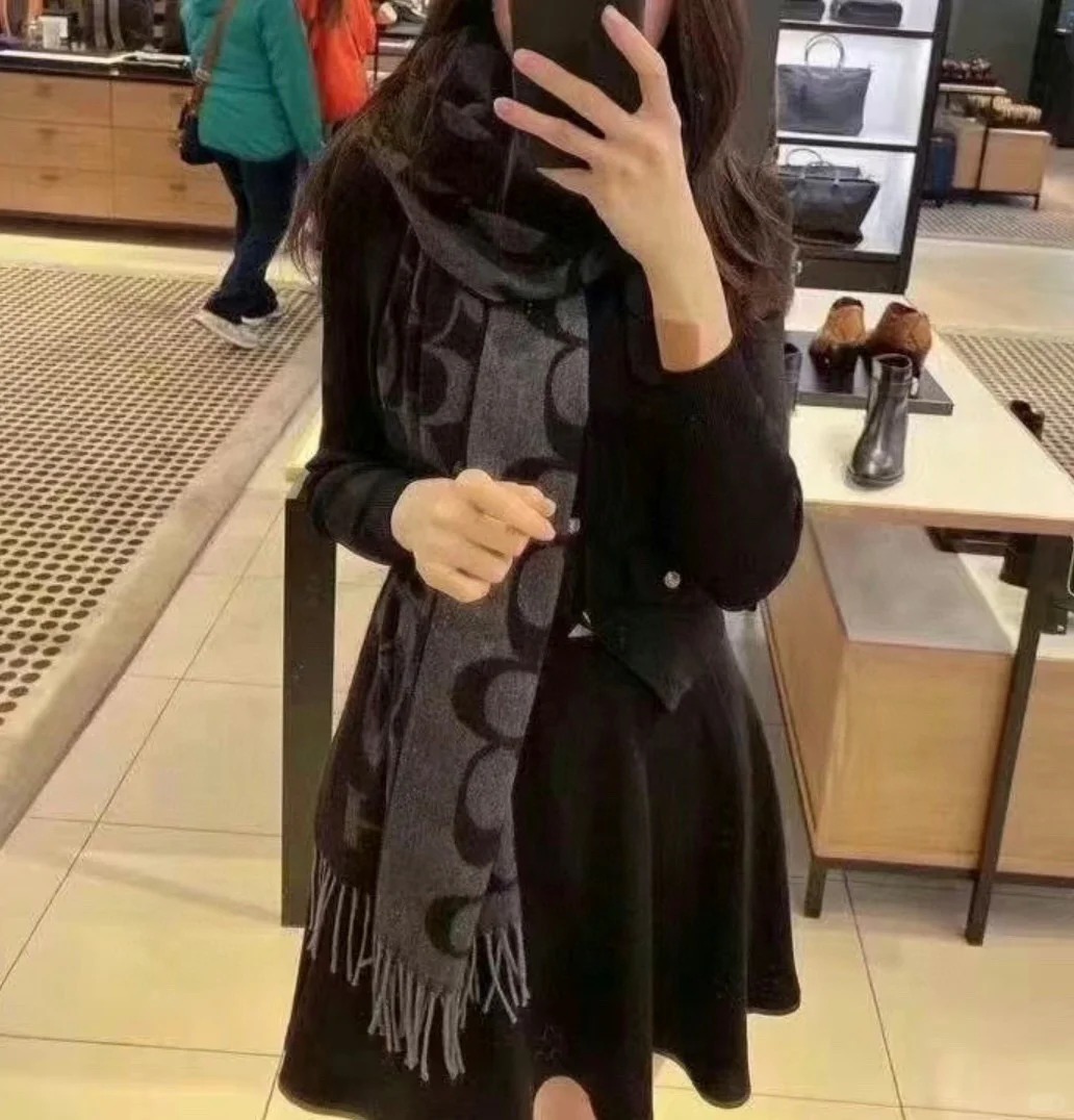 【頂級原單】COACH Signature Oversized Muffler 斜字母羊毛羊絨頸巾