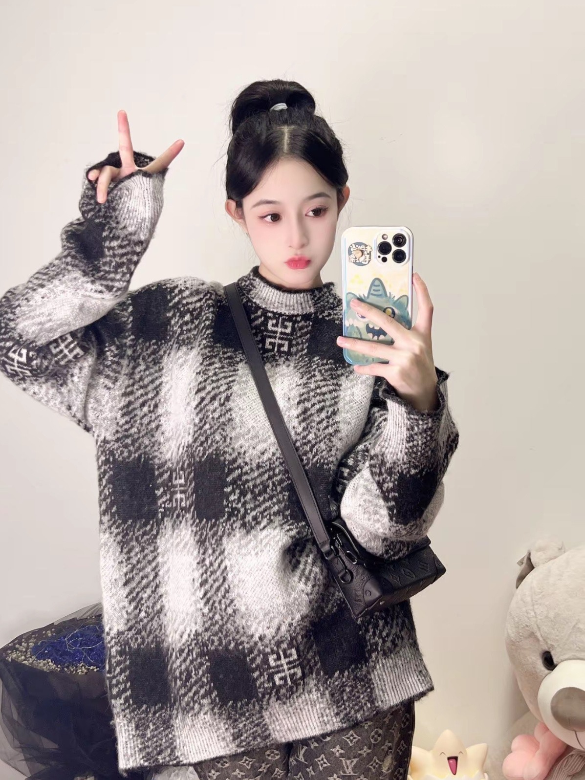 Givenchy 四宫格提花马海毛圓領针织冷衫