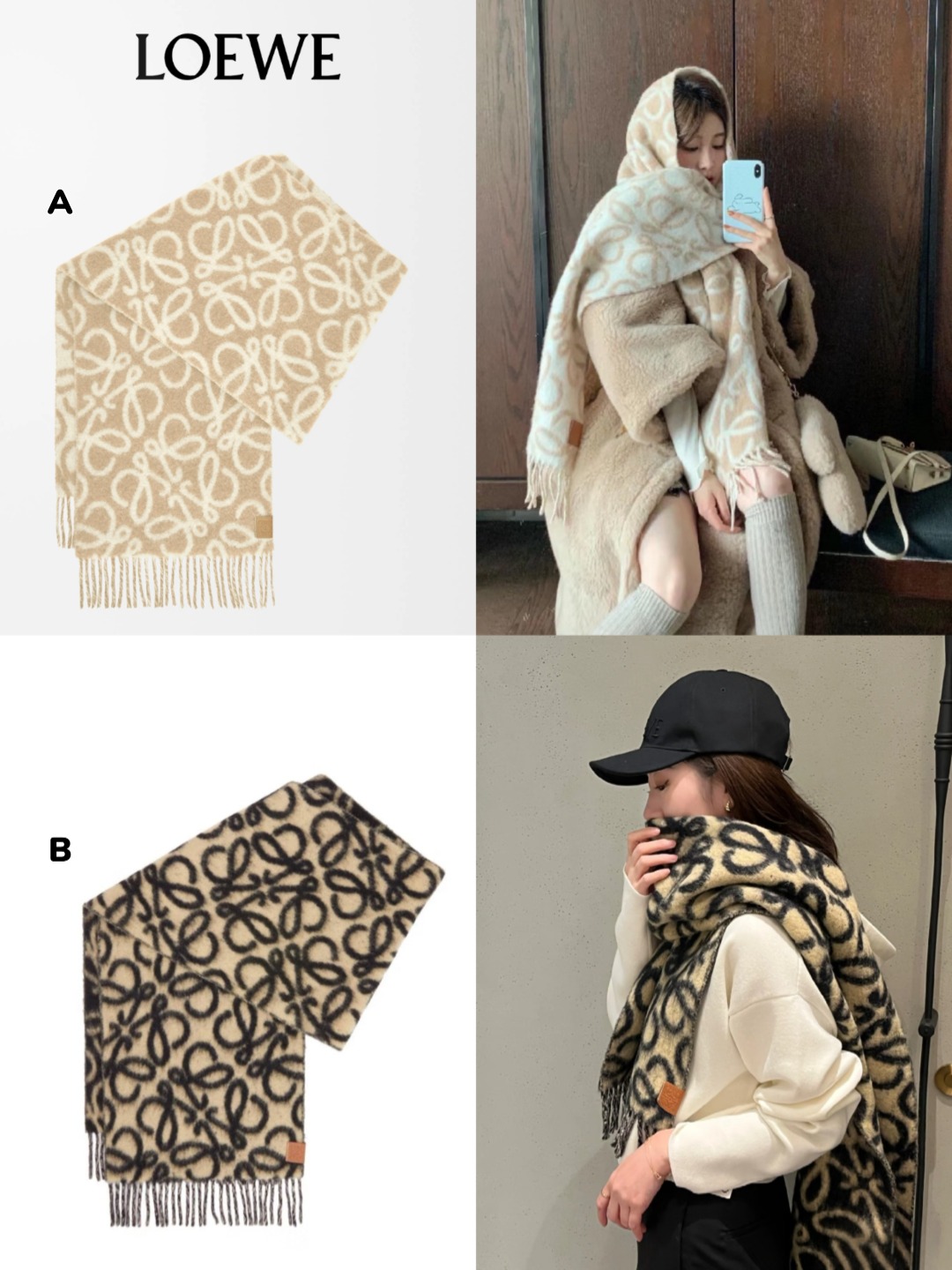 【頂級原單】LOEWE Anagram Scarf in Wool And Cashmere 雙面斜紋棋盤格撞色頸巾🧣