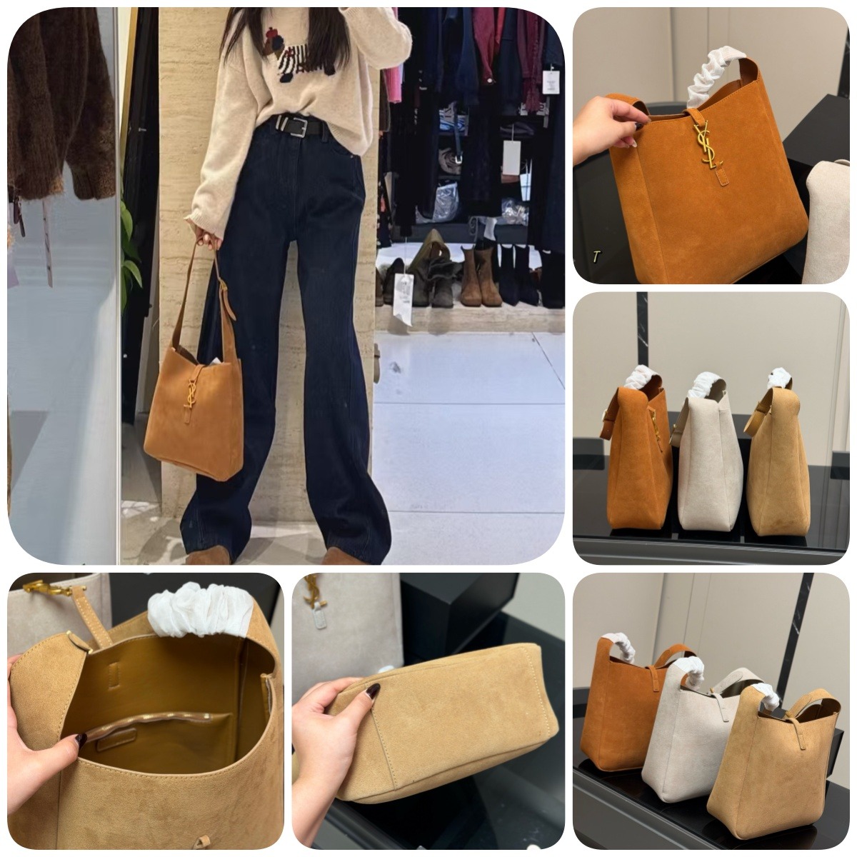 YSL 絨面革水桶托特包 連禮盒