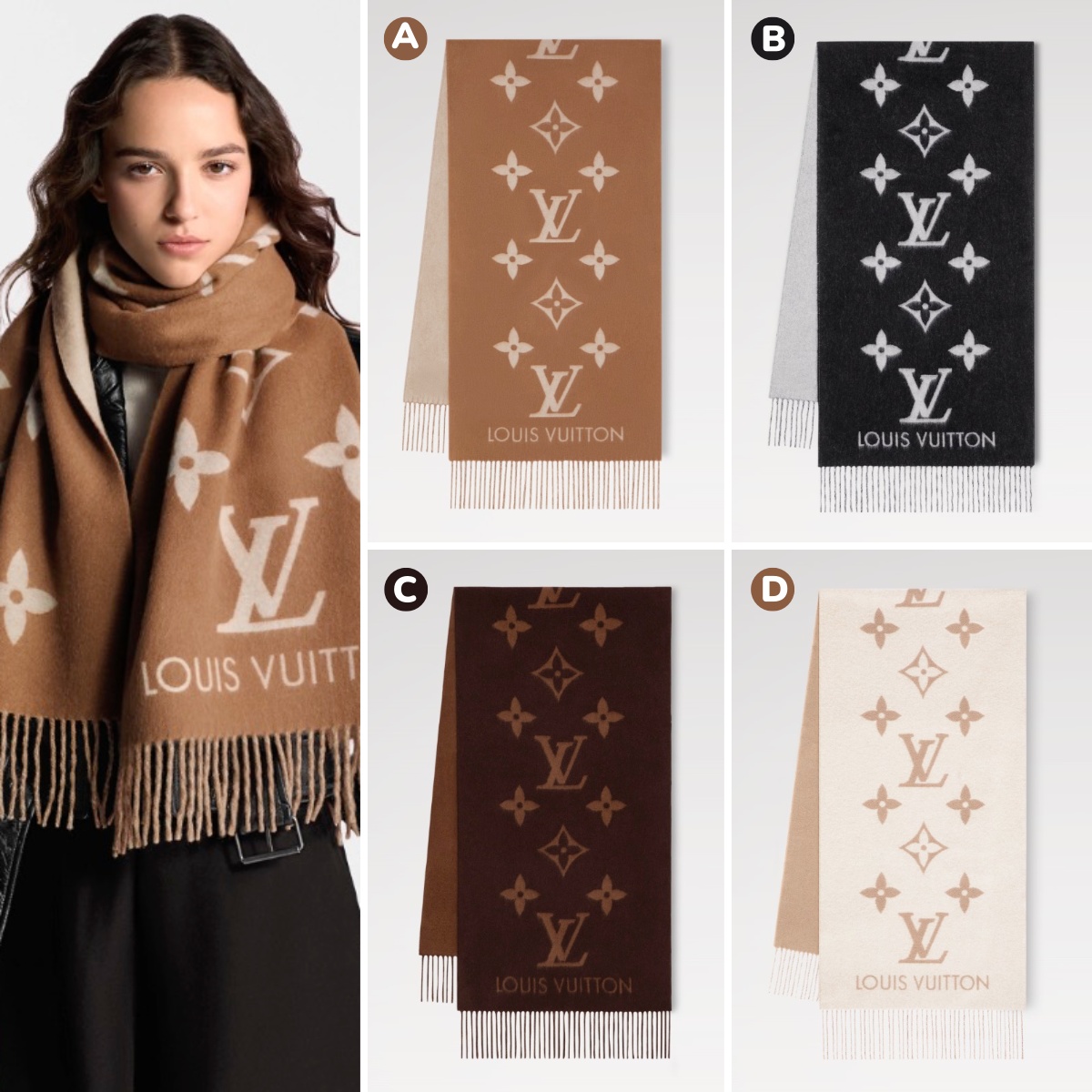 【頂級原單】LOUIS VUITTON Reykjavik scarf LV經典圖案山羊絨雙面頸巾