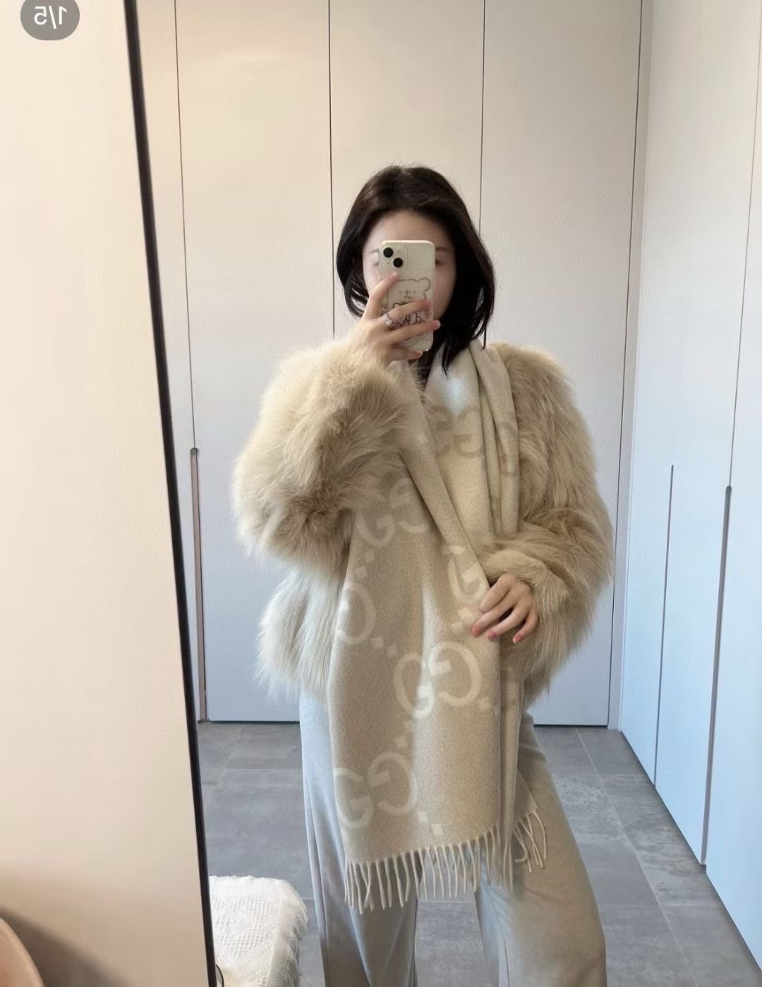 【頂級原單】GUCCI GG cashmere lamé jacquard scarf 羊絨頸巾🧣