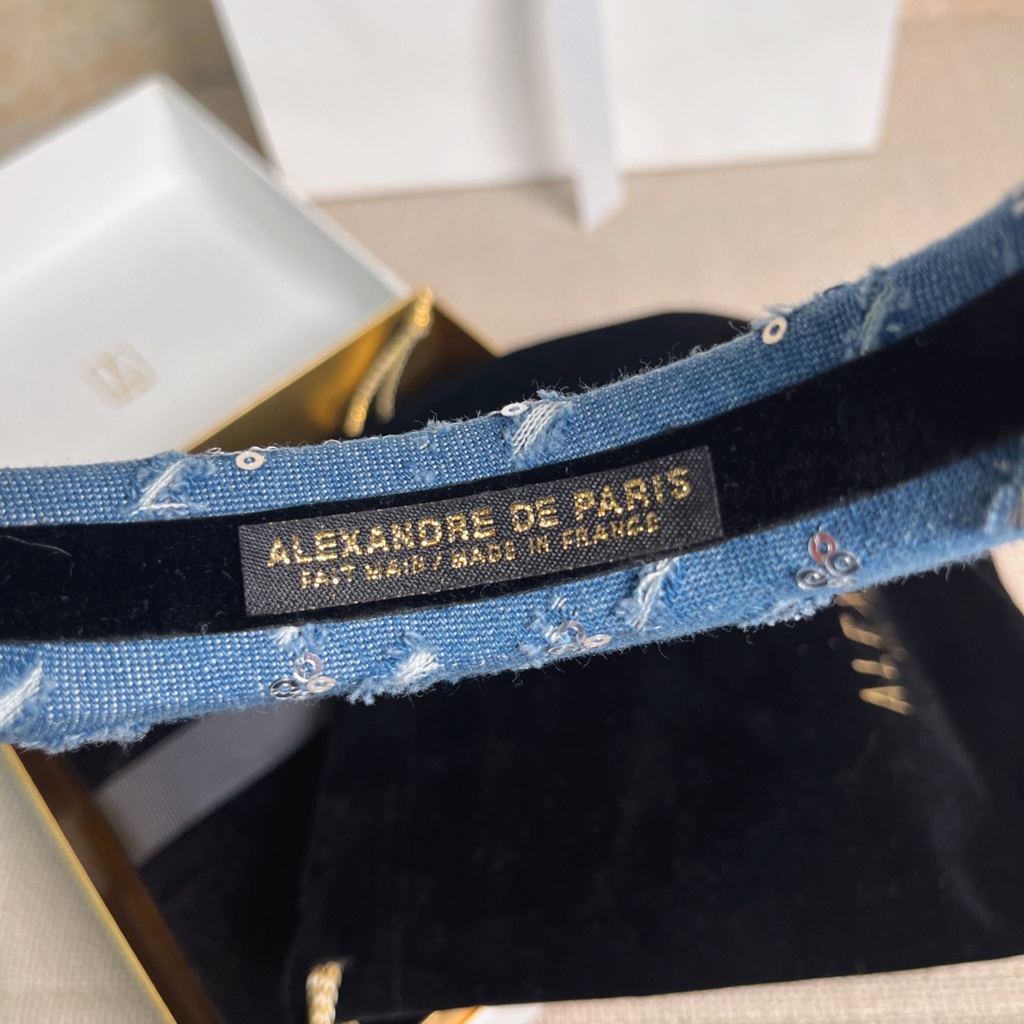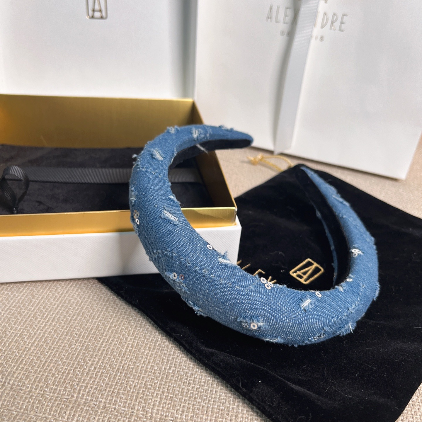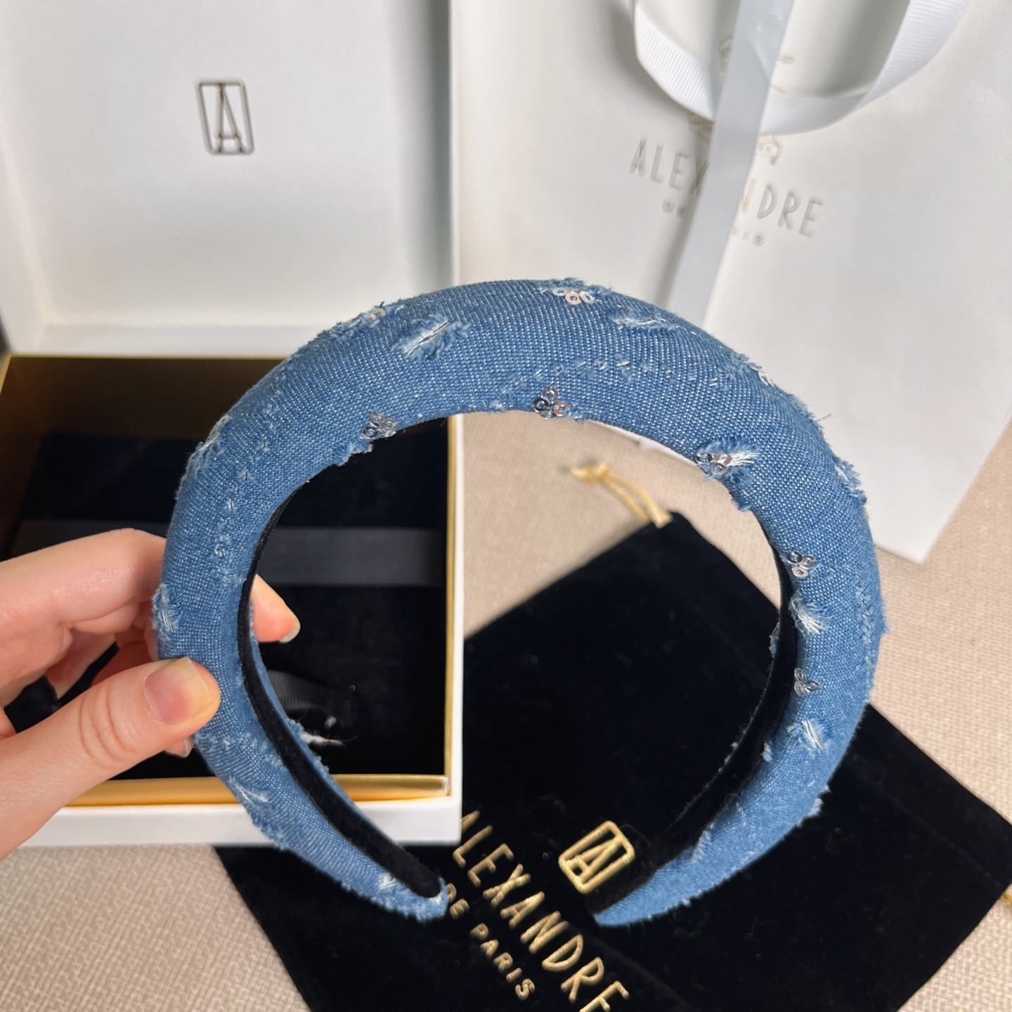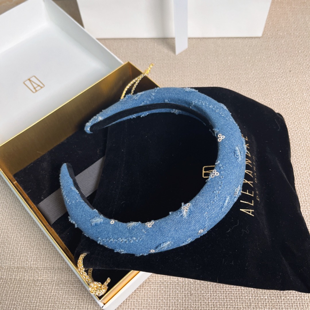 法國🇫🇷ALEXANDRE DE PARIS 夢醒系列亮片牛仔藍髮箍