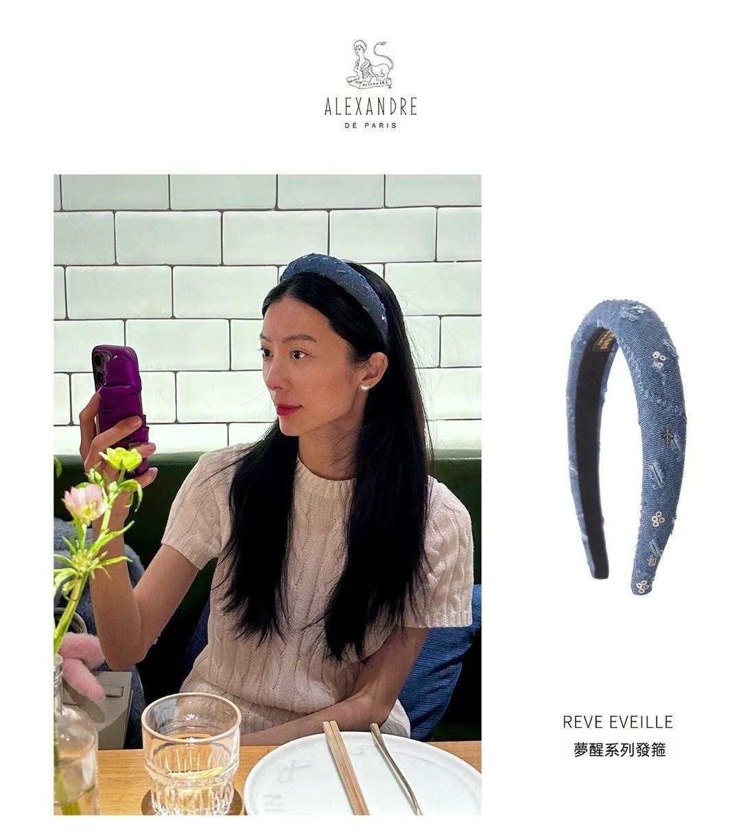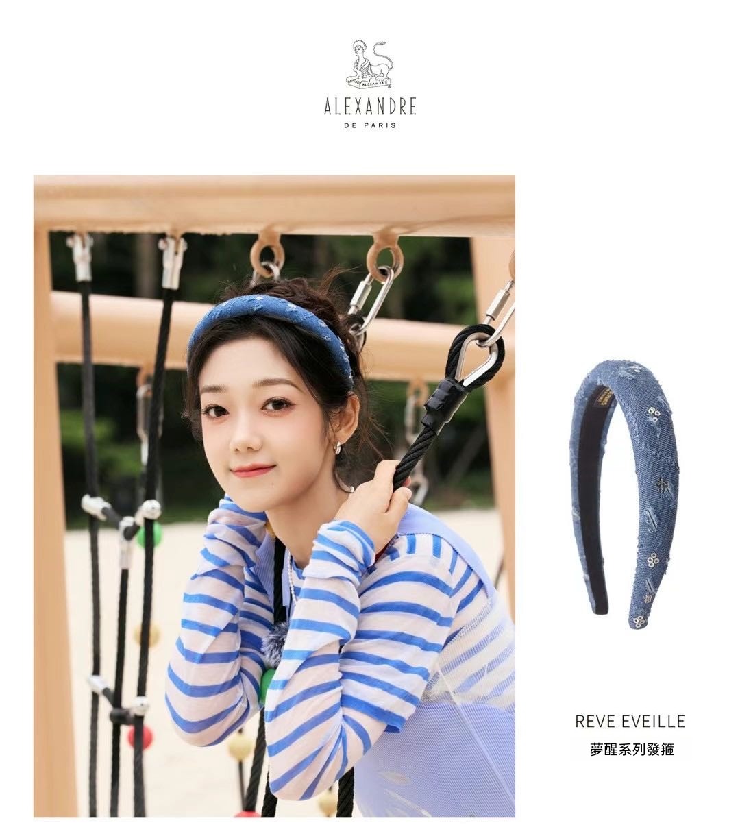 法國🇫🇷ALEXANDRE DE PARIS 「REVE EVEILLE 夢醒系列發箍」🥖牛仔面料綴以隨性灑脫的亮片等裝飾,與同色穿搭呼應,清新靈動,成為時髦焦點🔥清爽牛仔藍色調則襯托隨性不羈的率性氣質 😎無論是搭配休閒 T 恤 👕洋裝 👗還是西裝外套 🧥都能完美駕馭,展現甜美與酷感並存的穿搭氛圍 😈