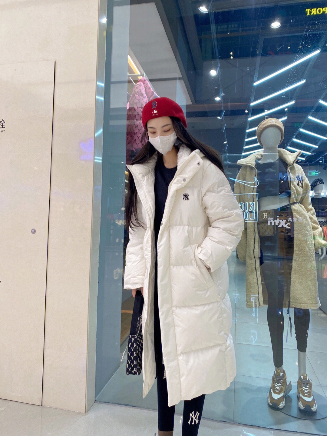 韓國🇰🇷 MLB 長款刺繡小標連帽羽絨服外套