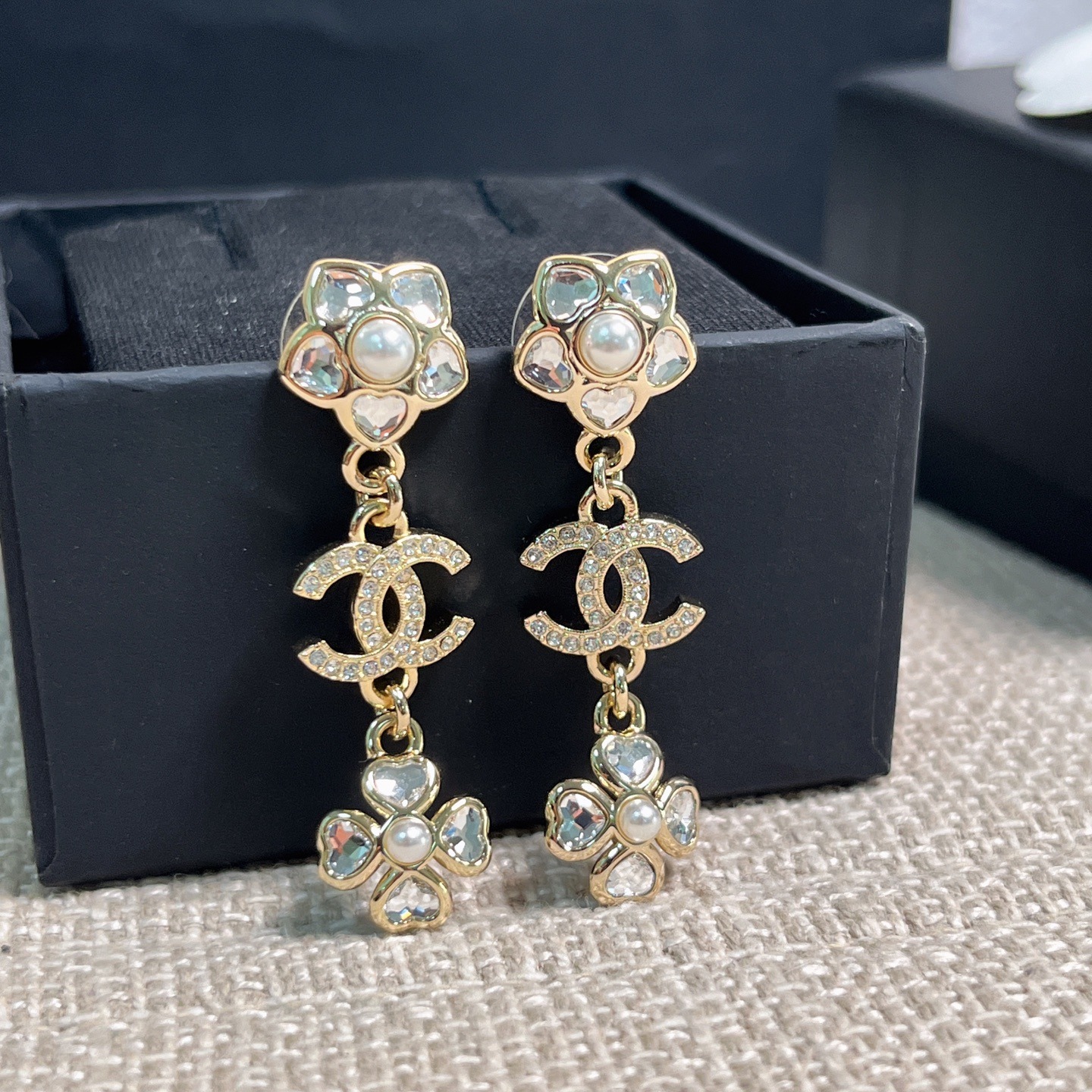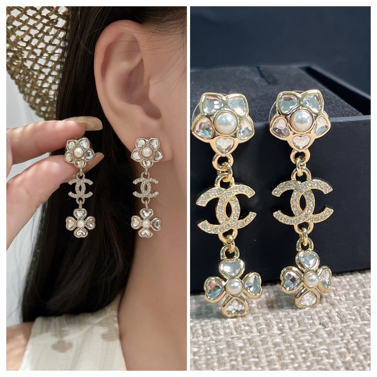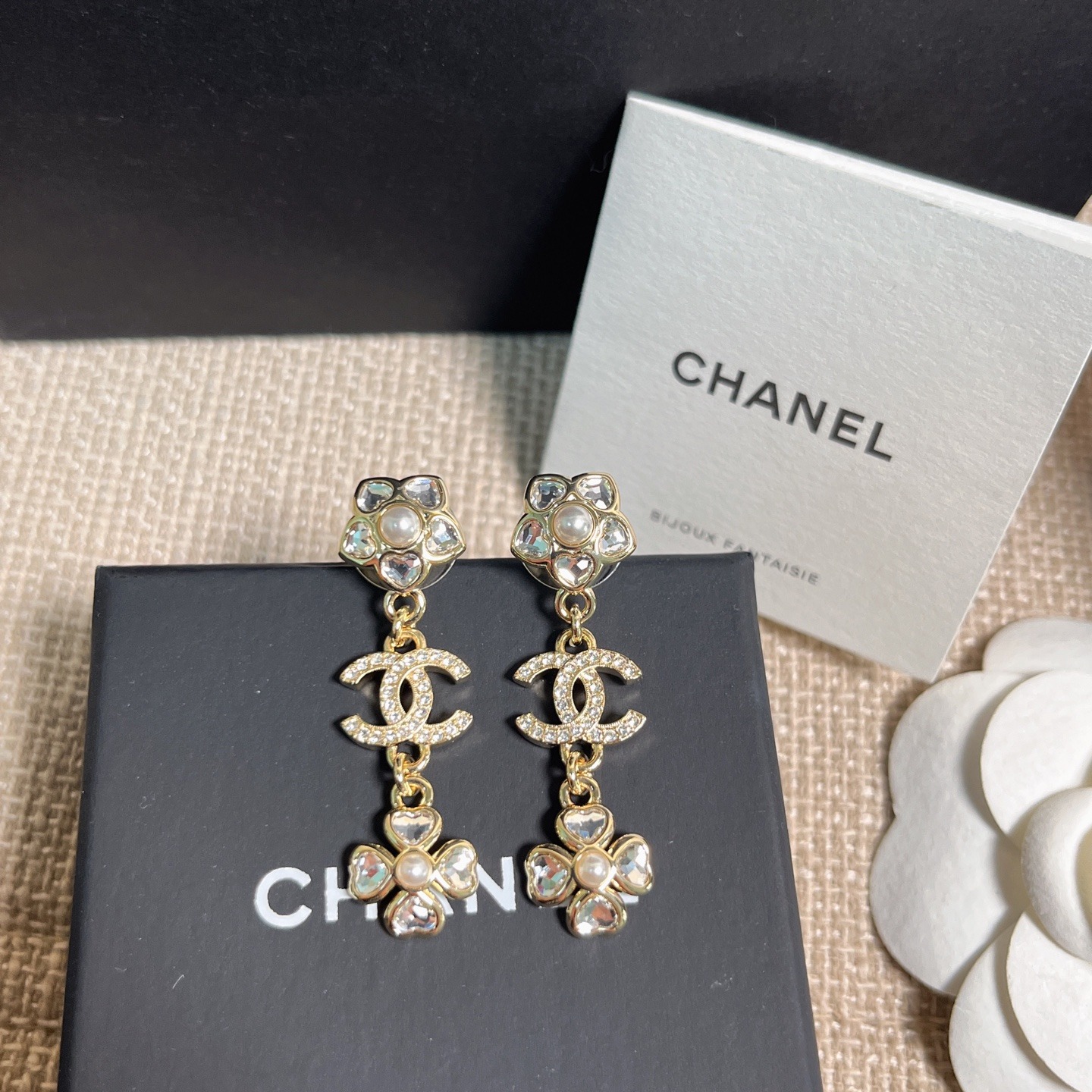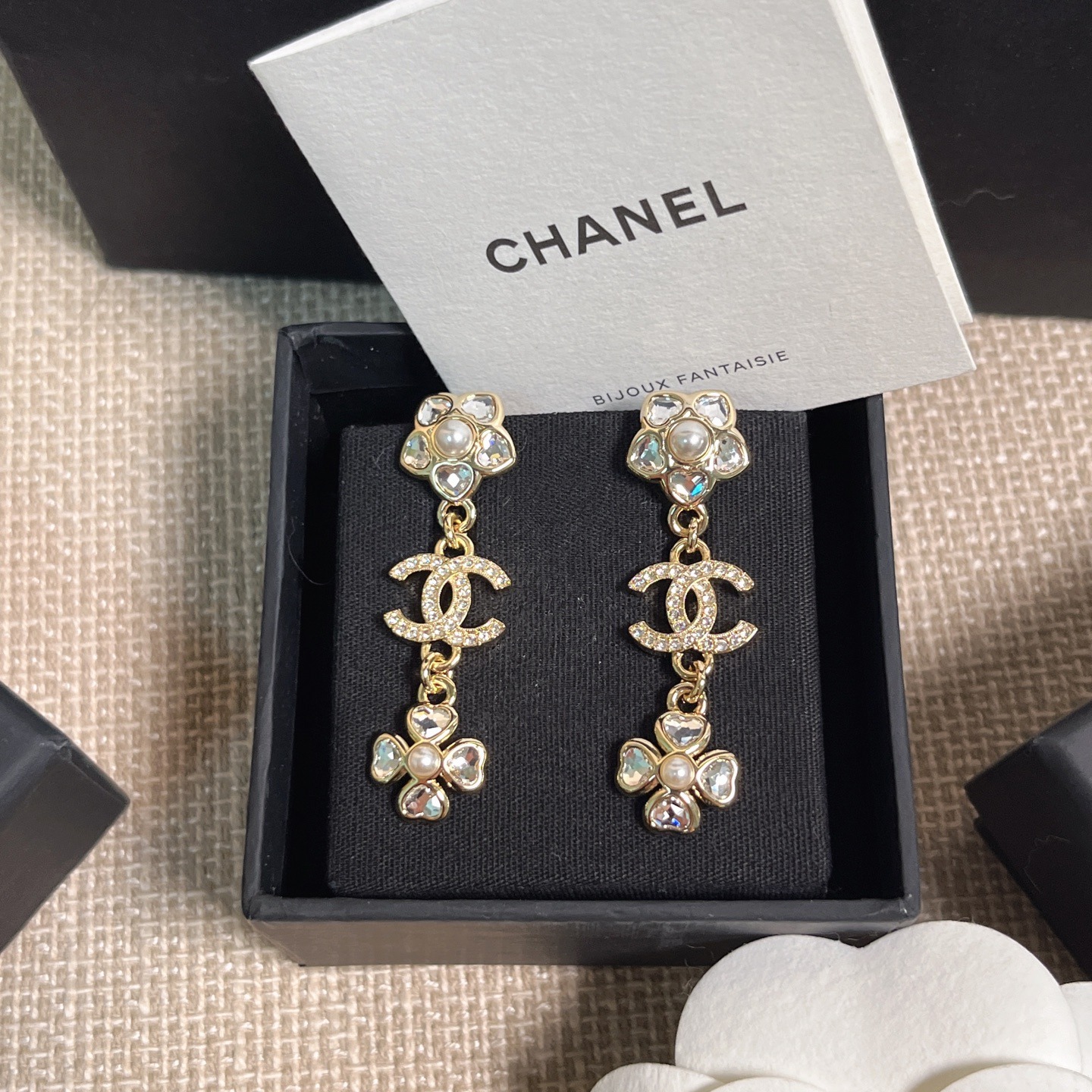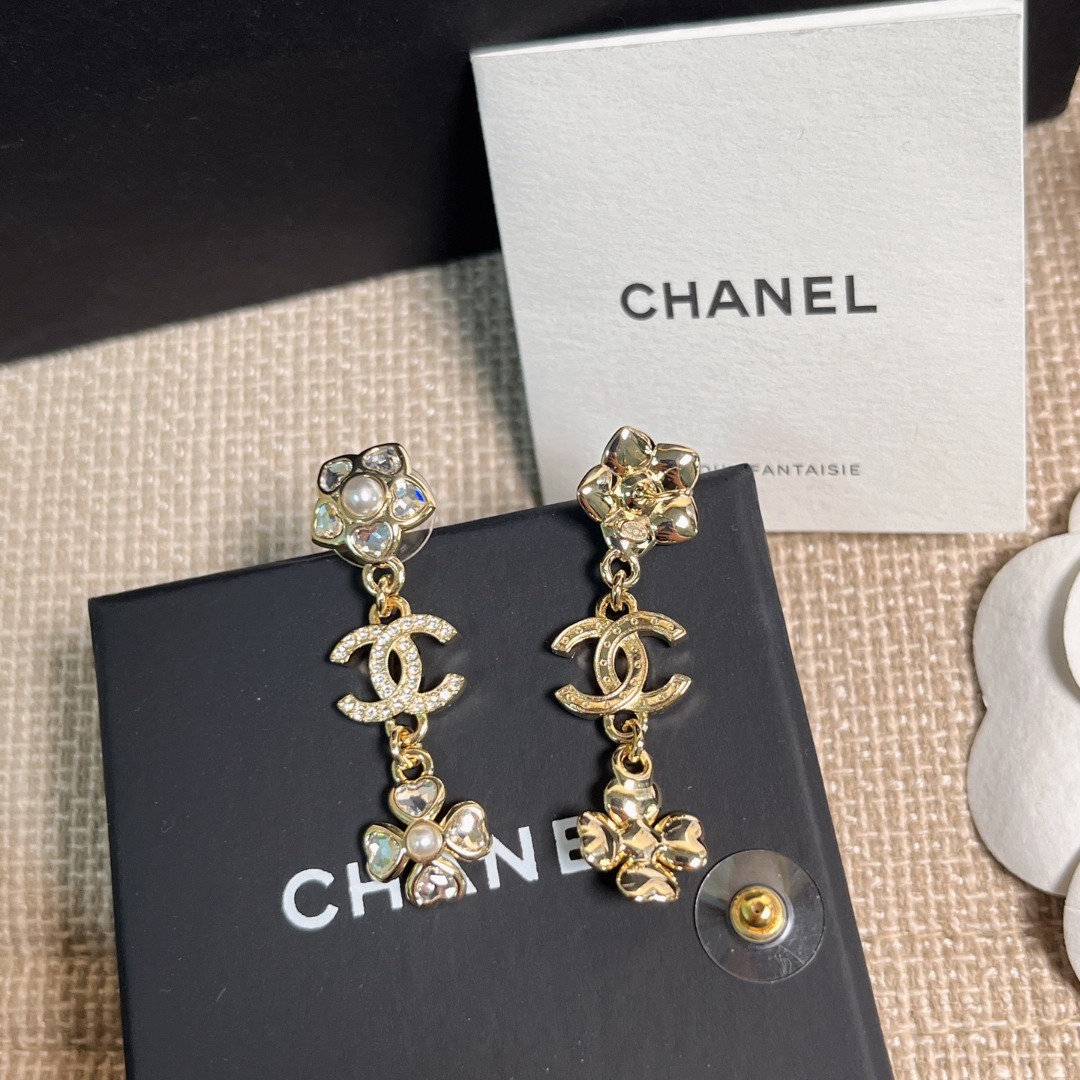 CHANEL 山茶花CC四葉草耳環 連禮盒