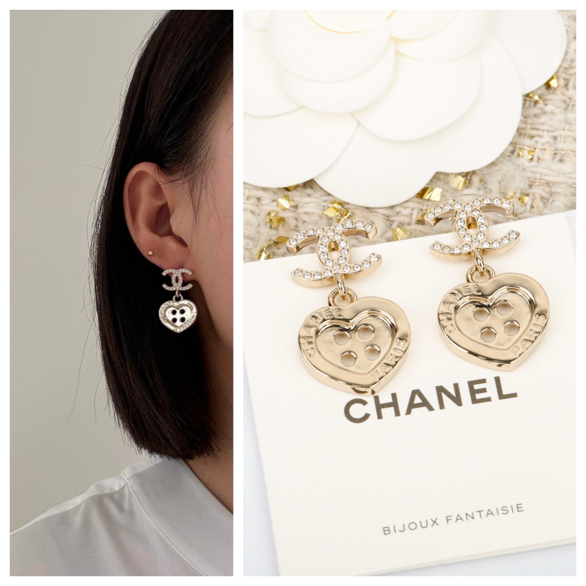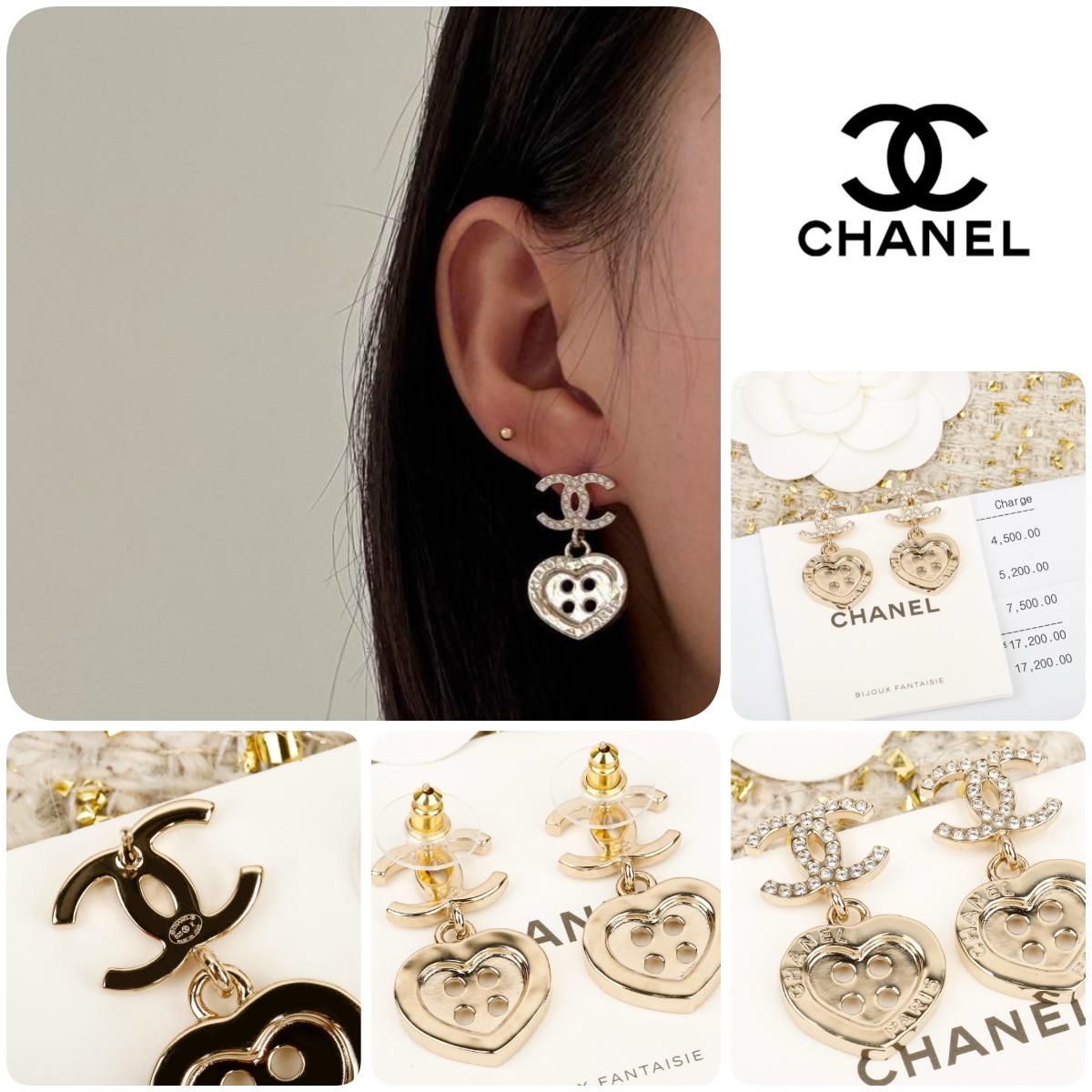 這些優雅可愛的耳環採用心形紐扣圖案♪。閃亮的金色 CC 標誌為您的耳朵增添了一絲閃耀 ☆。非常適合犒賞自己或贈送特別的人♡