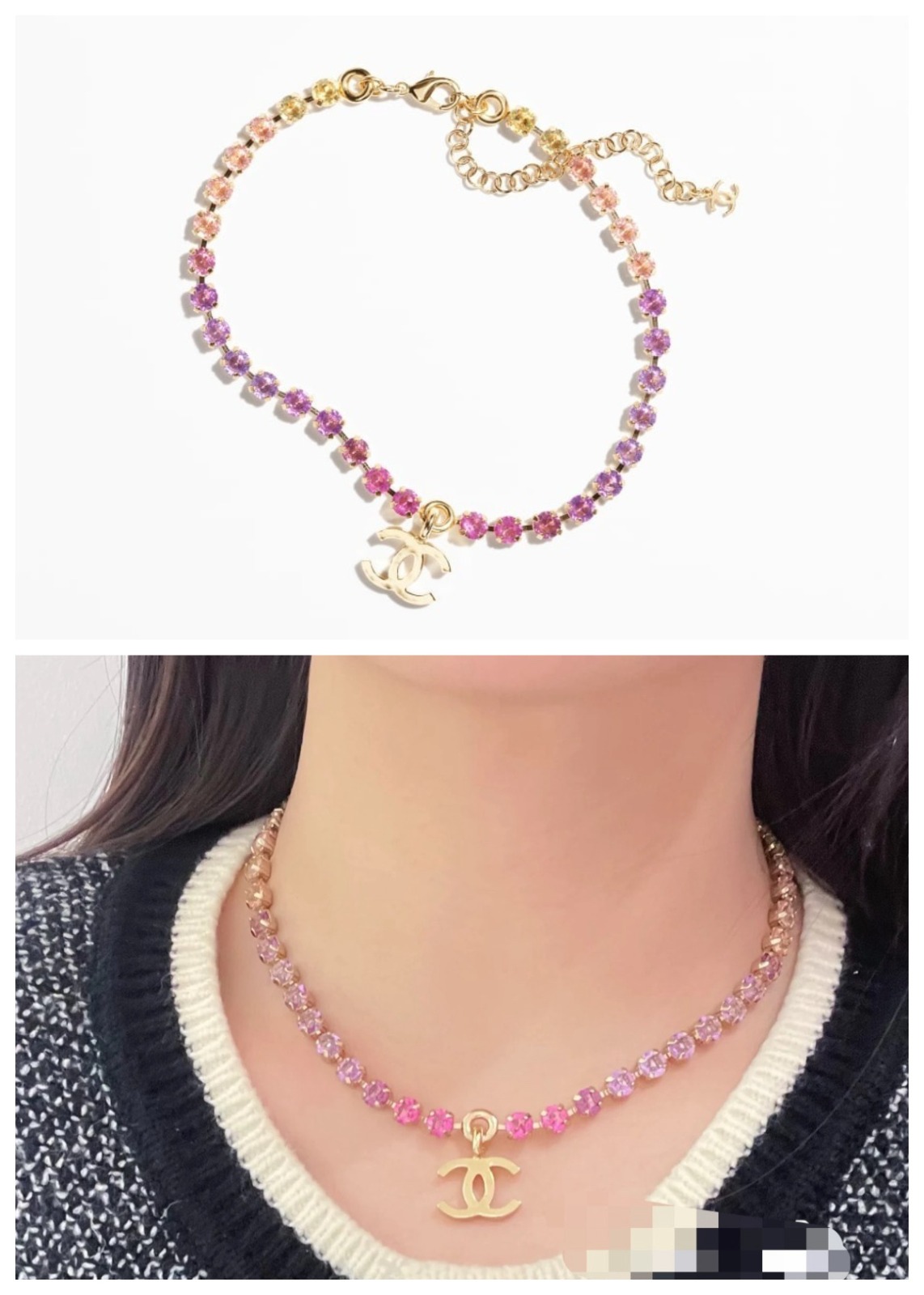 CHANEL 漸層彩鑽CC項鍊 - 禮盒裝