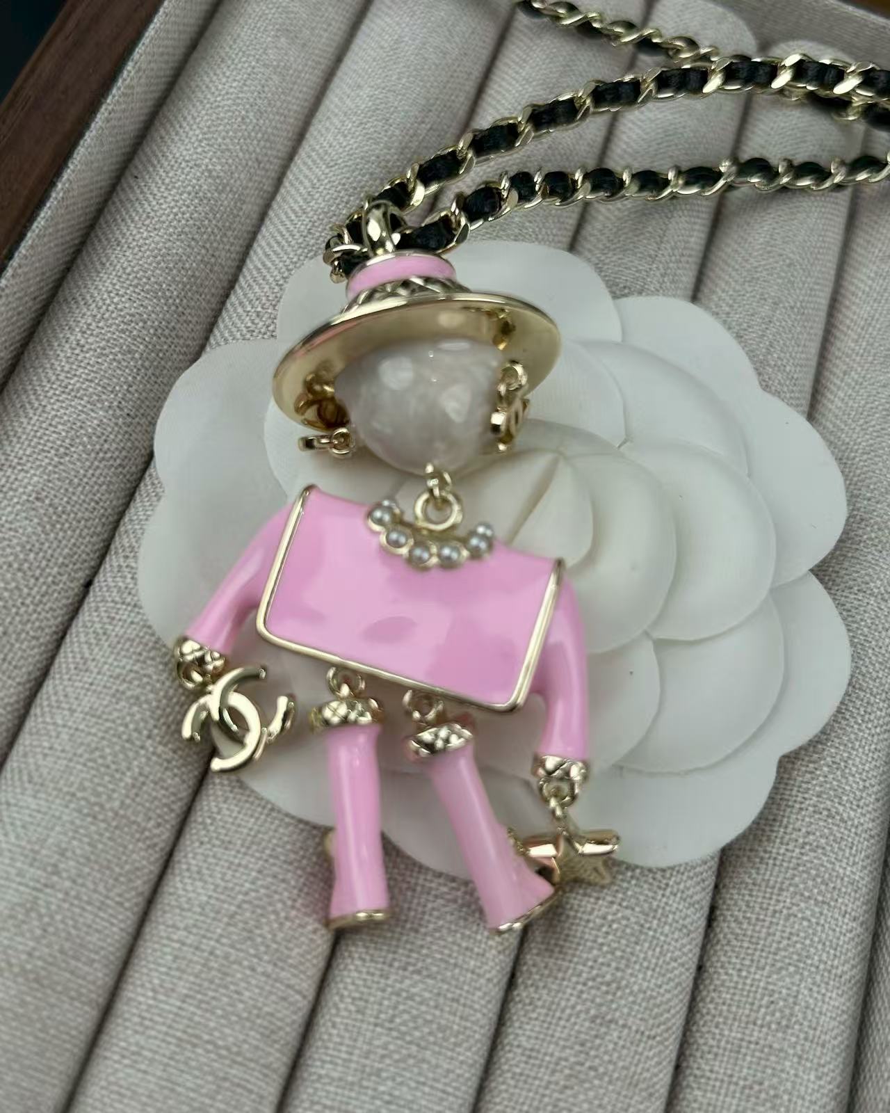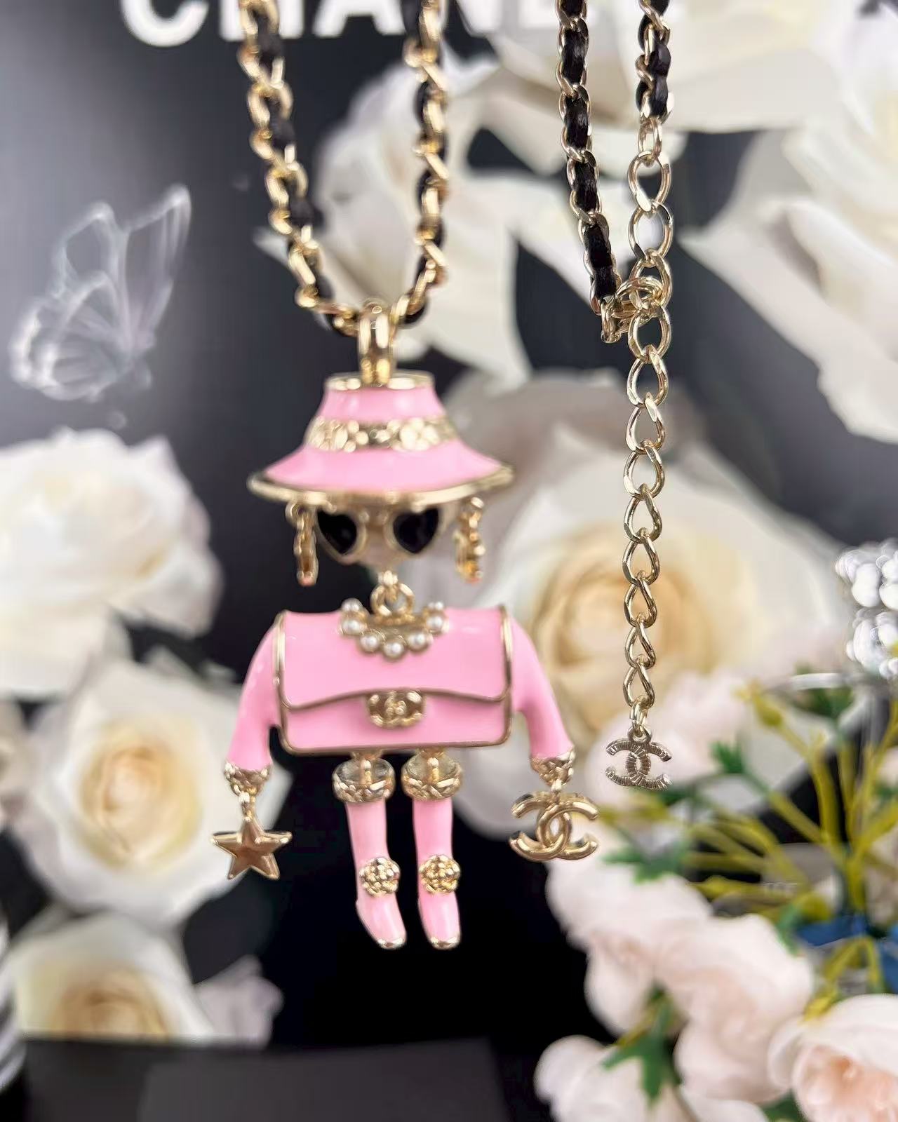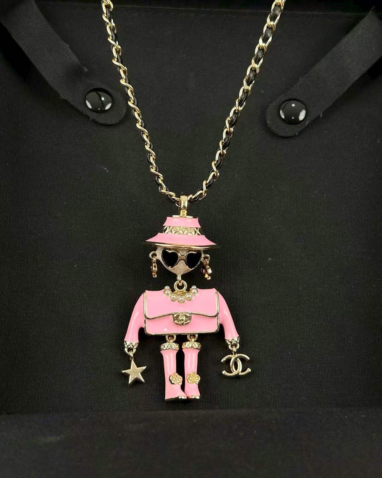 CHANEL 粉色墨鏡機器人毛衣鏈 連禮盒