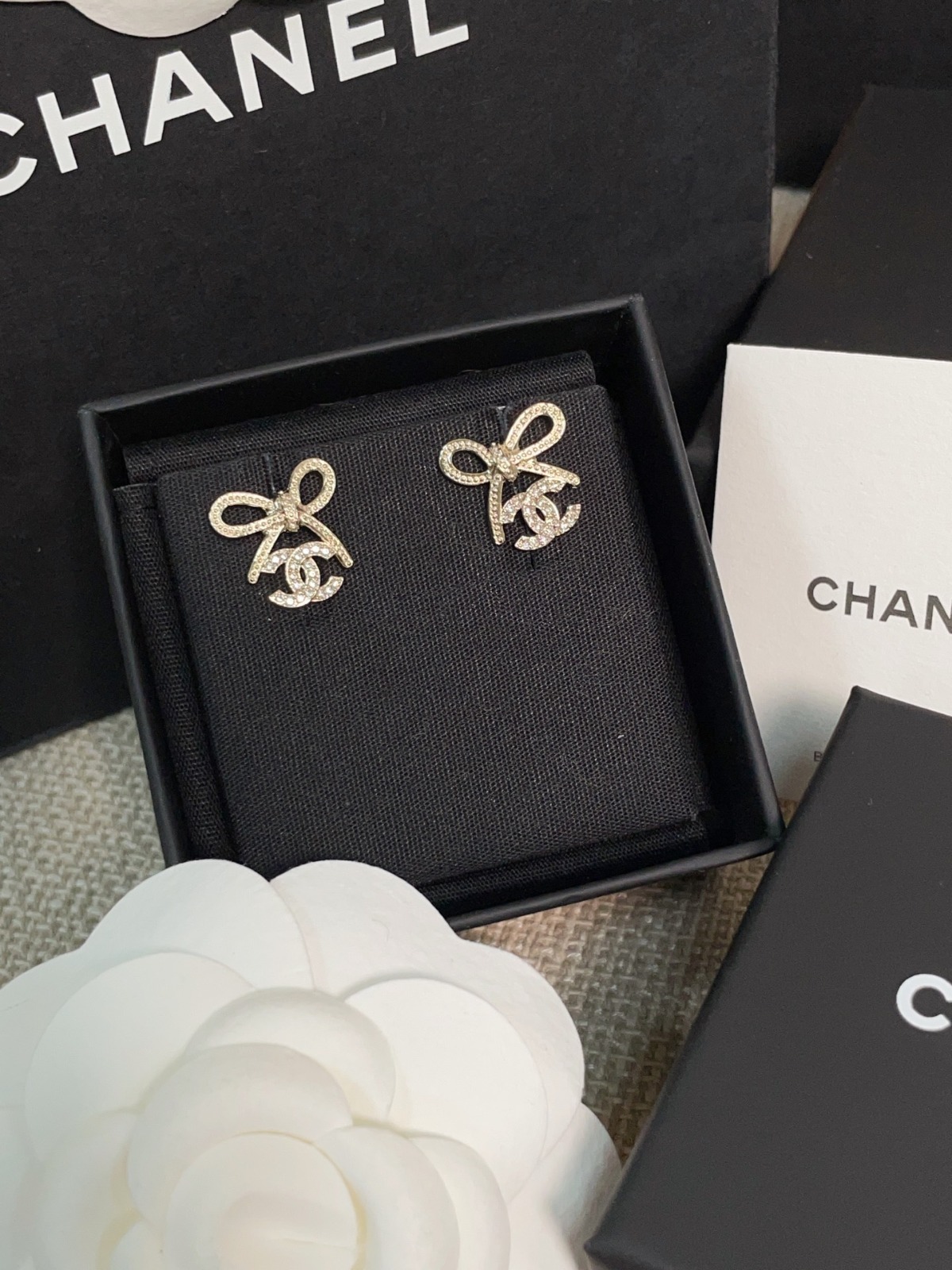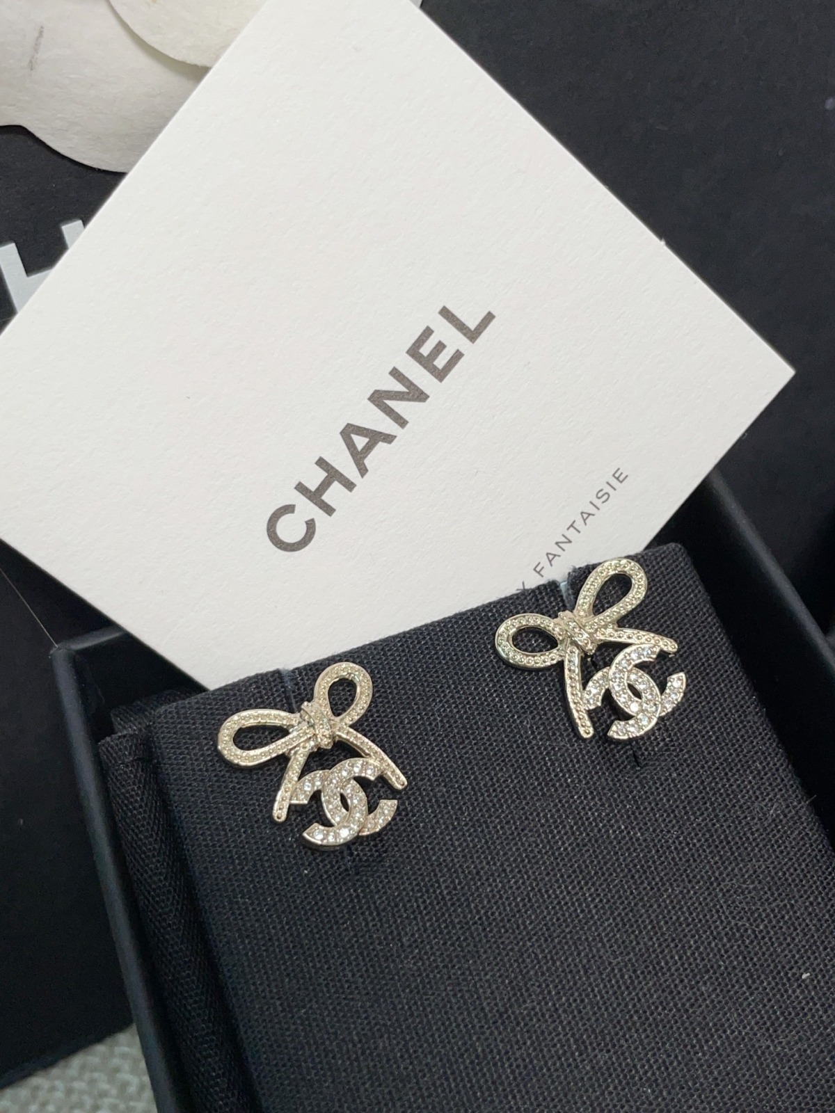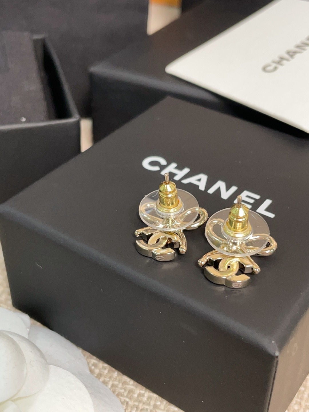 CHANEL 蝴蝶結CC耳環 連禮盒