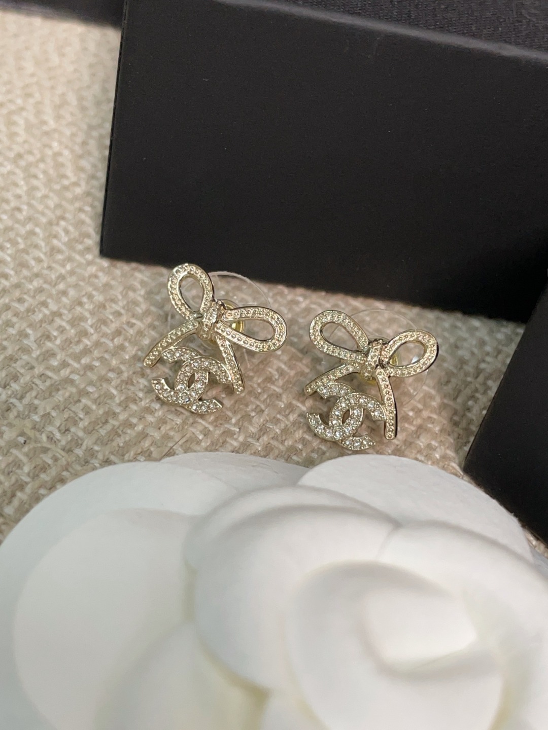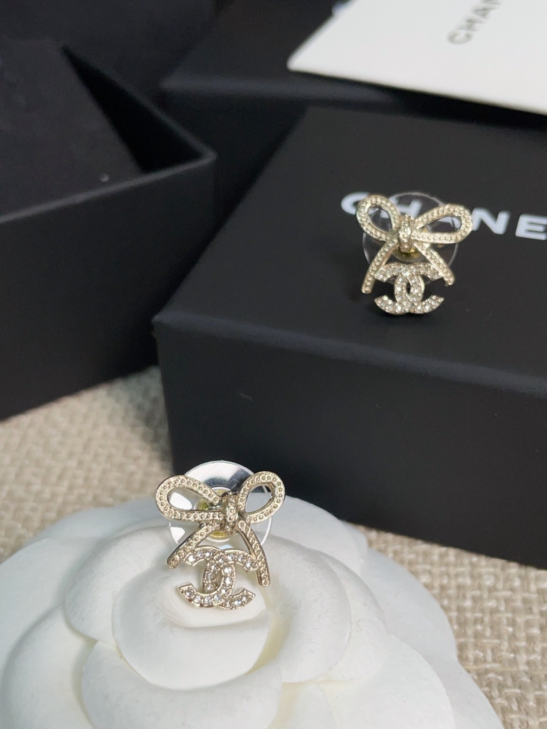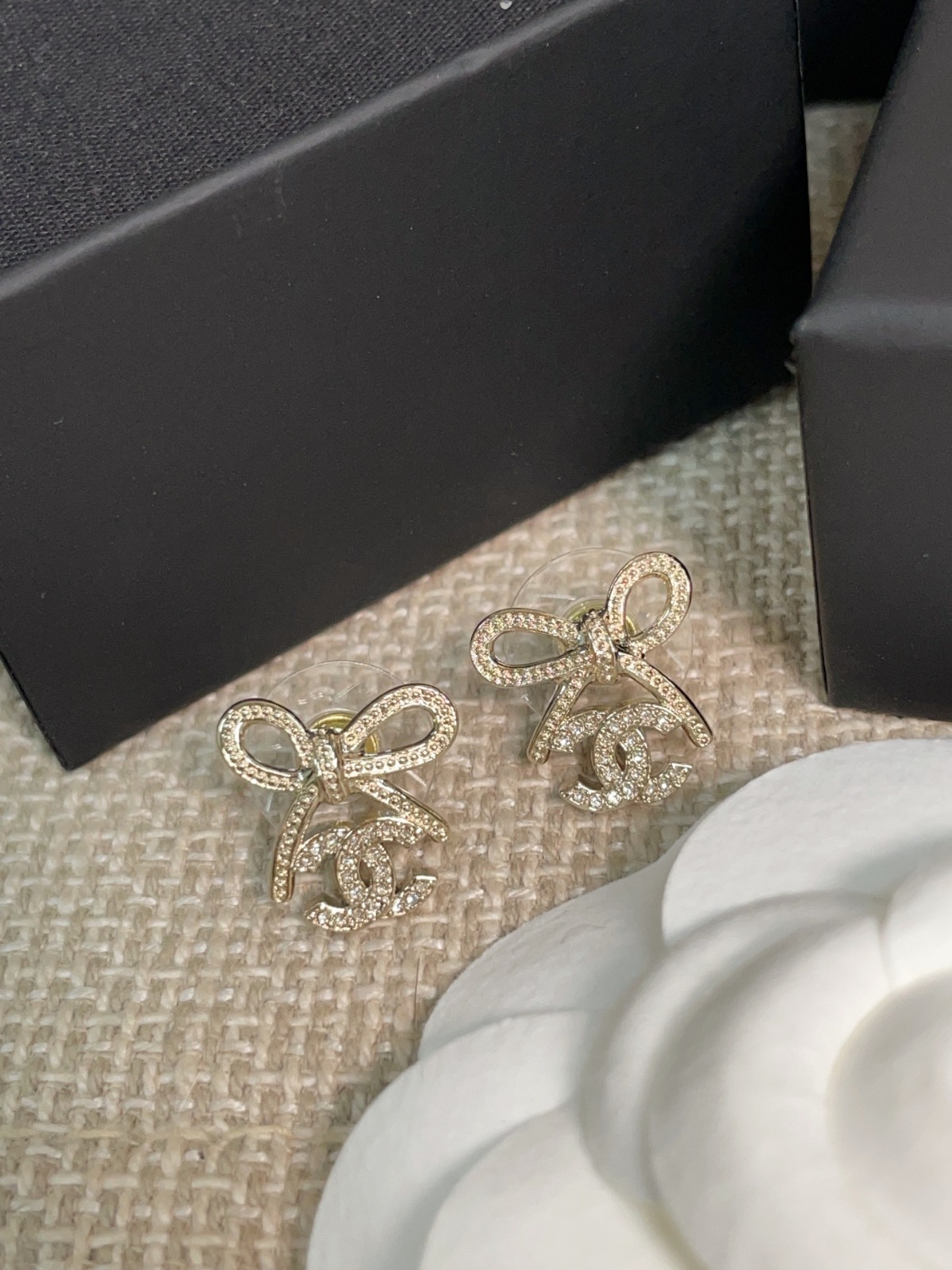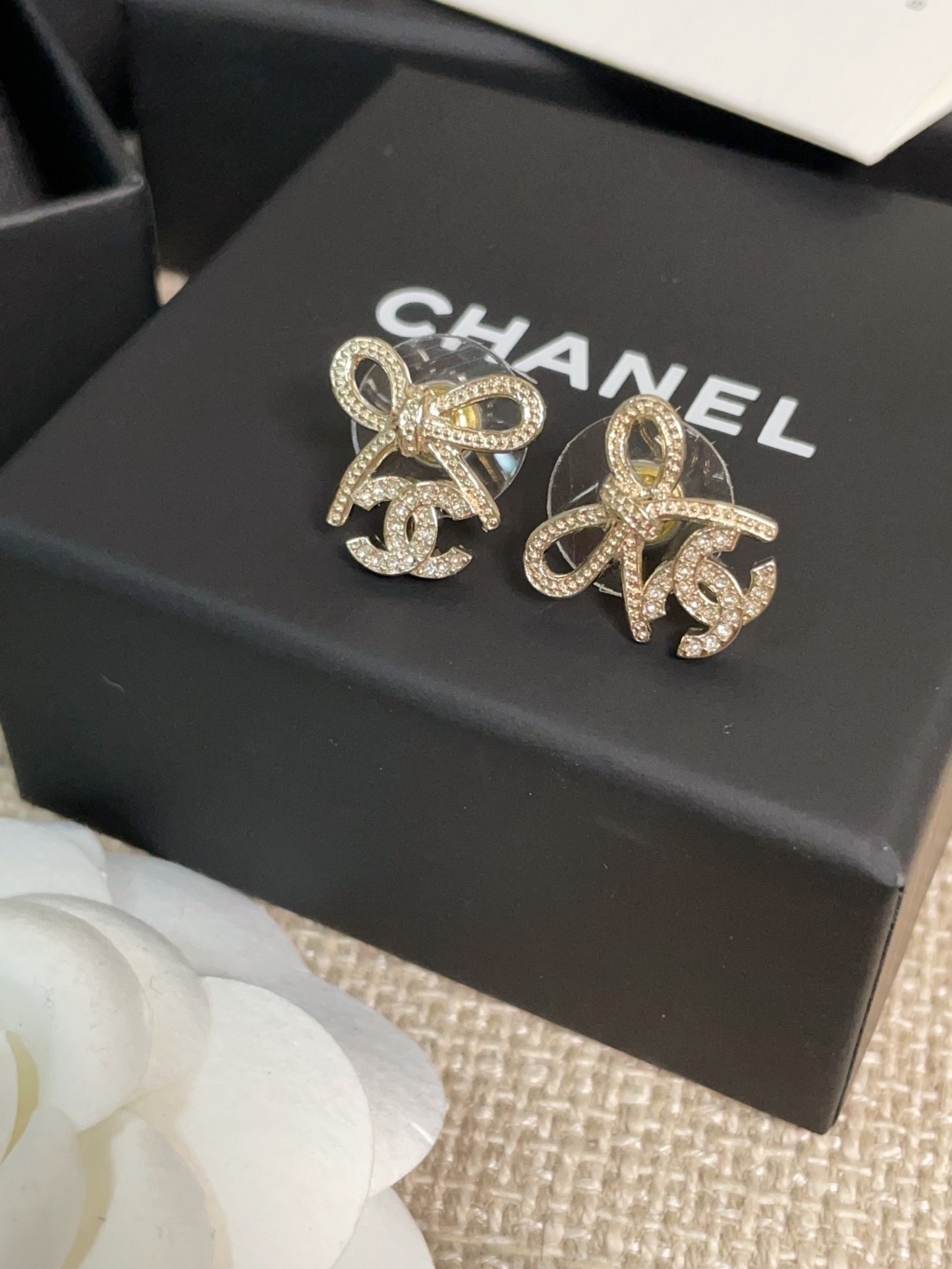 CHANEL 蝴蝶結CC耳環 連禮盒