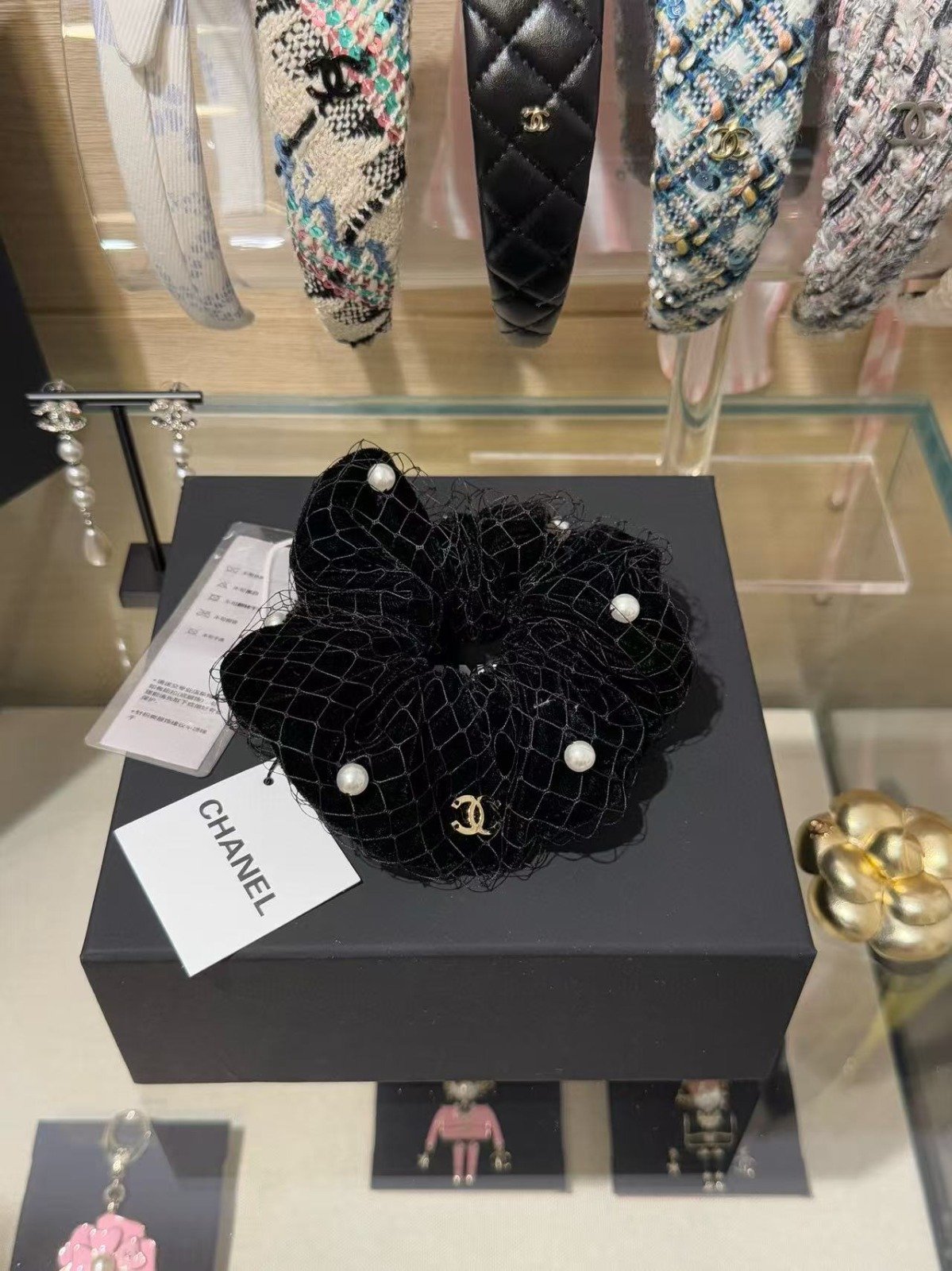 CHANEL 黑絲絨網紗珍珠大髮圈 連禮盒