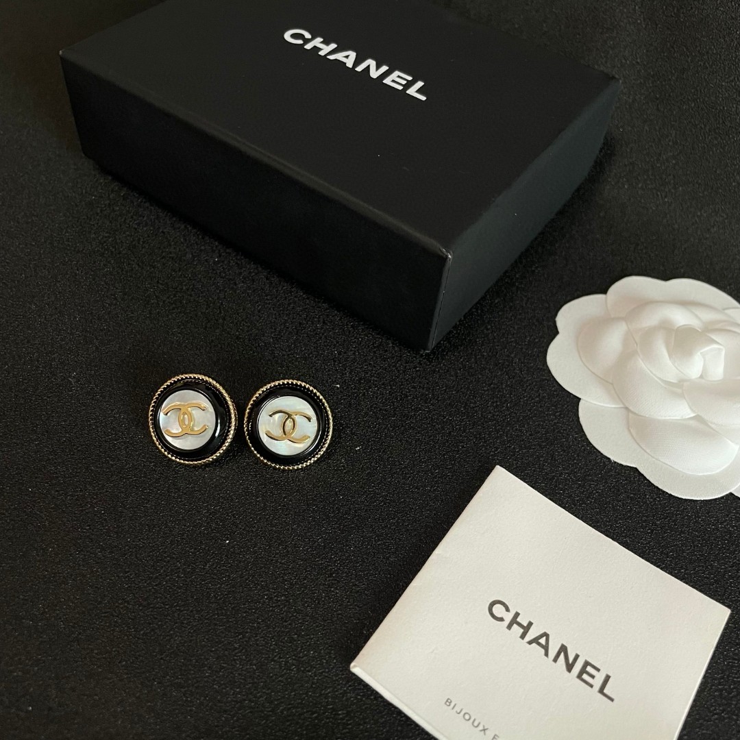 CHANEL CC 壓紋貝殼圓形耳環