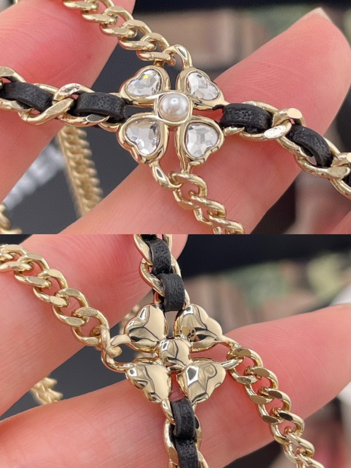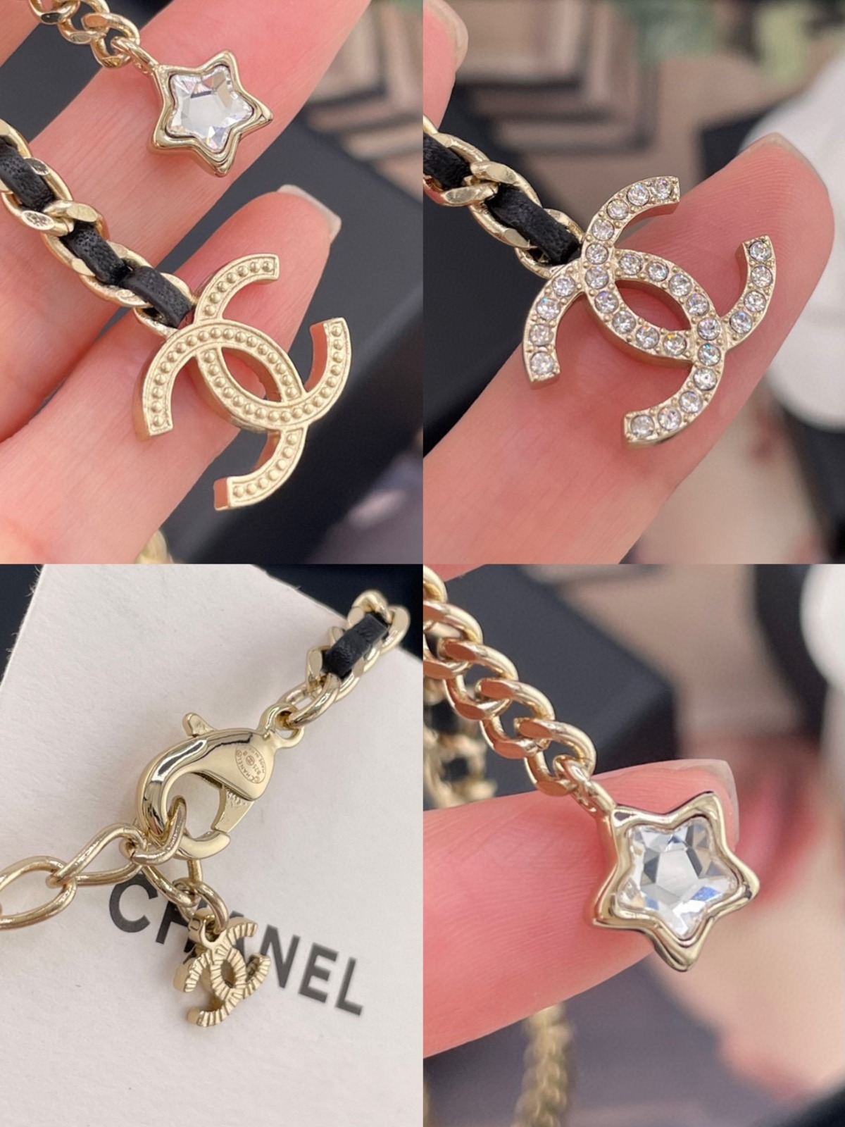 長度可自由調節,戴上後會隨著光線閃耀✨出不同層次的⭐光芒。設計上結合了星星、☘️四葉草、CC 以及皮穿鏈等經典元素,再搭配特別定制的愛心與星星形狀💎水晶,整體靈動俏麗又帶點甜颯感❤️