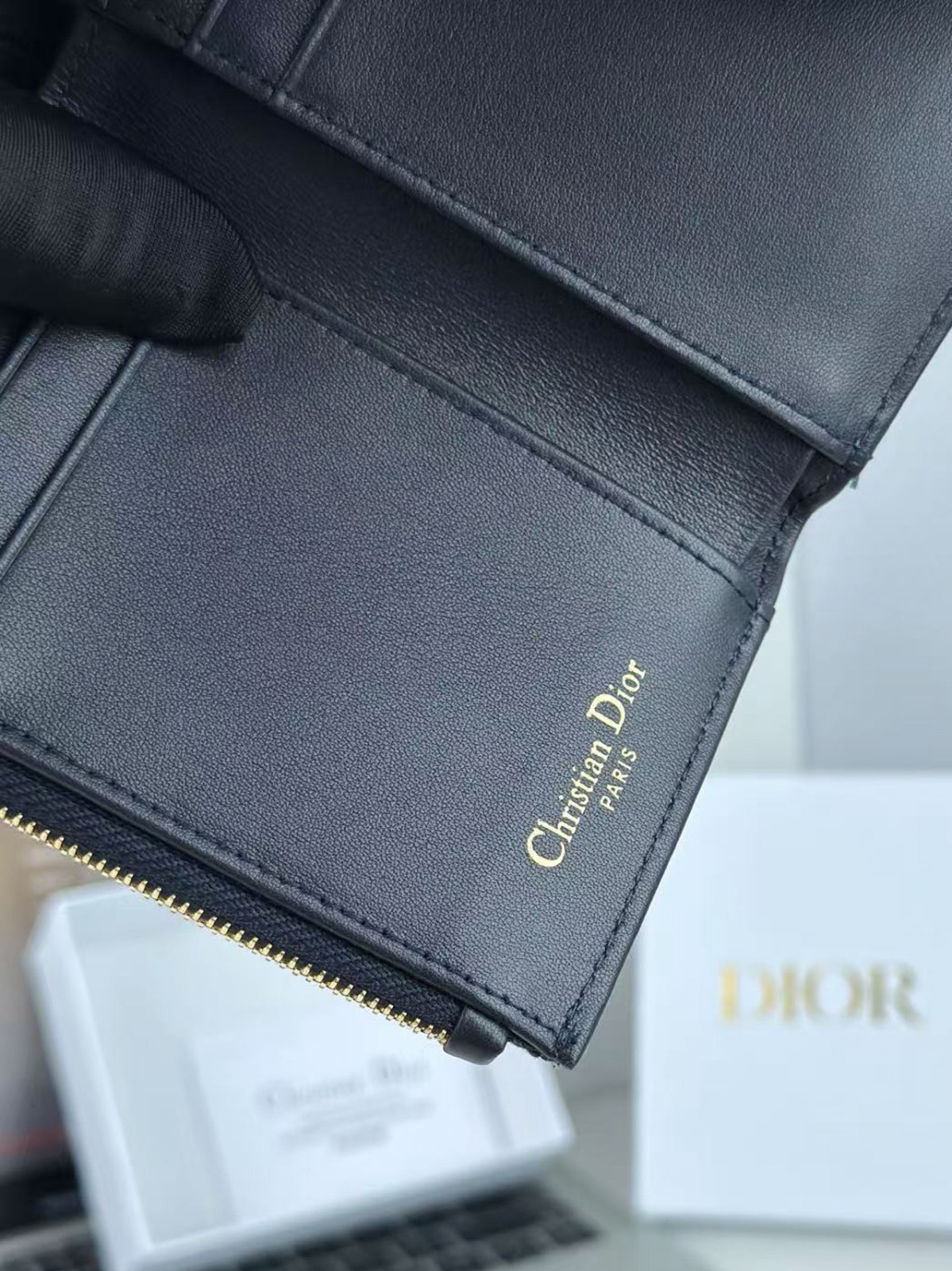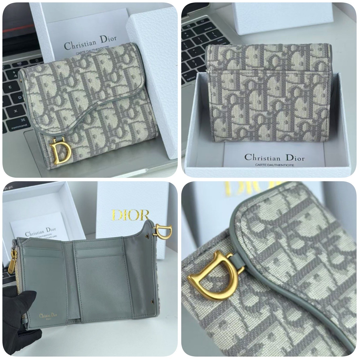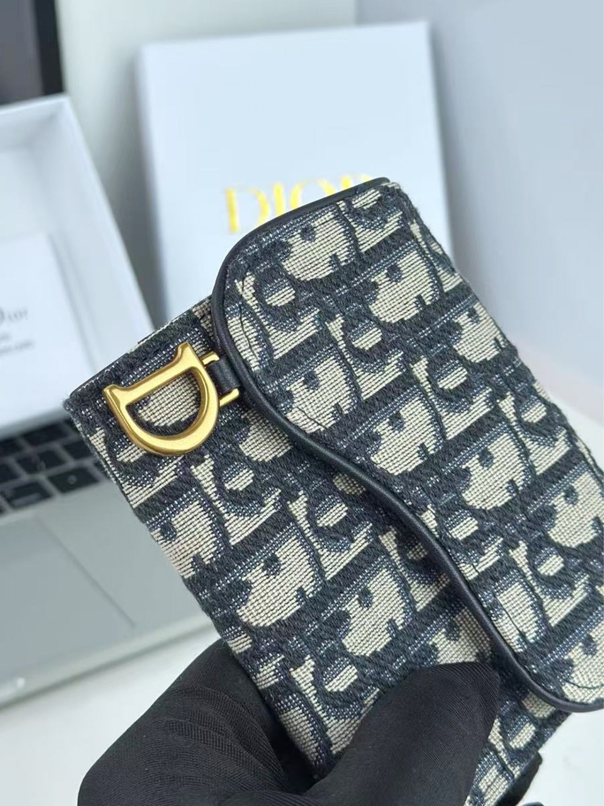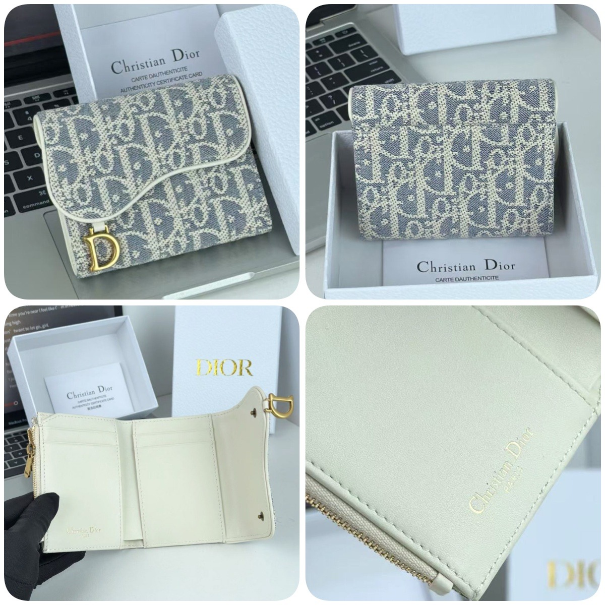 Dior 馬鞍蓮花三折銀包