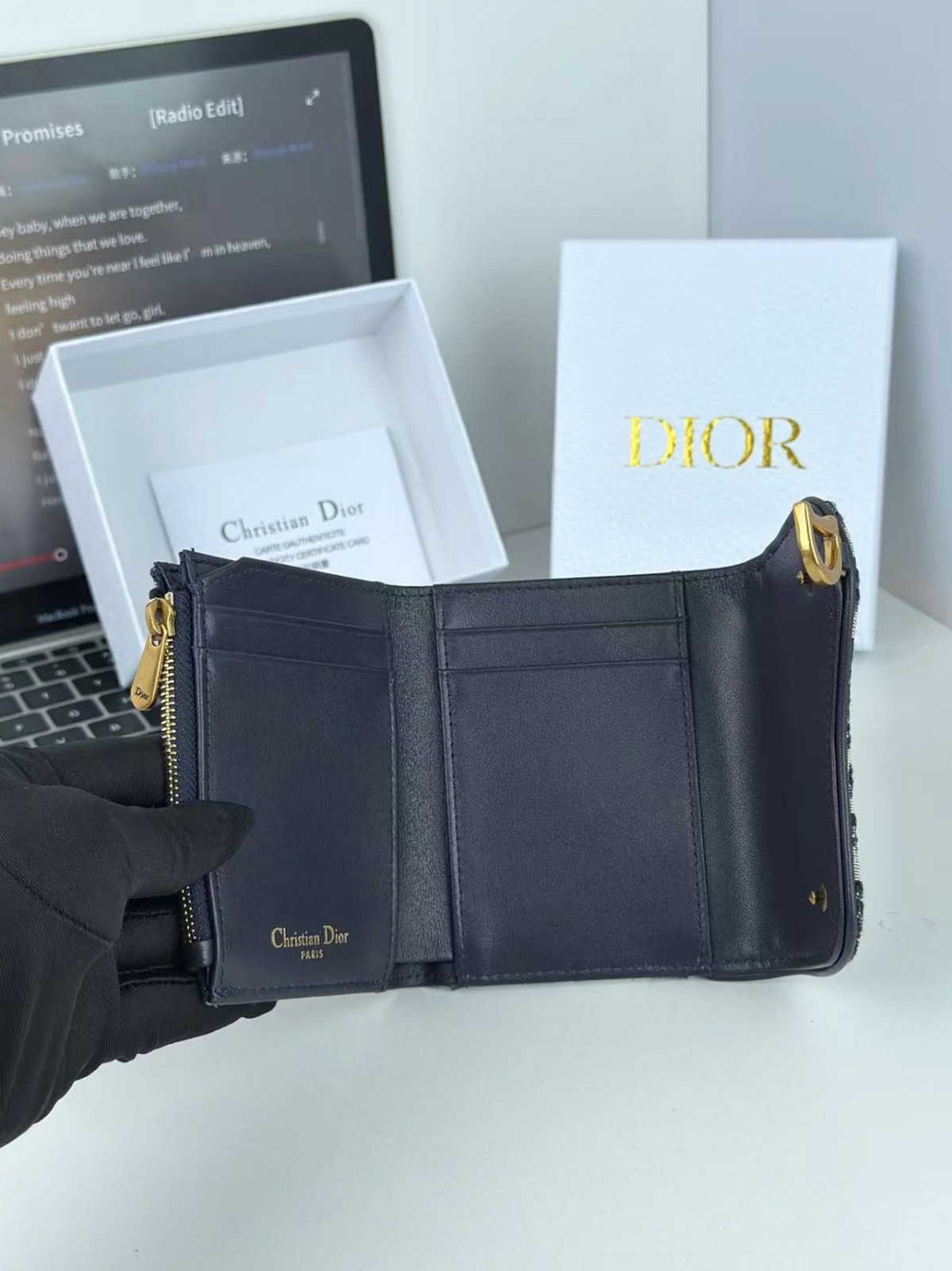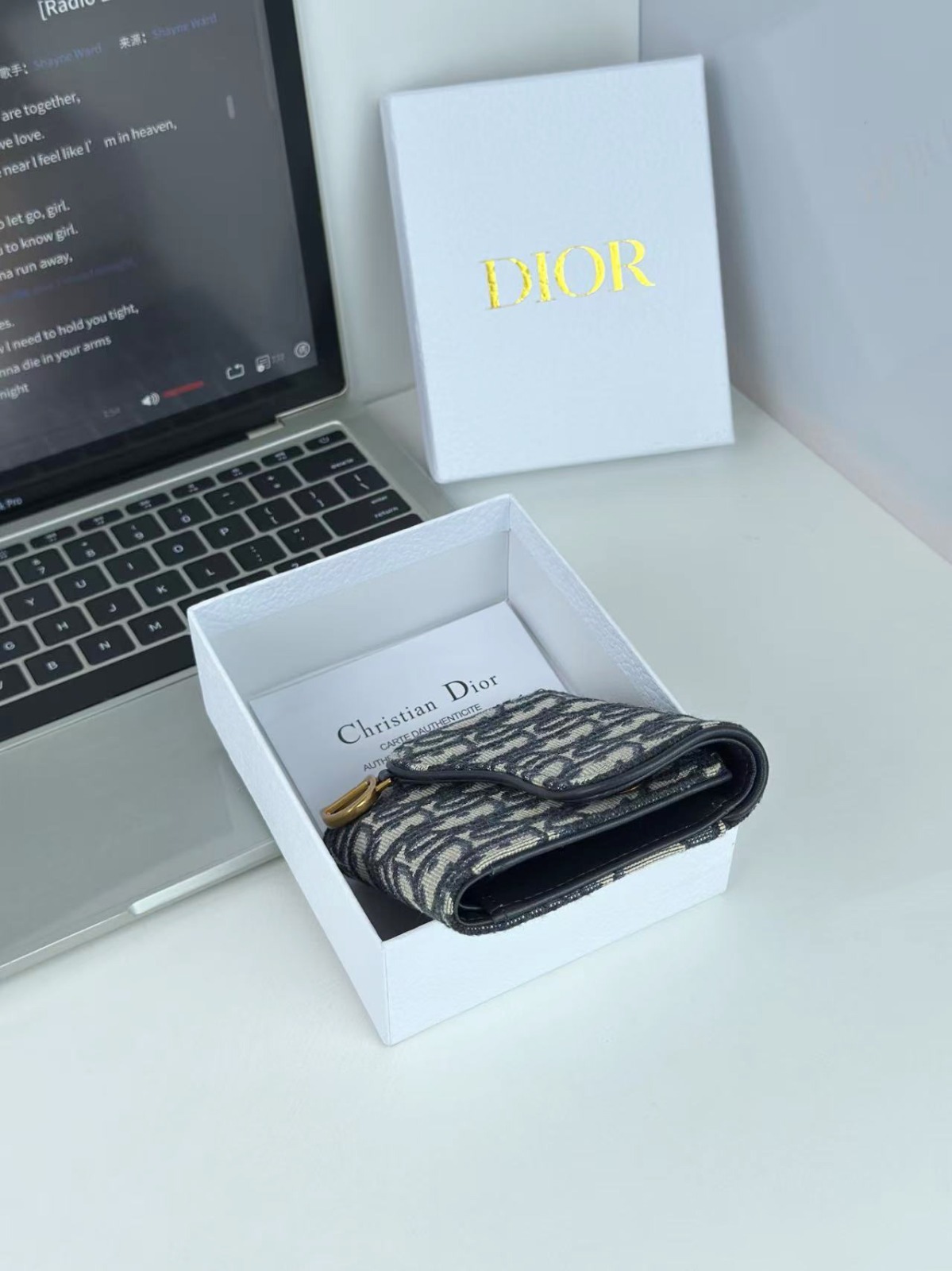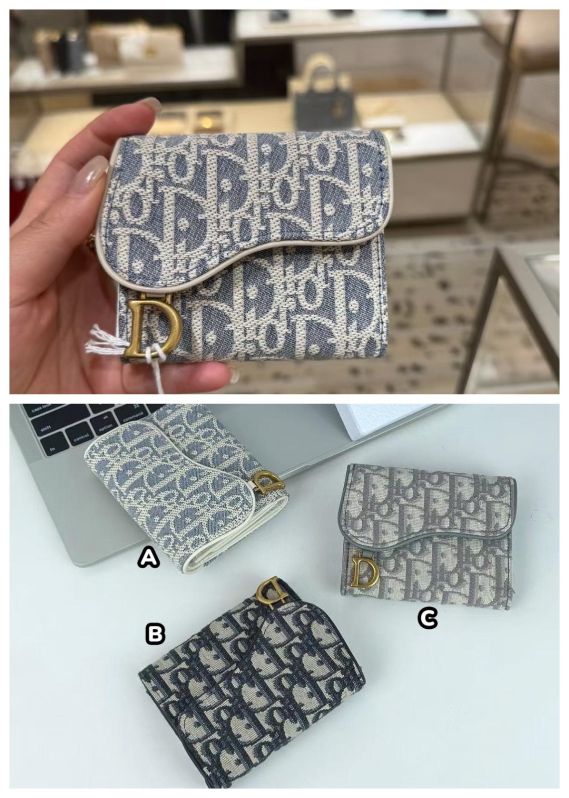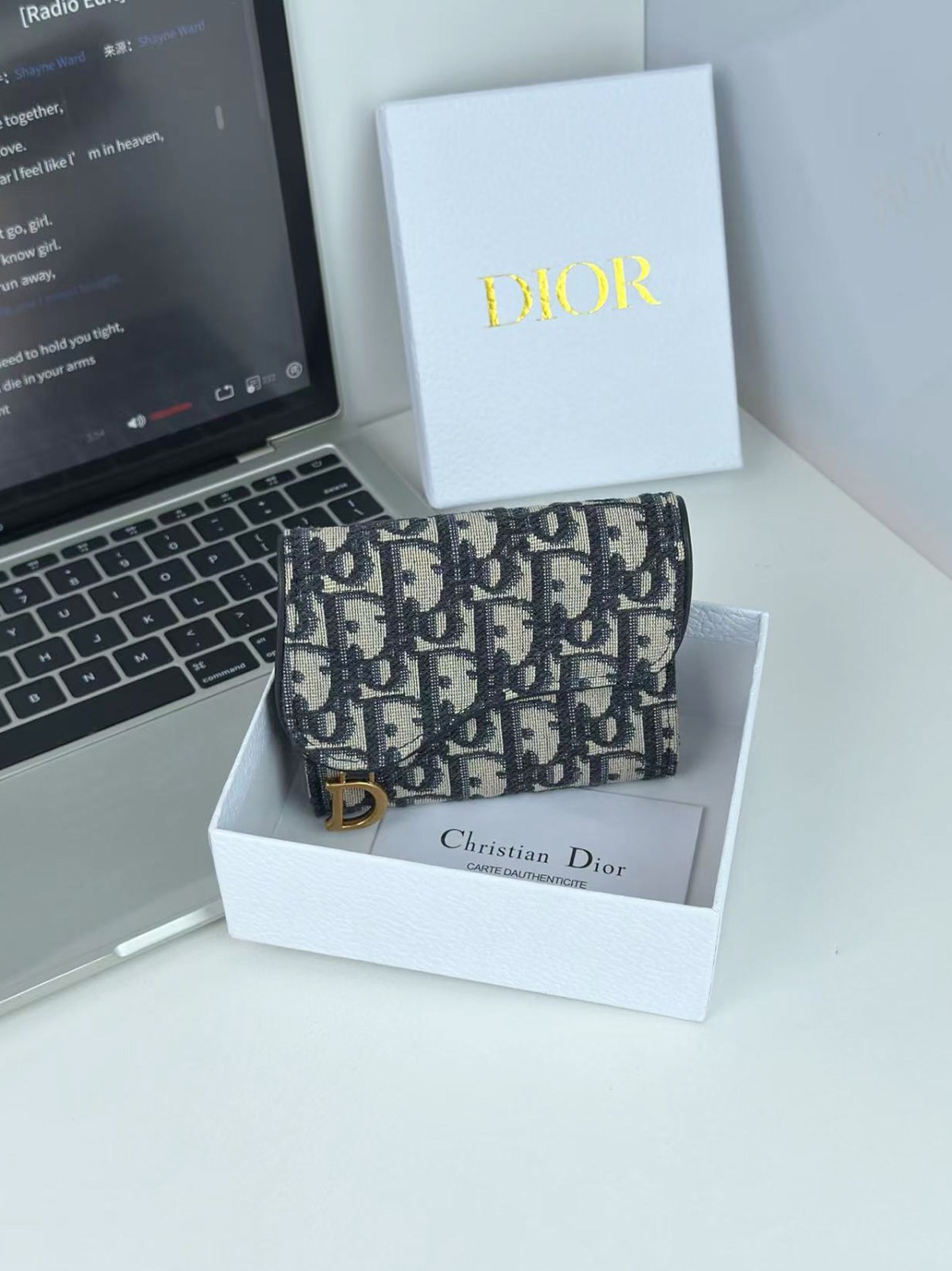 Dior 馬鞍蓮花三折銀包