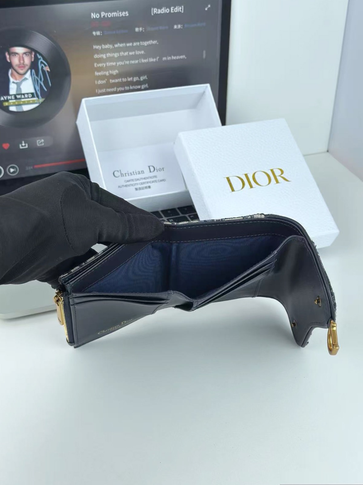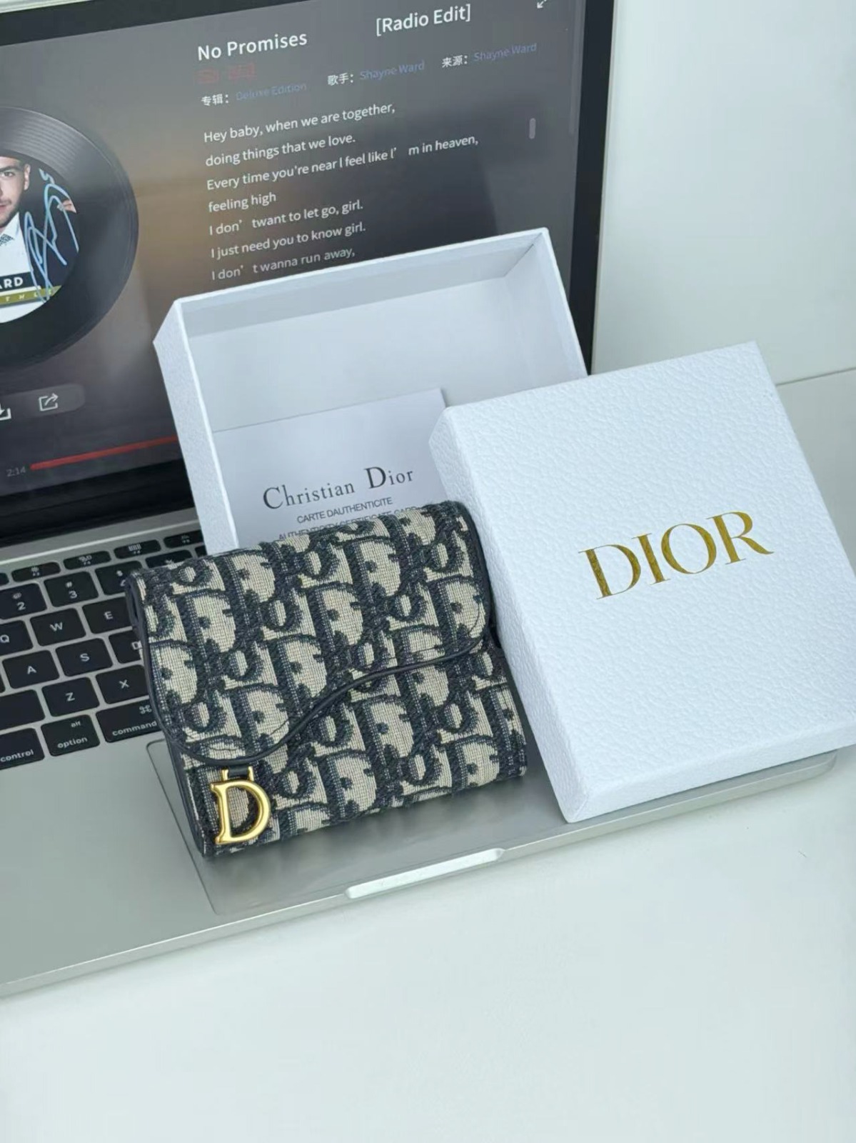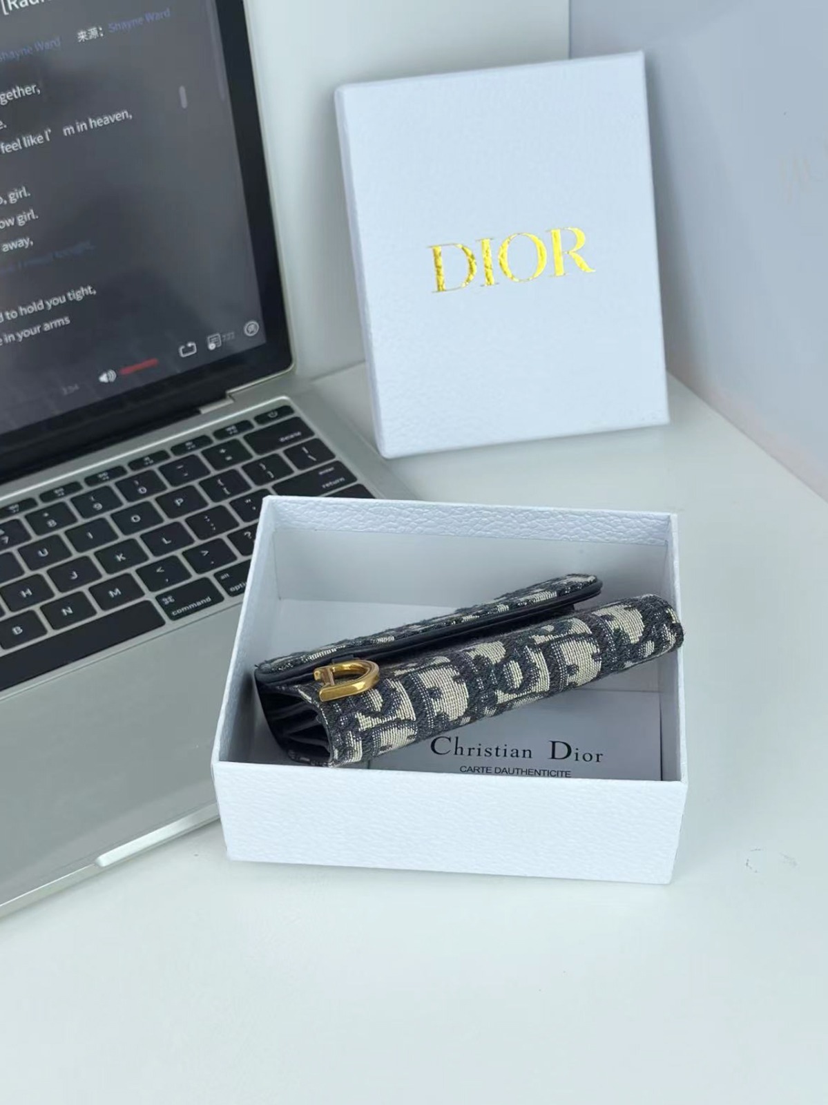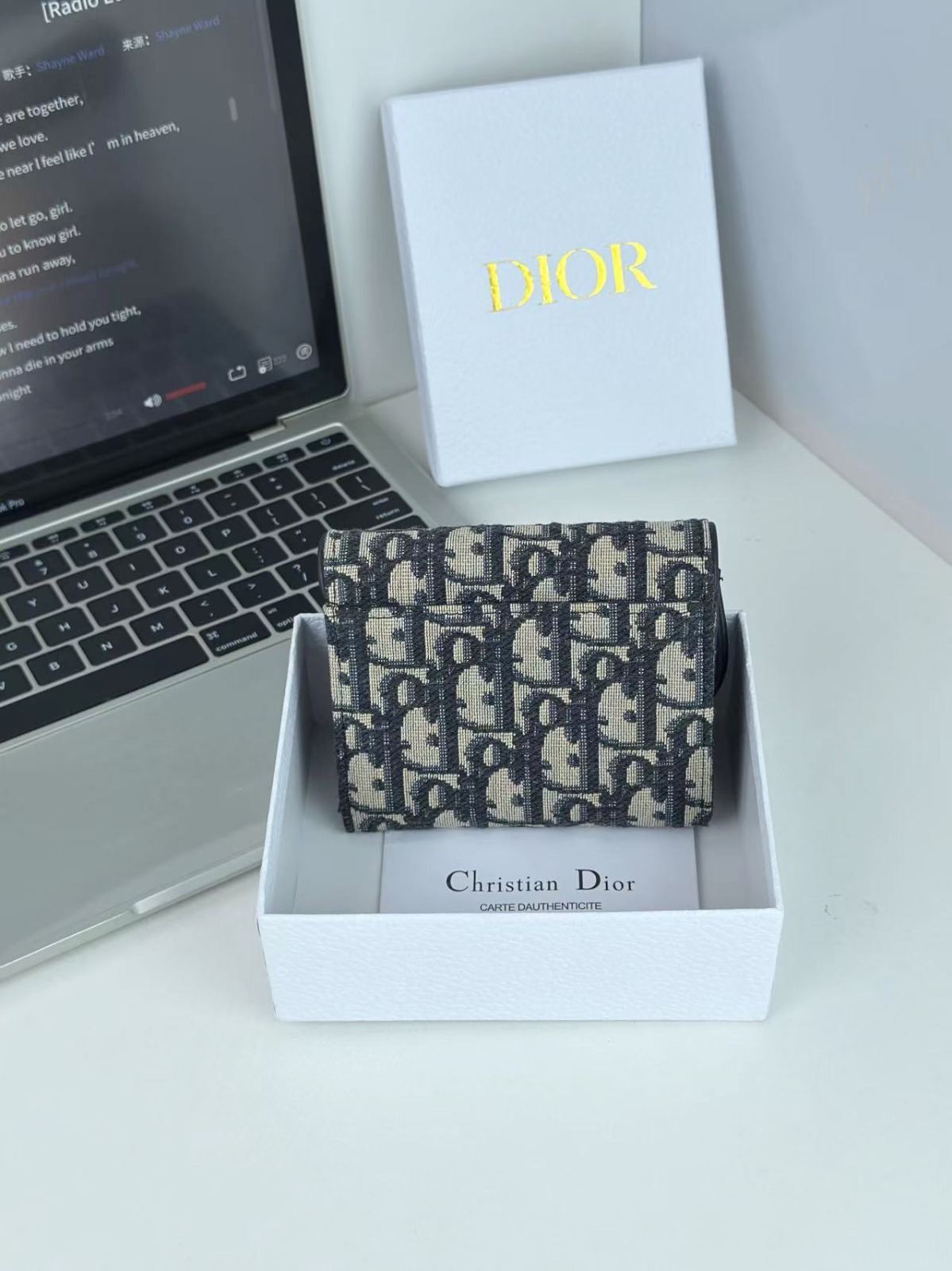 Dior 馬鞍蓮花三折銀包