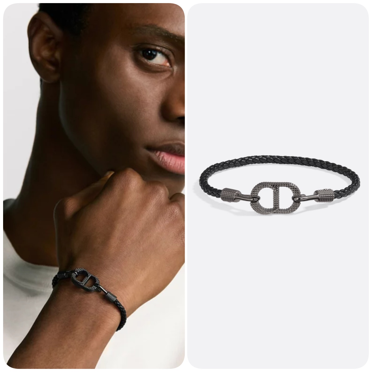 這款手環是 2025 冬季系列的全新款式,採用大膽而時尚的雙物料設計🐑此款式由黑色羊皮編織束帶構成,飾有黑色釕色飾面黃銅 CD Icon 標誌,並綴以扭索雕紋細節✨此手環配以鈎扣,可配搭同系列的其他作品💕