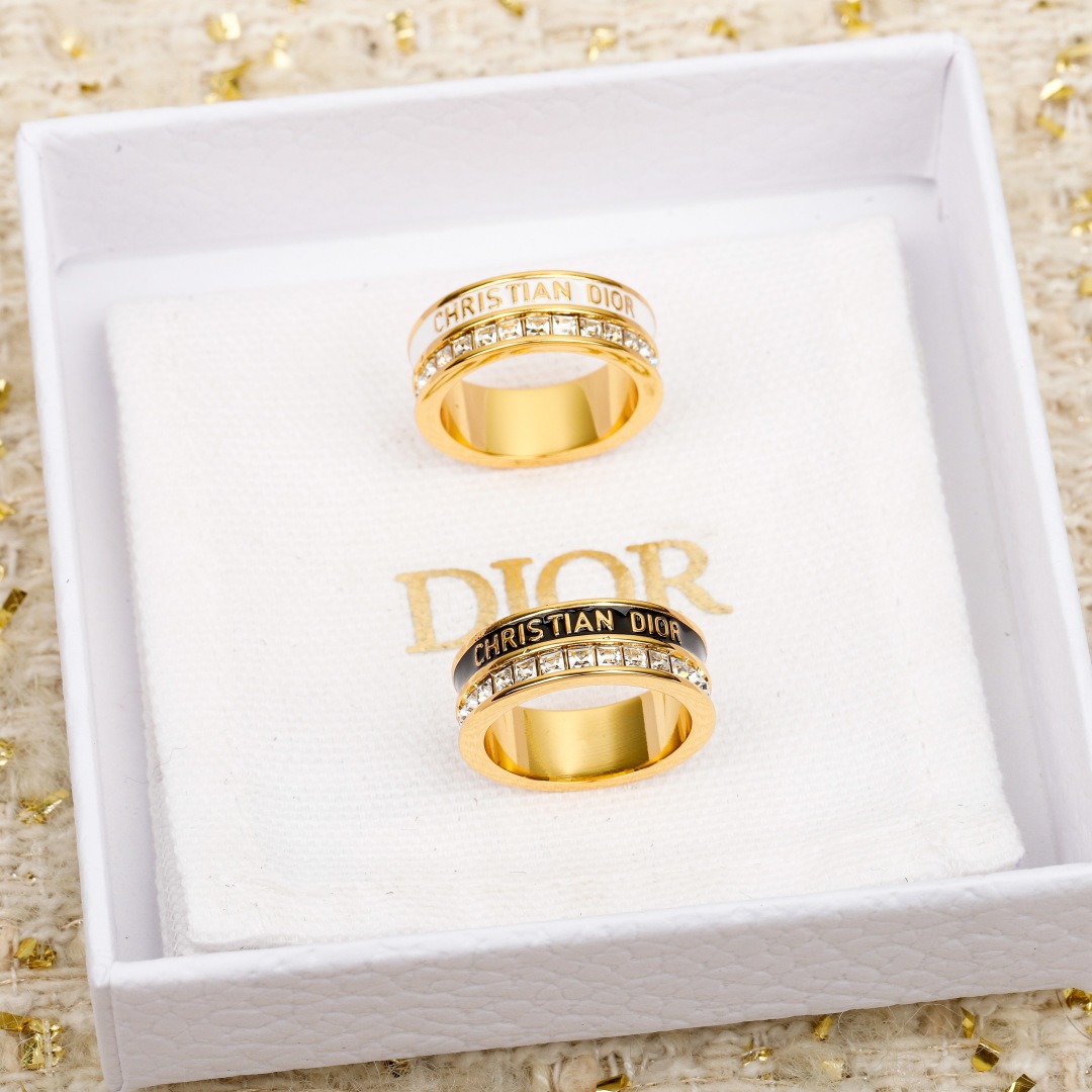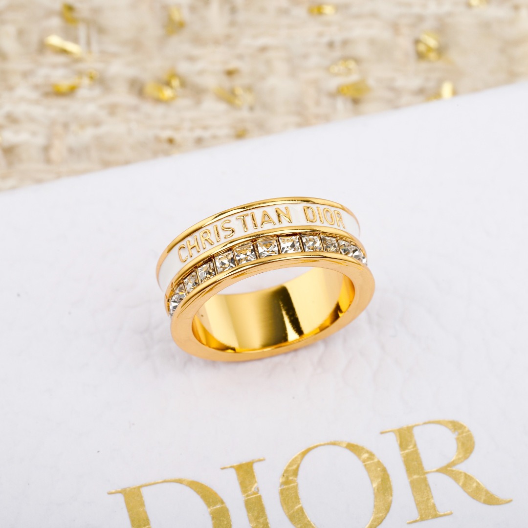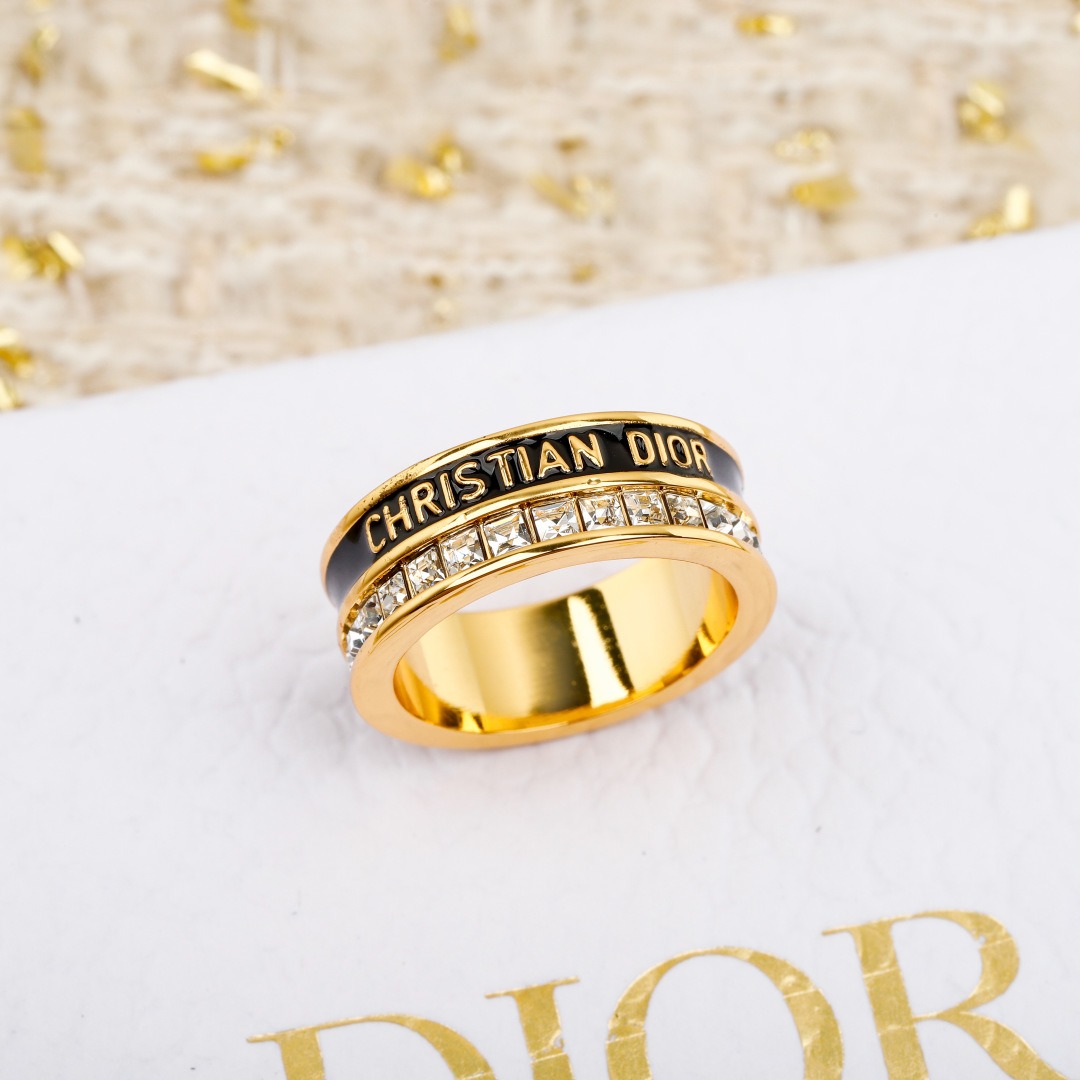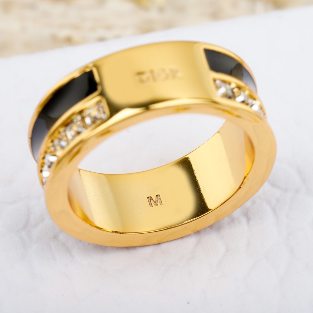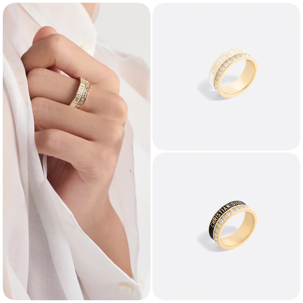 這款 Dior Night Code 戒指彰顯時尚優雅的美學風格。採用金色飾面金屬精心製作,密鑲以閃閃發亮的精美白色晶體,塗漆點綴以 Christian Dior 標誌。