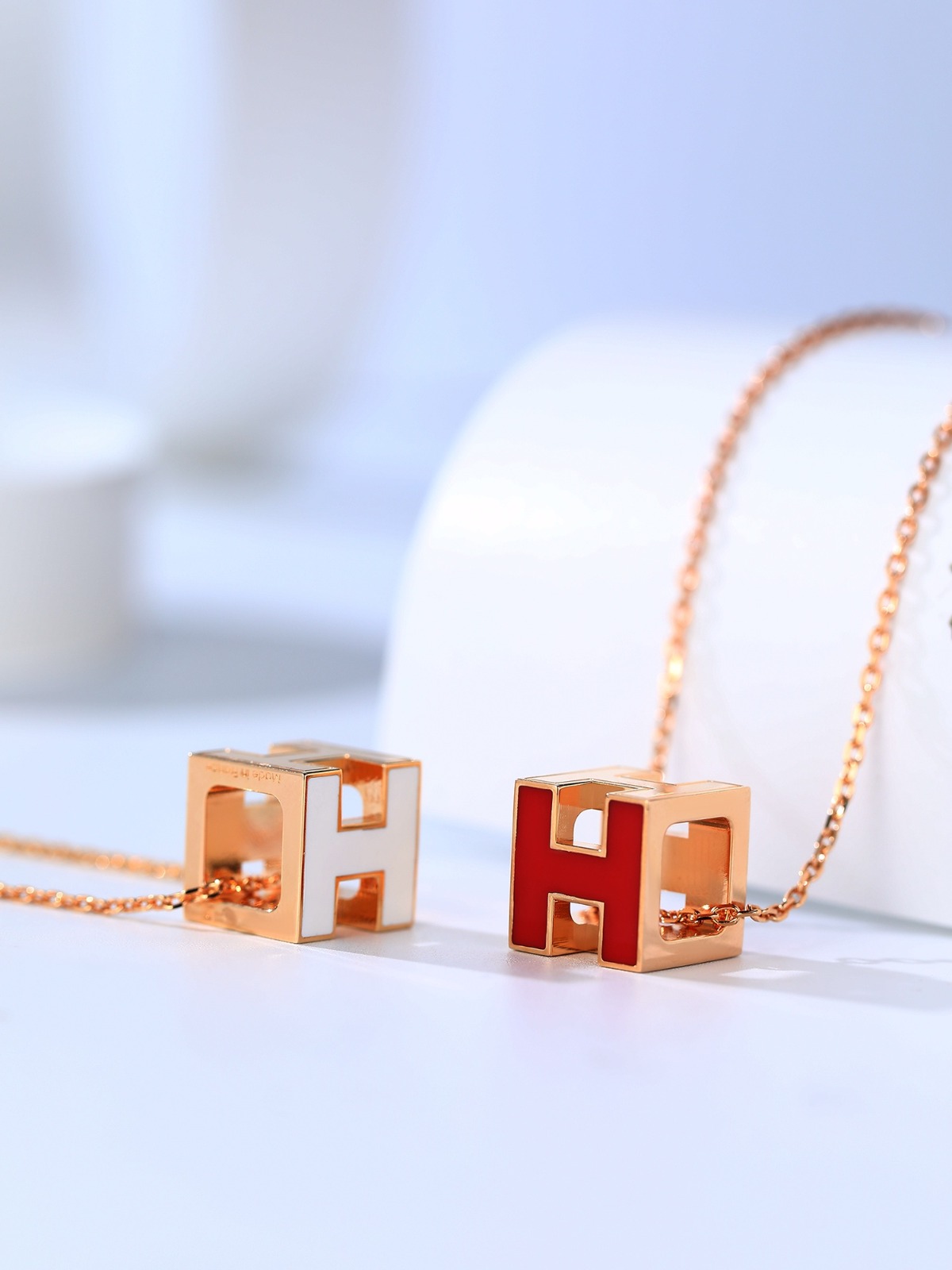 以立方體的結構呈現「H」字造型,線條俐落、✨戴上秒變溫柔 特有質感的立體方塊 春夏做鎖骨鏈,很立體的一款