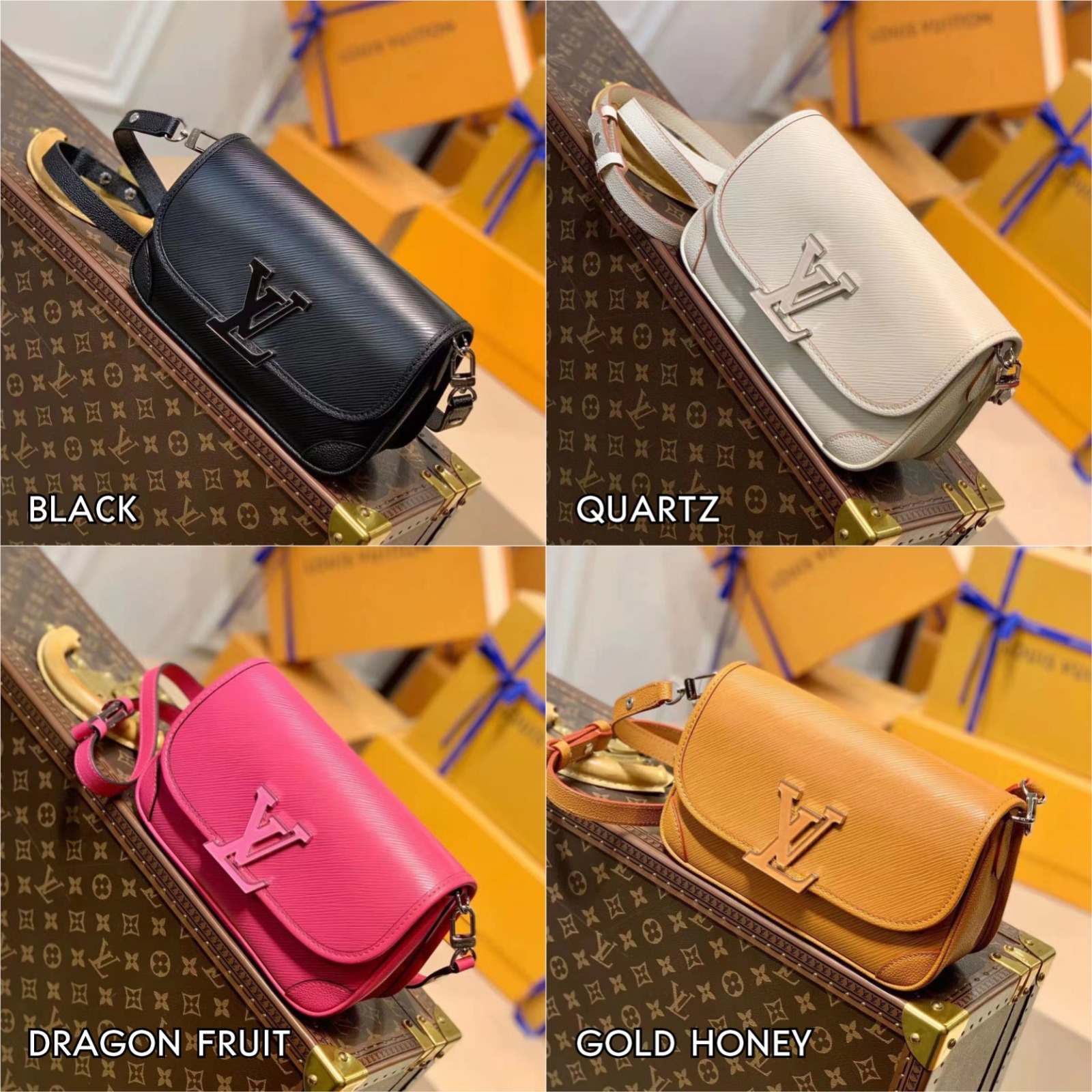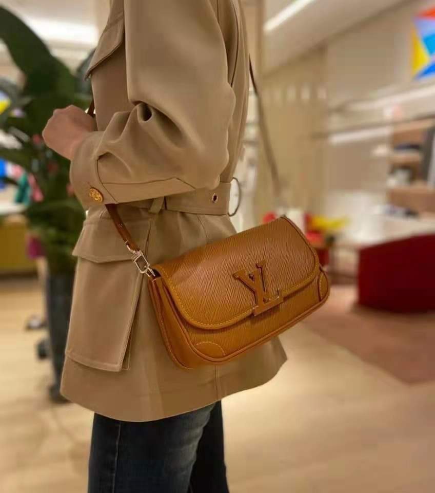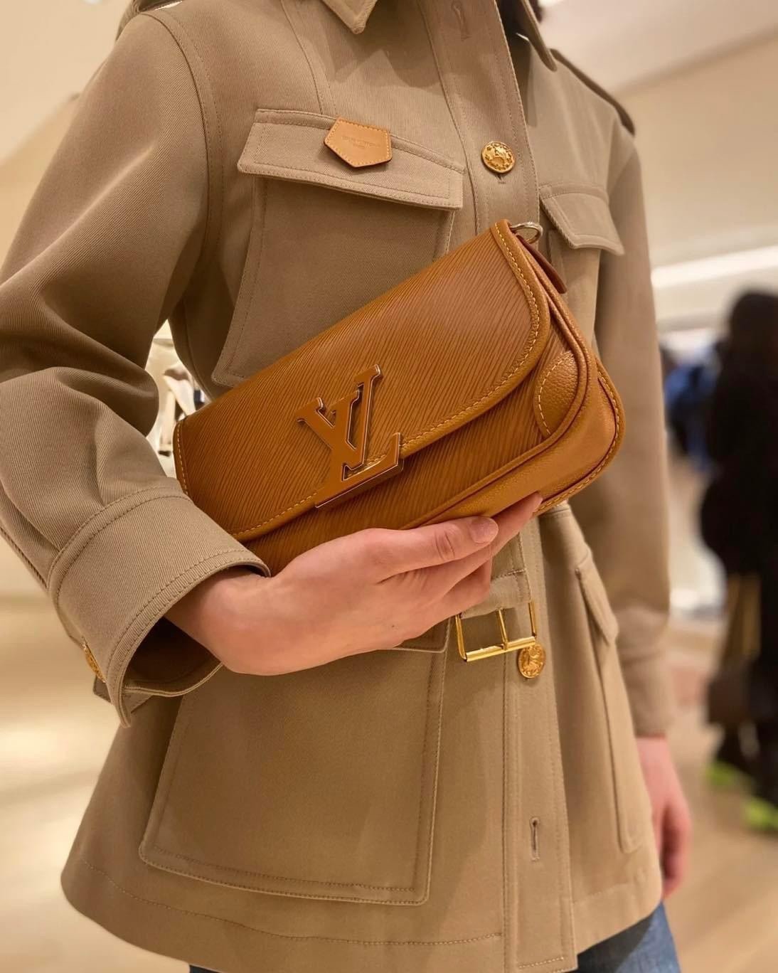 「BUCI」是將 90 年代推出的「Giveciere」斜挎包進行了重新詮釋,經典單品的柔和線條與光滑的皮革邊角融合得恰到好處。除了黑、白基礎色外,還推出了粉紅色「Dragon Fruit」和棕色「Gold Miel」兩款鮮亮的配色可供選擇,與包扣同色的LV樹脂裝飾相得益彰,精緻且魅力十足。