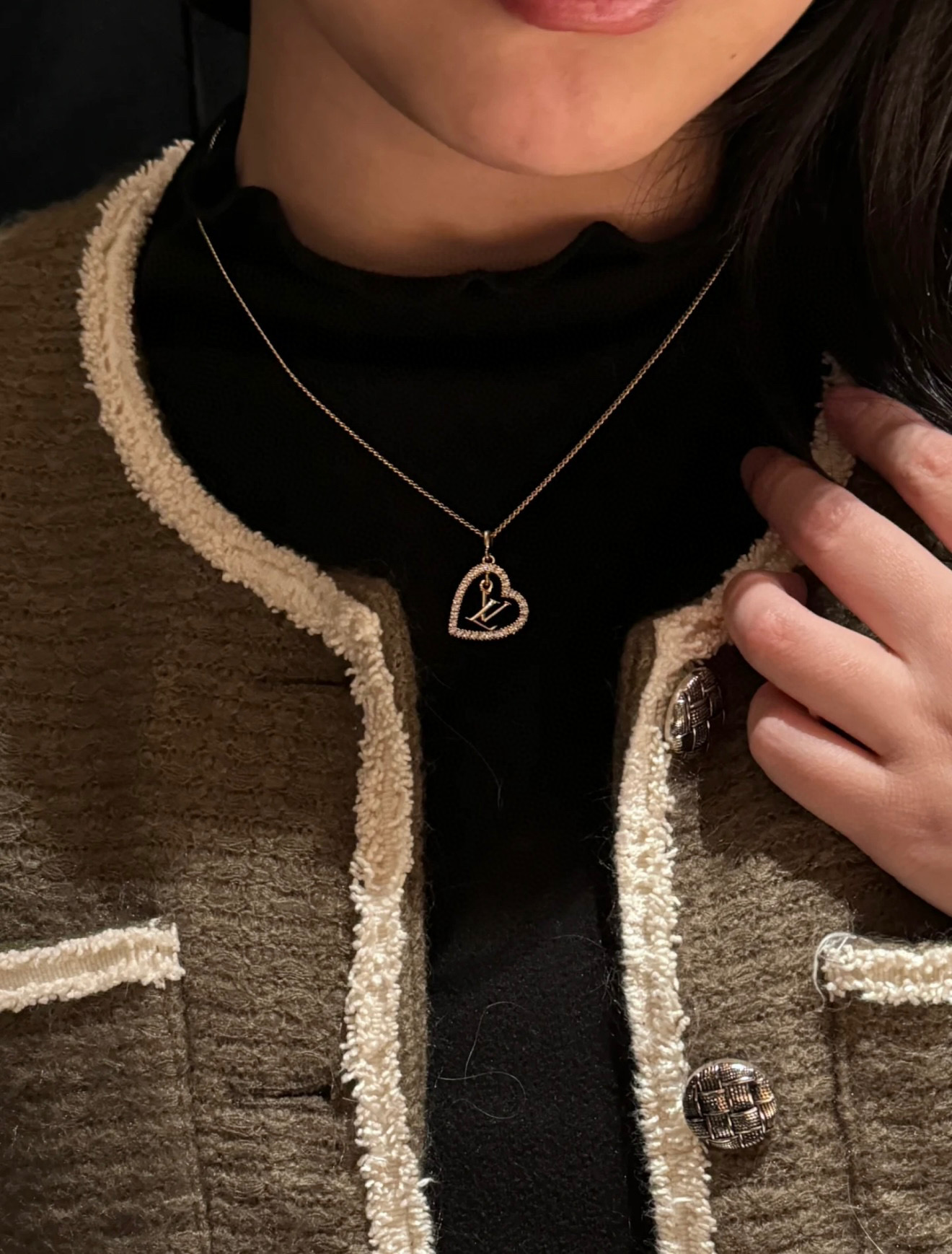 將經典的 LV 字母與愛心💖 元素巧妙結合,演繹出浪漫又時髦的✨ 氛圍 。鏤空心形吊墜以立體感設計展現俏皮感,再搭配閃耀奪目的立方氧化鋯💎 鑲嵌,讓整體造型多了幾分精緻與光彩 🌟