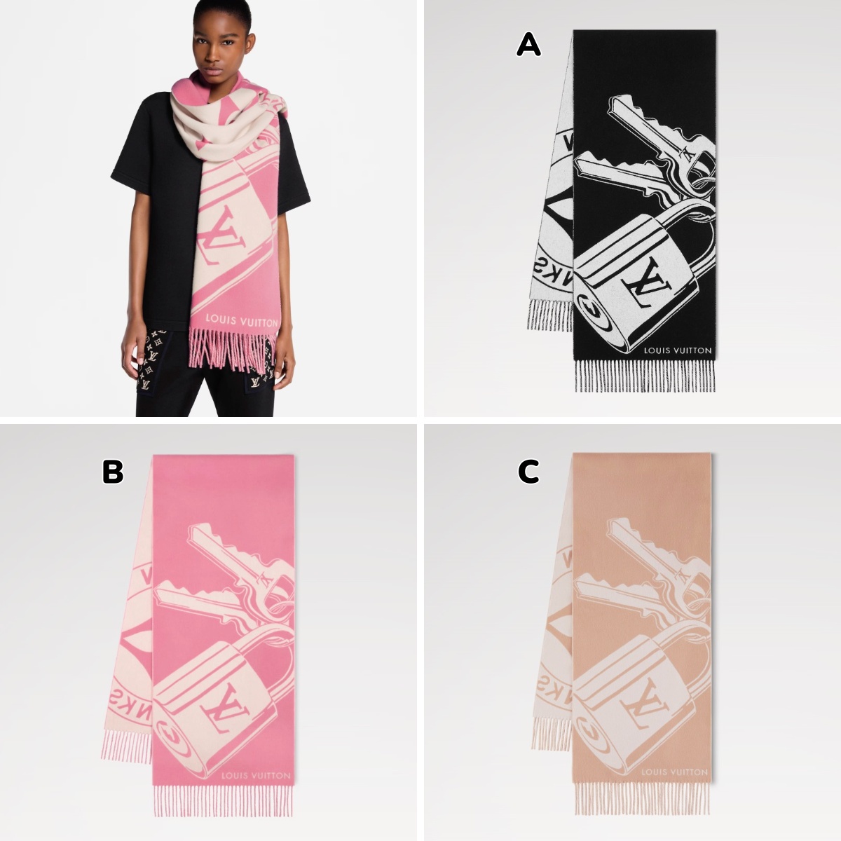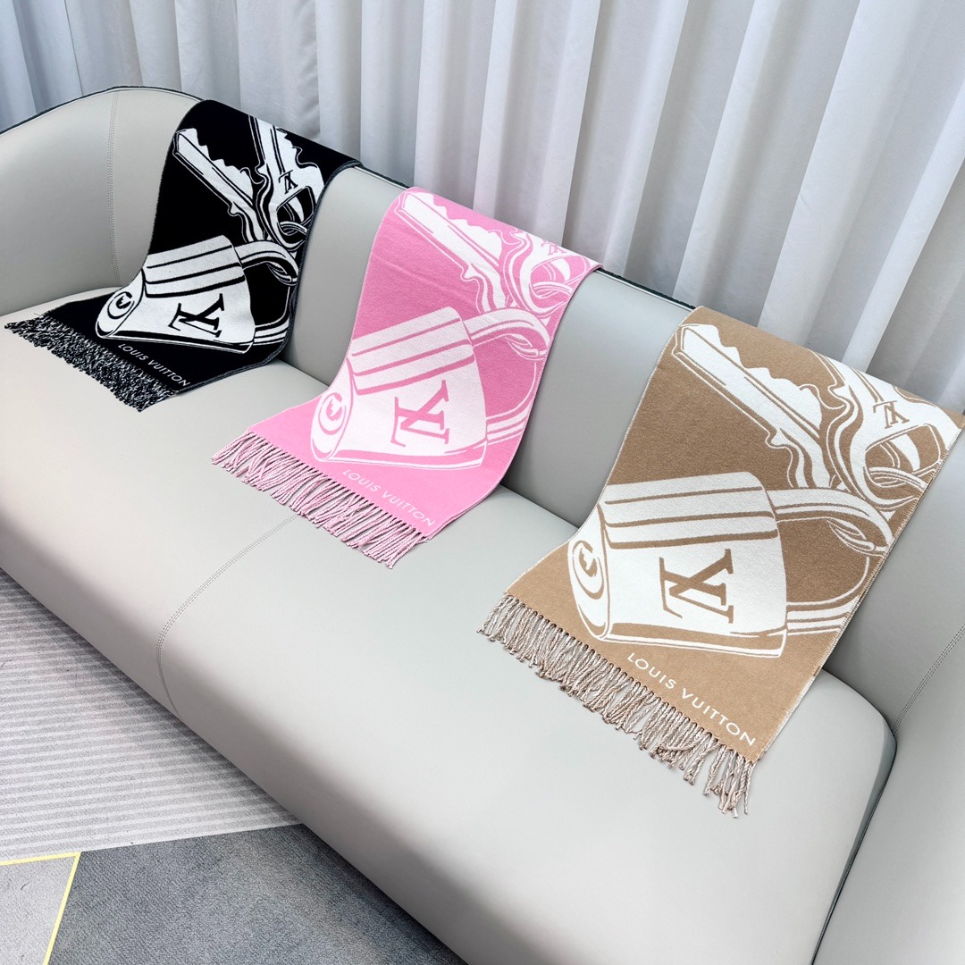 LV Lock And Keys Scarf 掛鎖鑰匙羊毛羊絨頸巾