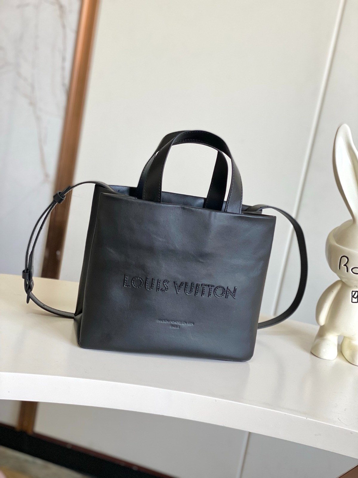 這款全黑設計的Mini Shopper Tote以牛皮製造,配以同色調飾邊。正面繡上黑色的同色調「LOUIS VUITTON」標誌,點綴低調精緻的奢華細節。內層設有拉鏈口袋及兩個貼袋,方便妥善收納隨身物品。手袋除備有可拆式及可調節長度的肩帶,還設有頂端手柄,可靈活轉換不同的攜帶方式。