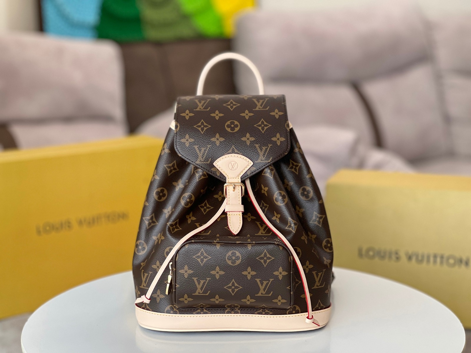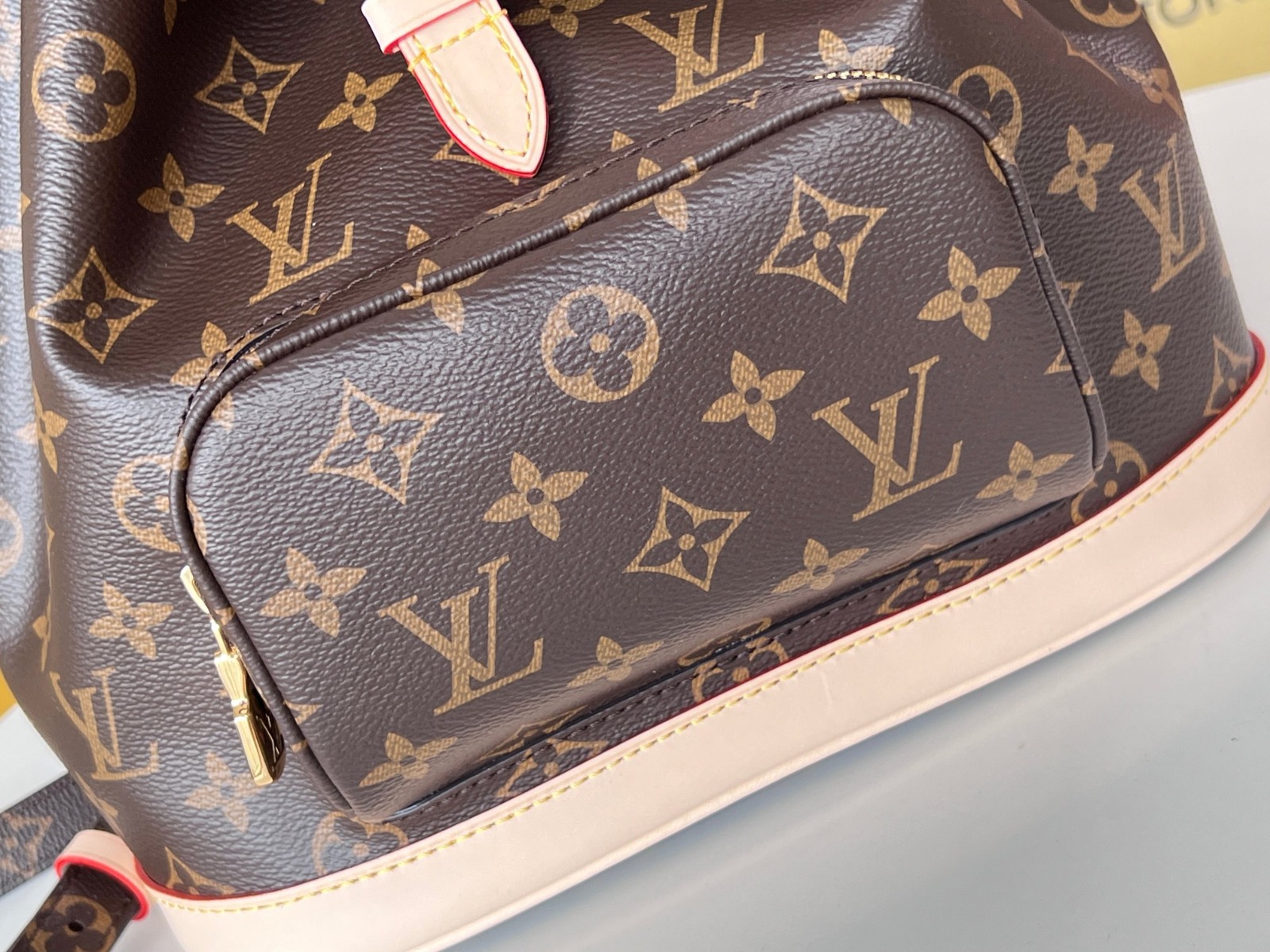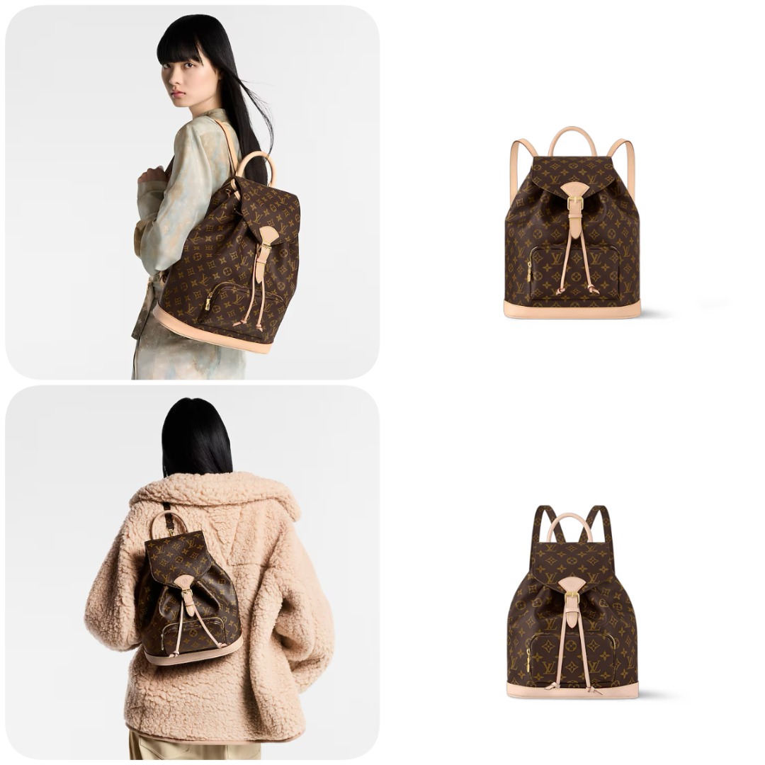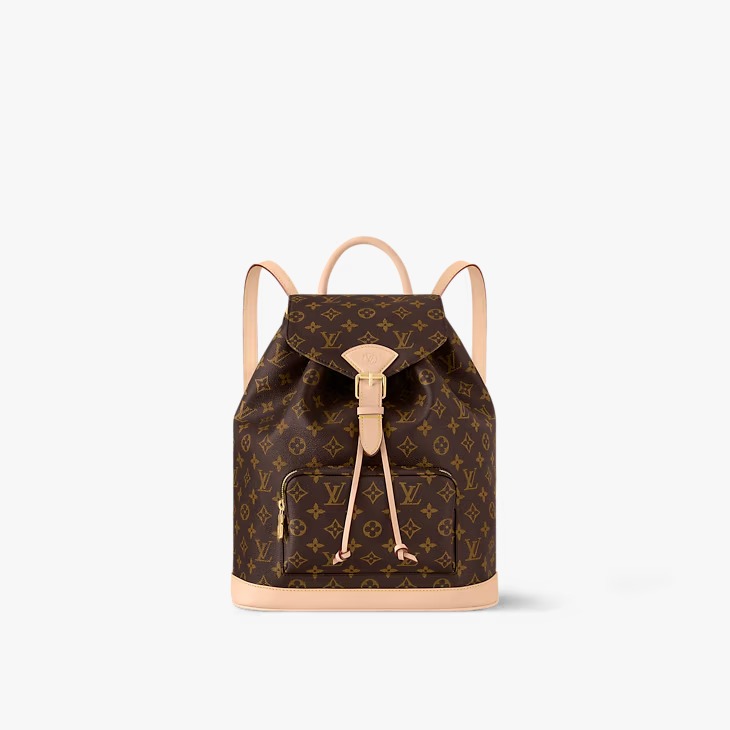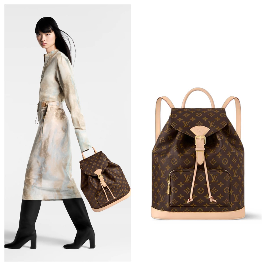 採用Monogram塗層帆布製作,向旅行與冒險精神致敬。背囊的設計靈感源自品牌1994年Montsouris袋款,備有正面拉鏈口袋、安全穩妥的抽繩和磁扣設計,而天然牛皮飾邊則與Monogram圖案互相輝映。