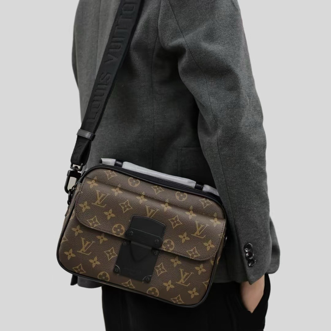 這款S Lock郵差包,採用Monogram Macassar塗層帆布製作,拉鍊開口/內1貼袋+前1磁石扣飾口袋供收納,而背帶可調整長度,作肩背或斜背攜帶,低調展現品牌格調,可收納長夾、手機等隨身物品,適合日常攜帶的,是專為繁忙都會人的設計的實用包款