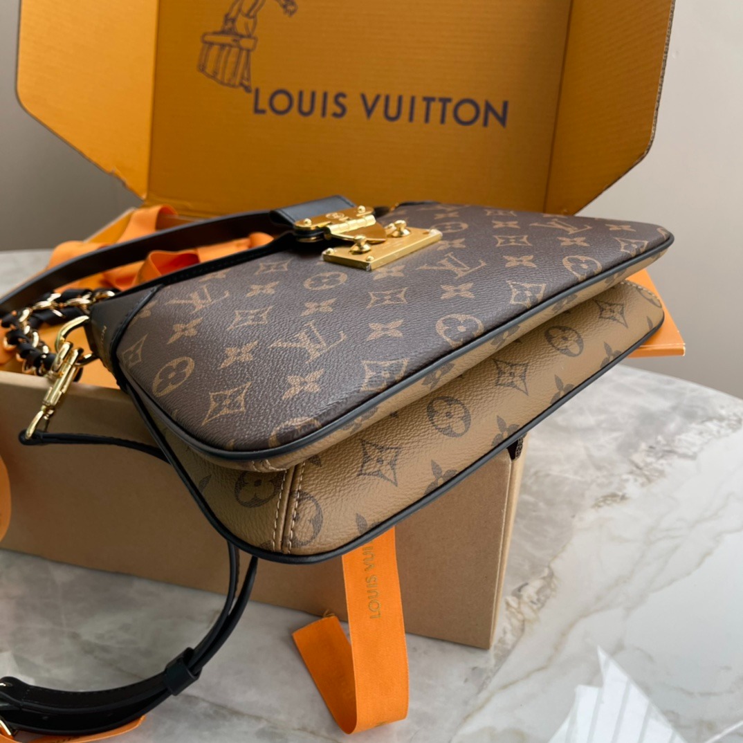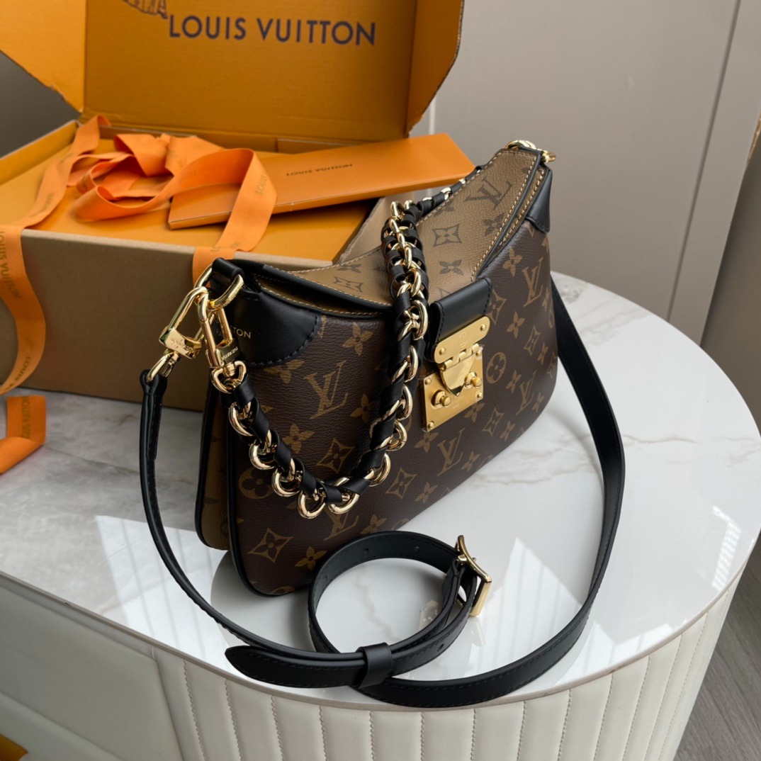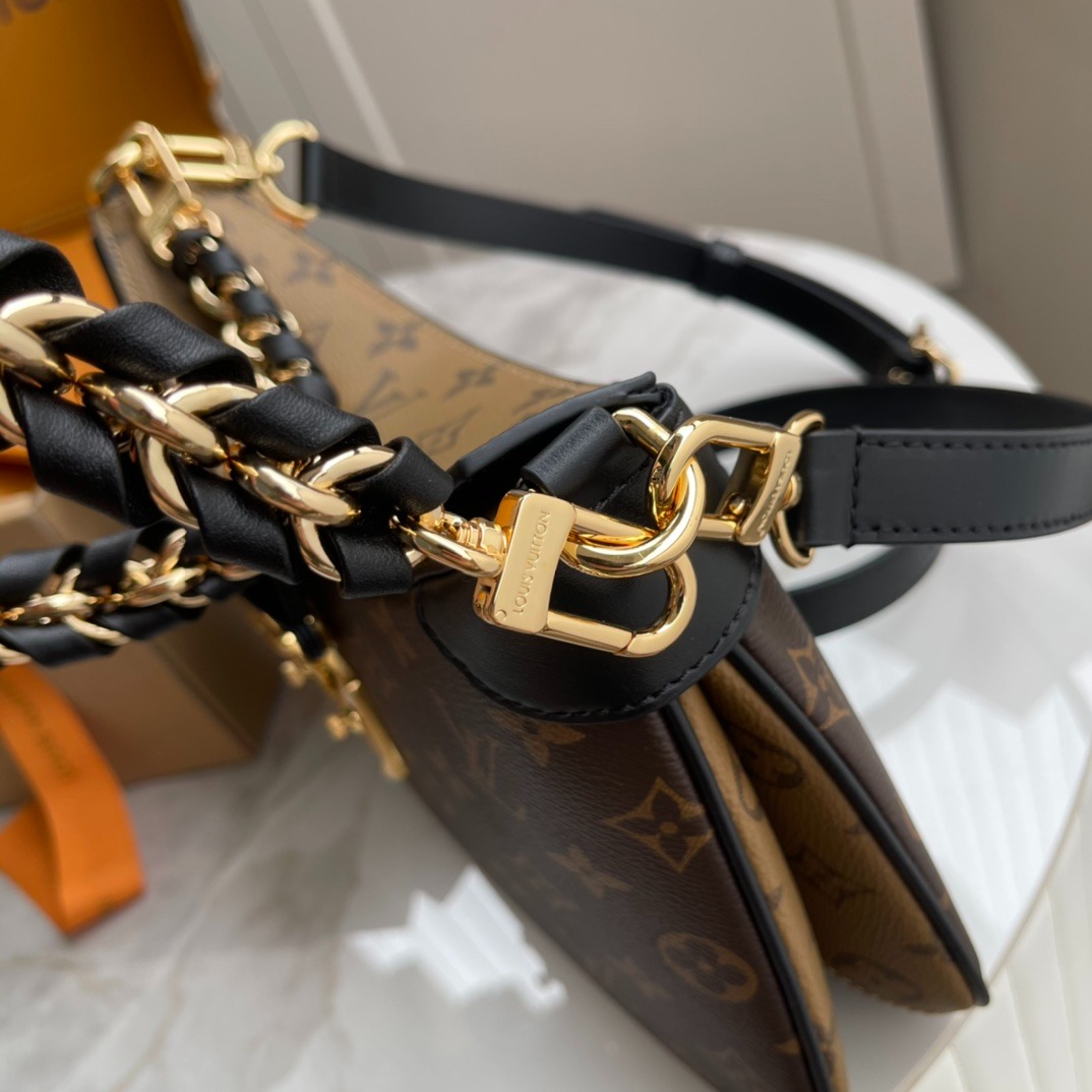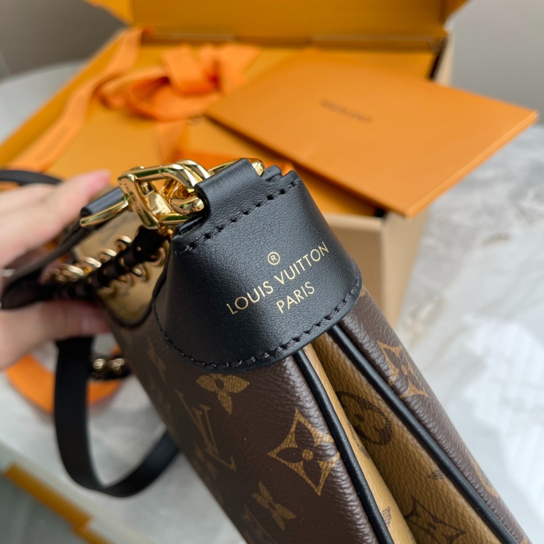 這款LV Twinny手袋的靈感來自路易威登的典藏設計,休閒而不失精緻,是今季主打的Monogram圖案手袋。手袋糅合Monogram及Monogram Reverse帆布,配以黑色皮革飾邊,飾以標誌性的S-Lock鎖扣及編織鏈帶手柄,可肩背、斜揹 隨心切換不同風格。