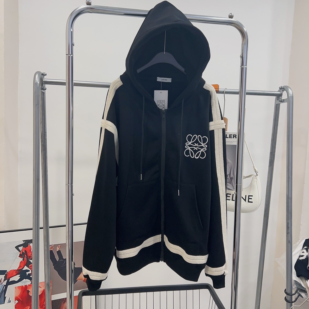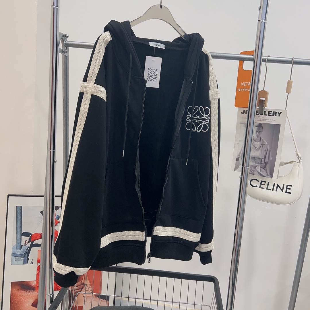 【原單】Loewe 編織帶加絨連帽拉鍊外套