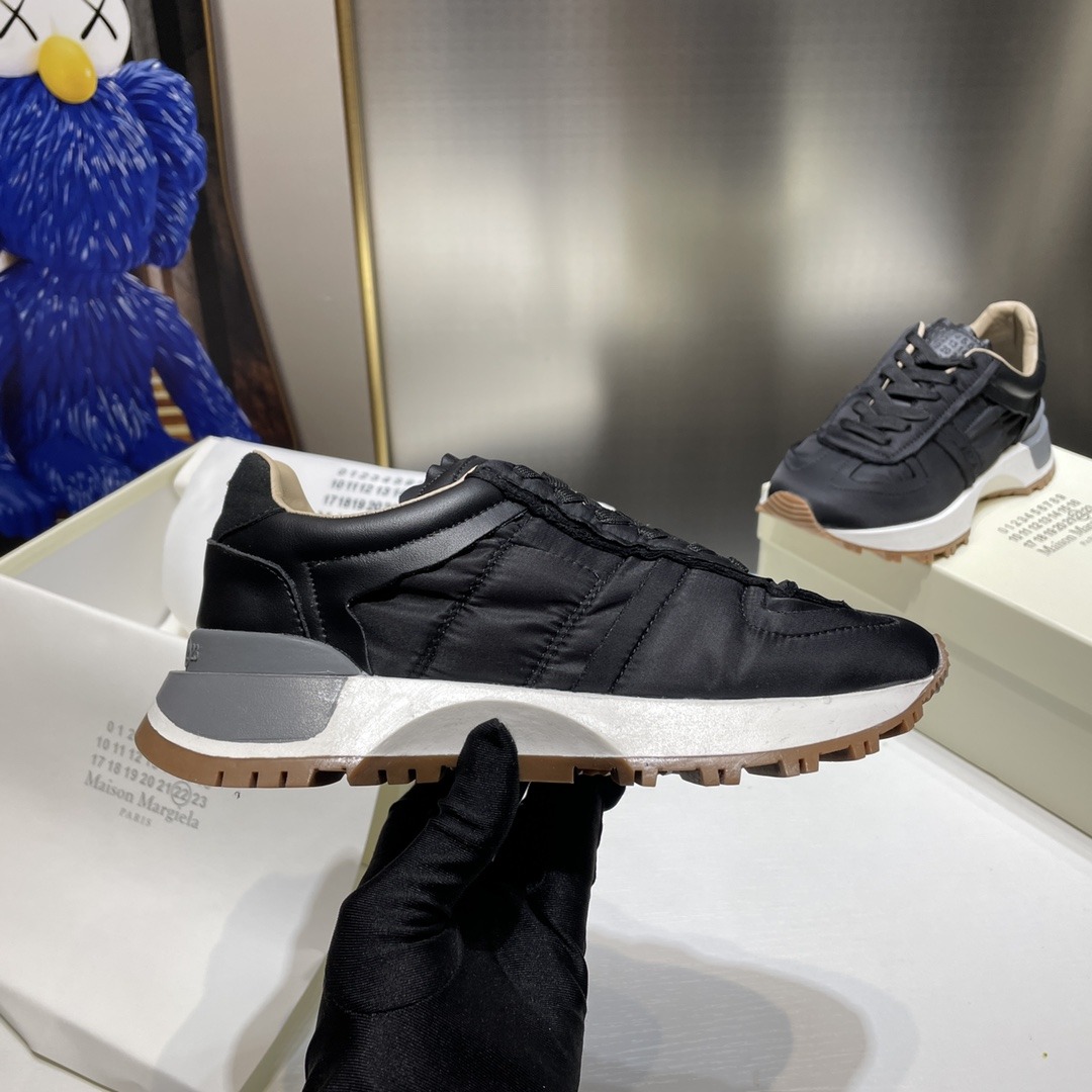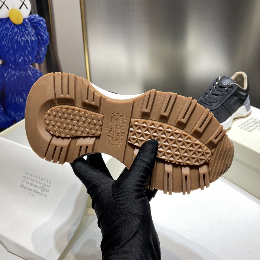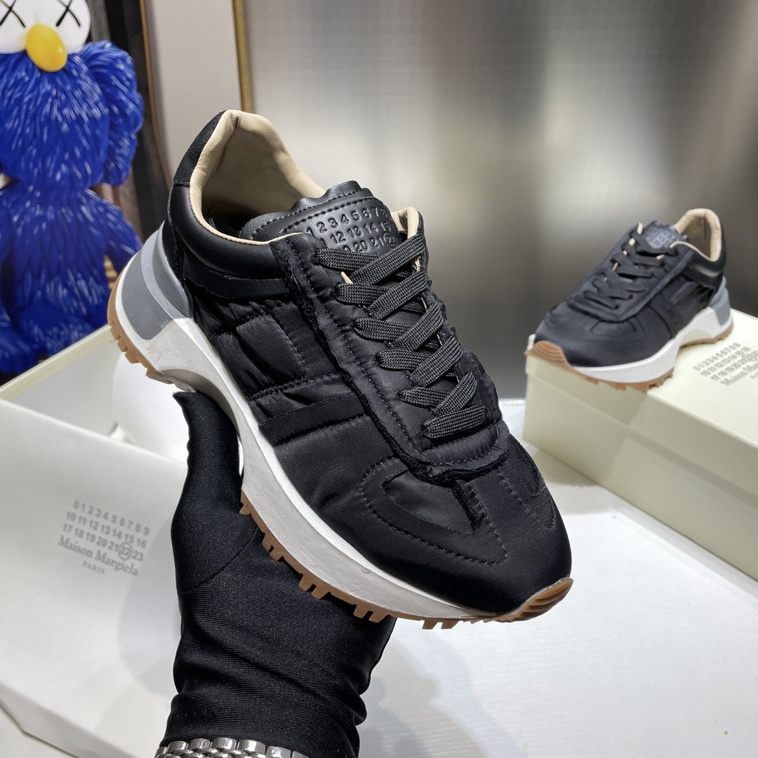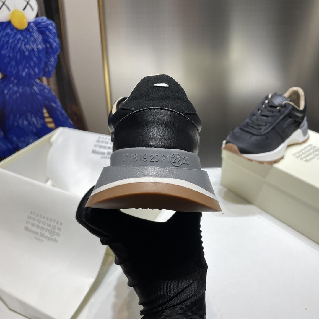 採用 Margiela 特色的重構設計。鞋面採用輕盈面料與優質小牛皮組合而成,並配有厚度適中的橡膠鞋底。鞋底後部飾有「數字標識」。彰顯了品牌的標誌性魅力