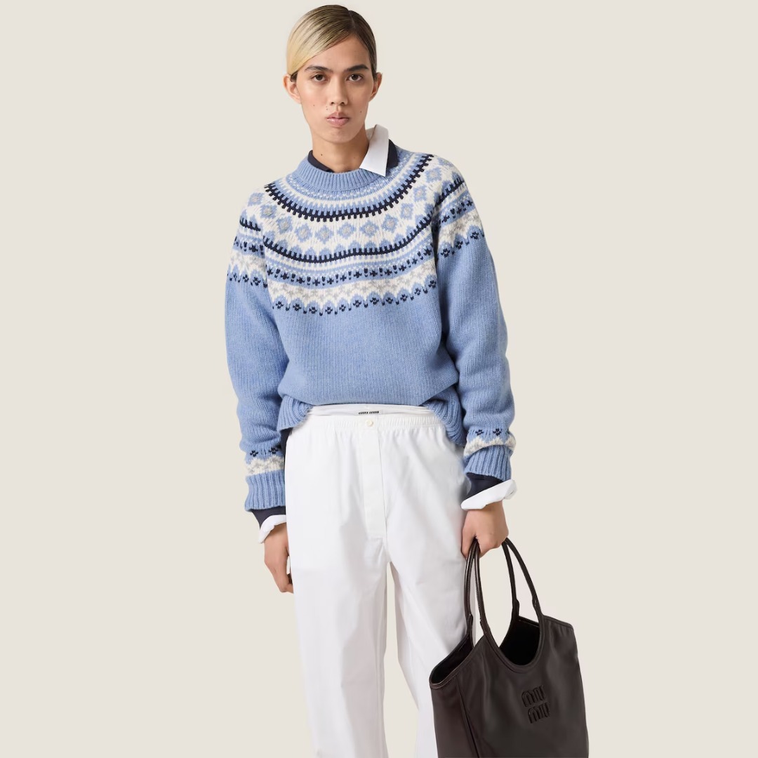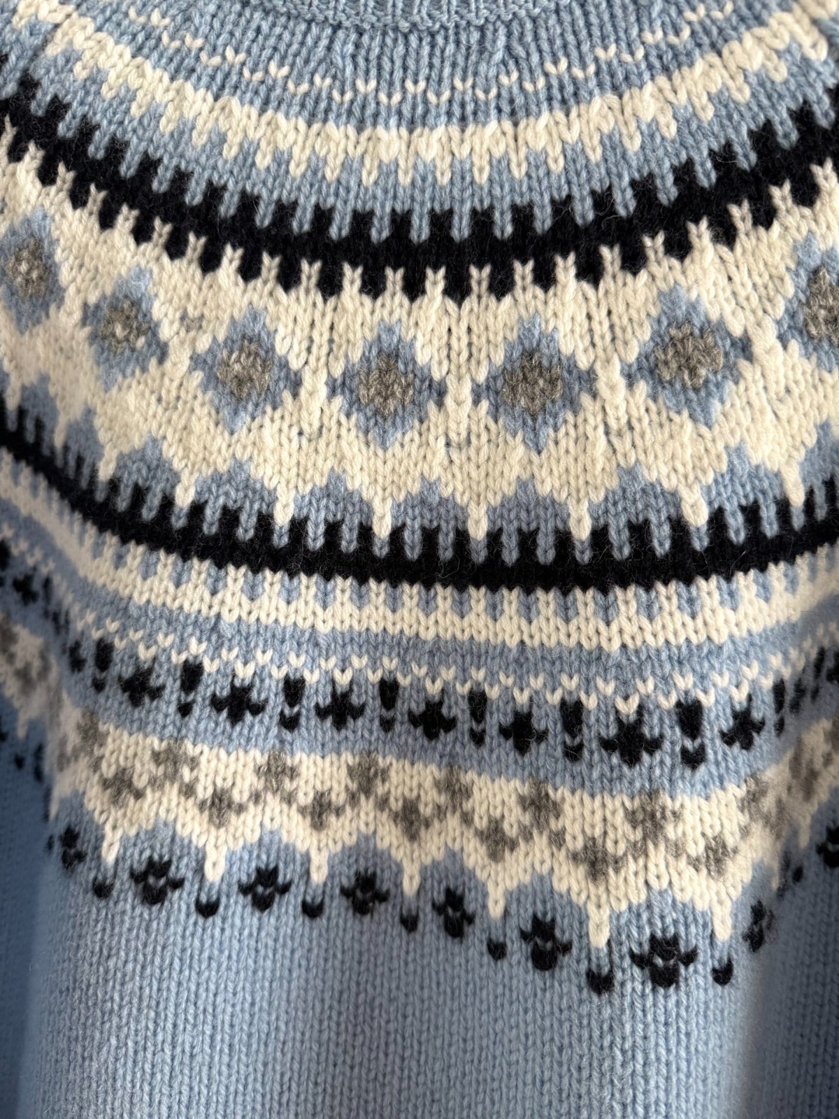 經典的「費爾島提花」—在淺藍色底上點綴雪花紋理❄️,就像冬夜裡靜靜飄落的初雪,柔和又浪漫🎈