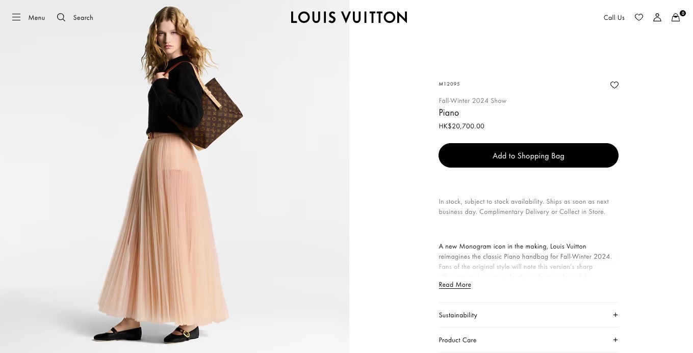 「Piano」是對經典包款的重新詮釋。它已作為新的 Monogram 標誌出現在 2024 年秋冬系列中。熟悉原型號的人會注意到新型號的鮮明輪廓和側面的標誌性三角形皮革。不對稱的手柄營造出現代氣息。實用且別緻的設計讓您可以攜帶日常必需品。