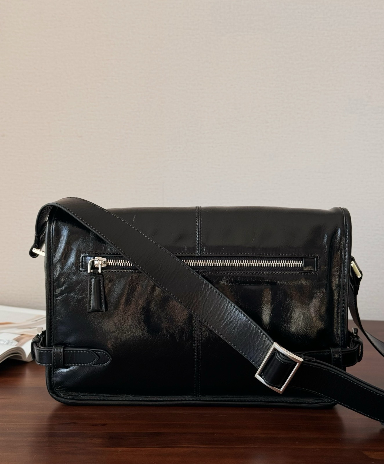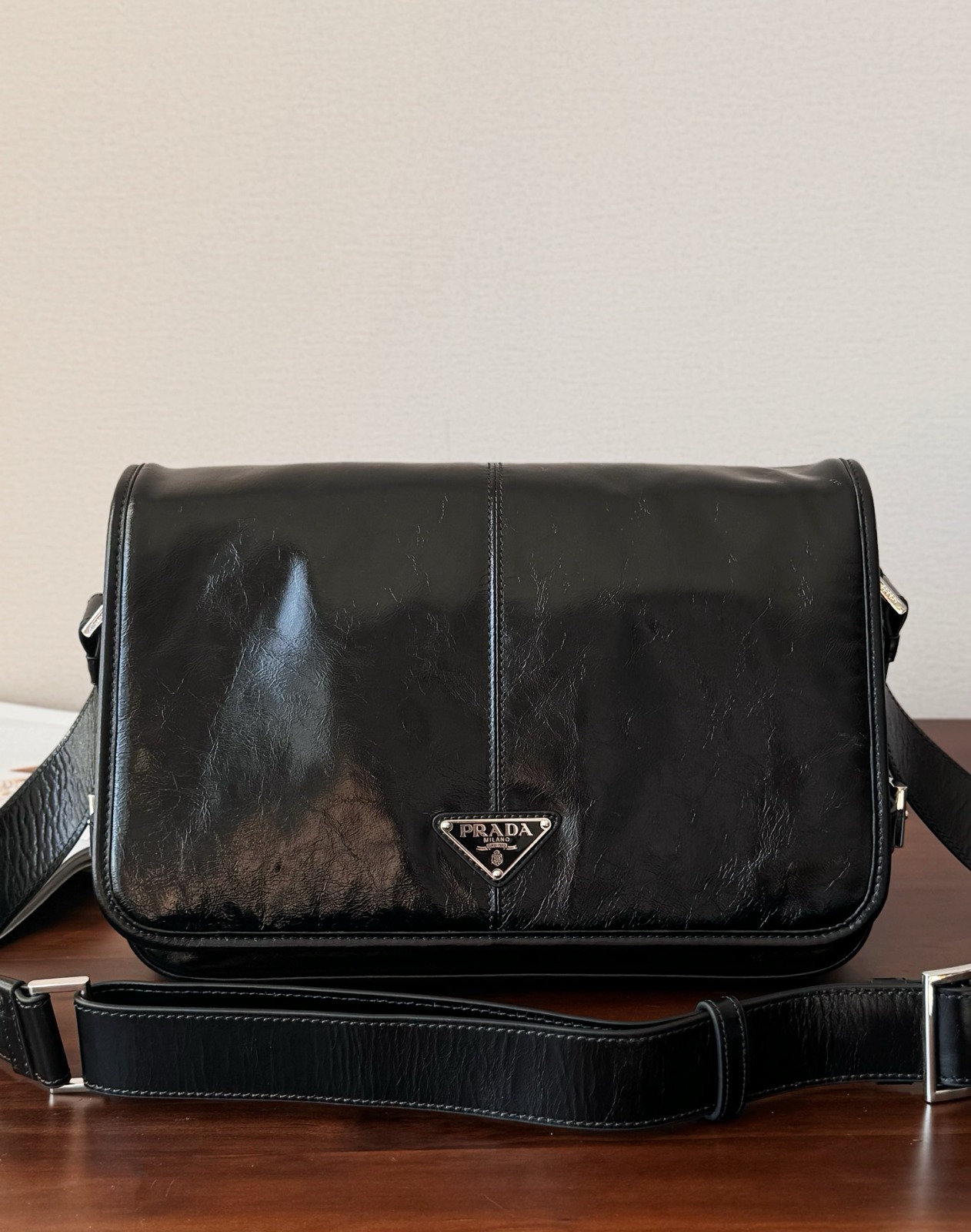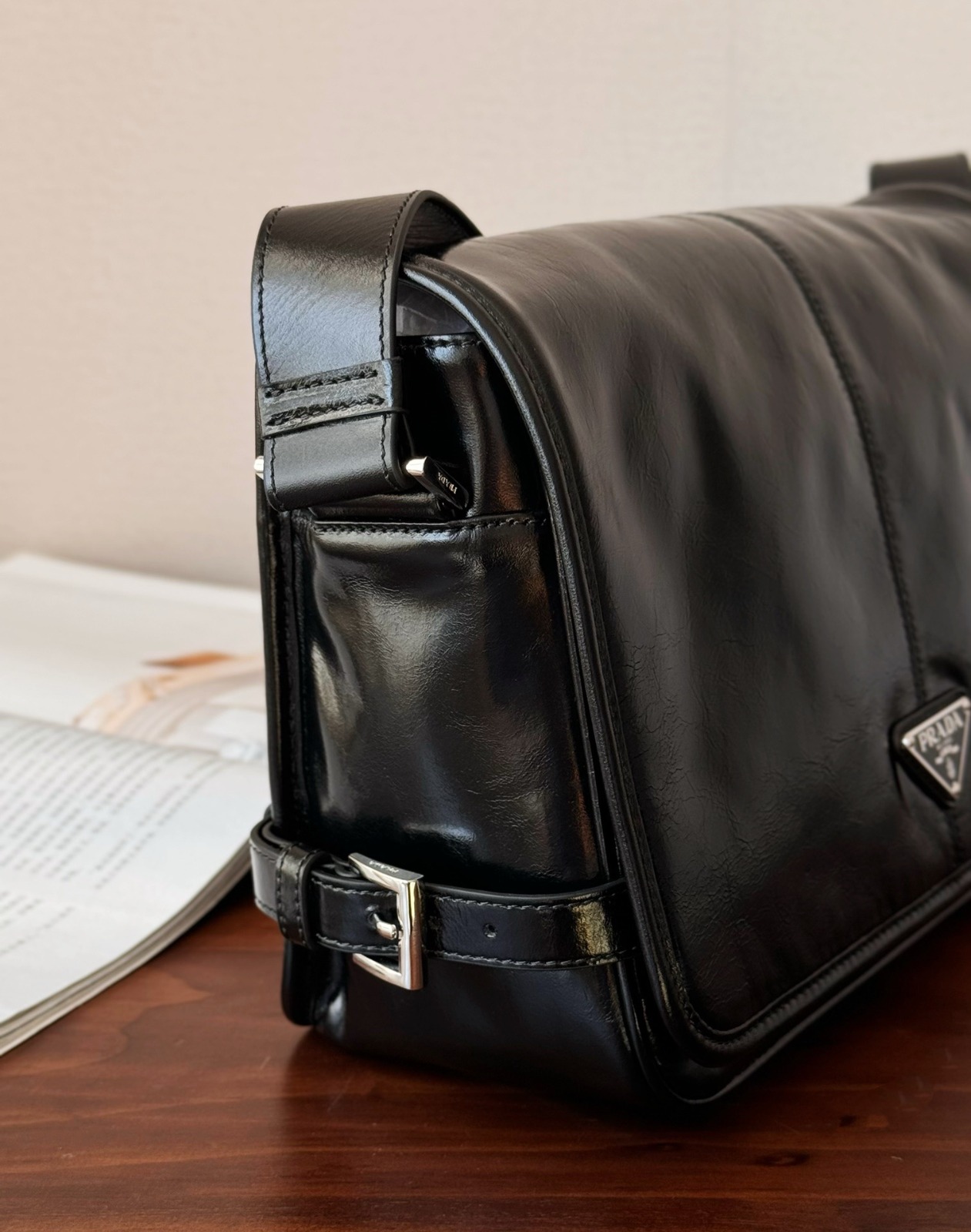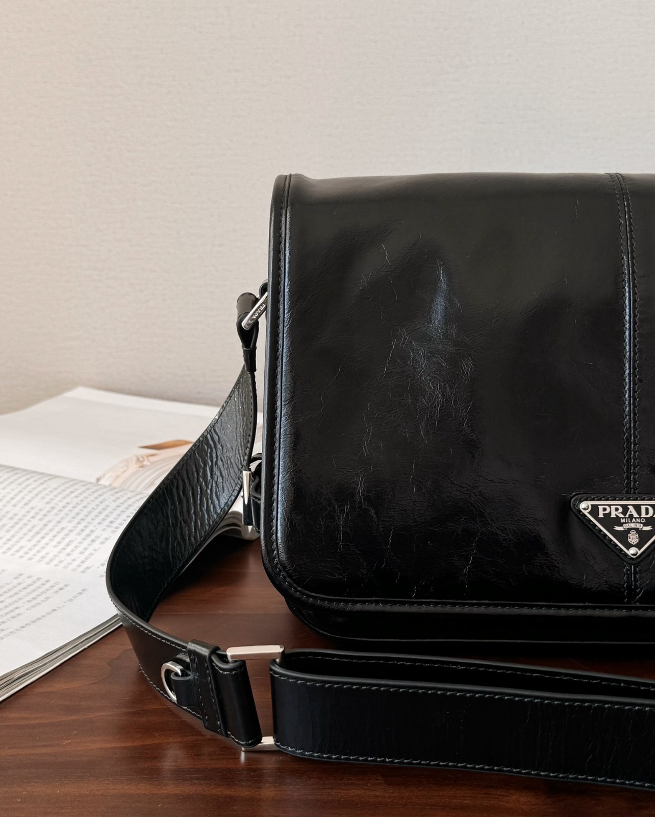 這款肩背袋時尚百搭,採用柔軟皮革製成,線條簡潔流暢,擁有光澤飾面,綴以獨特的三角標誌。