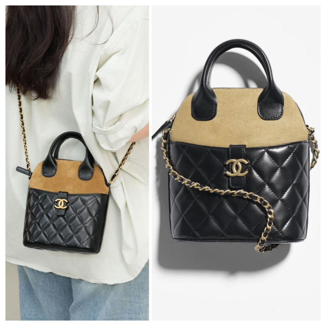 🎨 包款採用棕色麂皮與 bodin.joyeux 抛光小羊皮拼接而成,兩種材質形成了啞光與亮面之間的反差,展現獨特的層次感與時髦氛圍 👜
