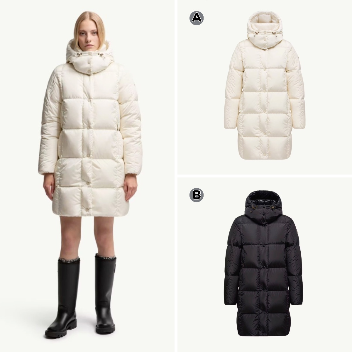 Moncler Litte 方形絎縫連帽長羽絨服外套