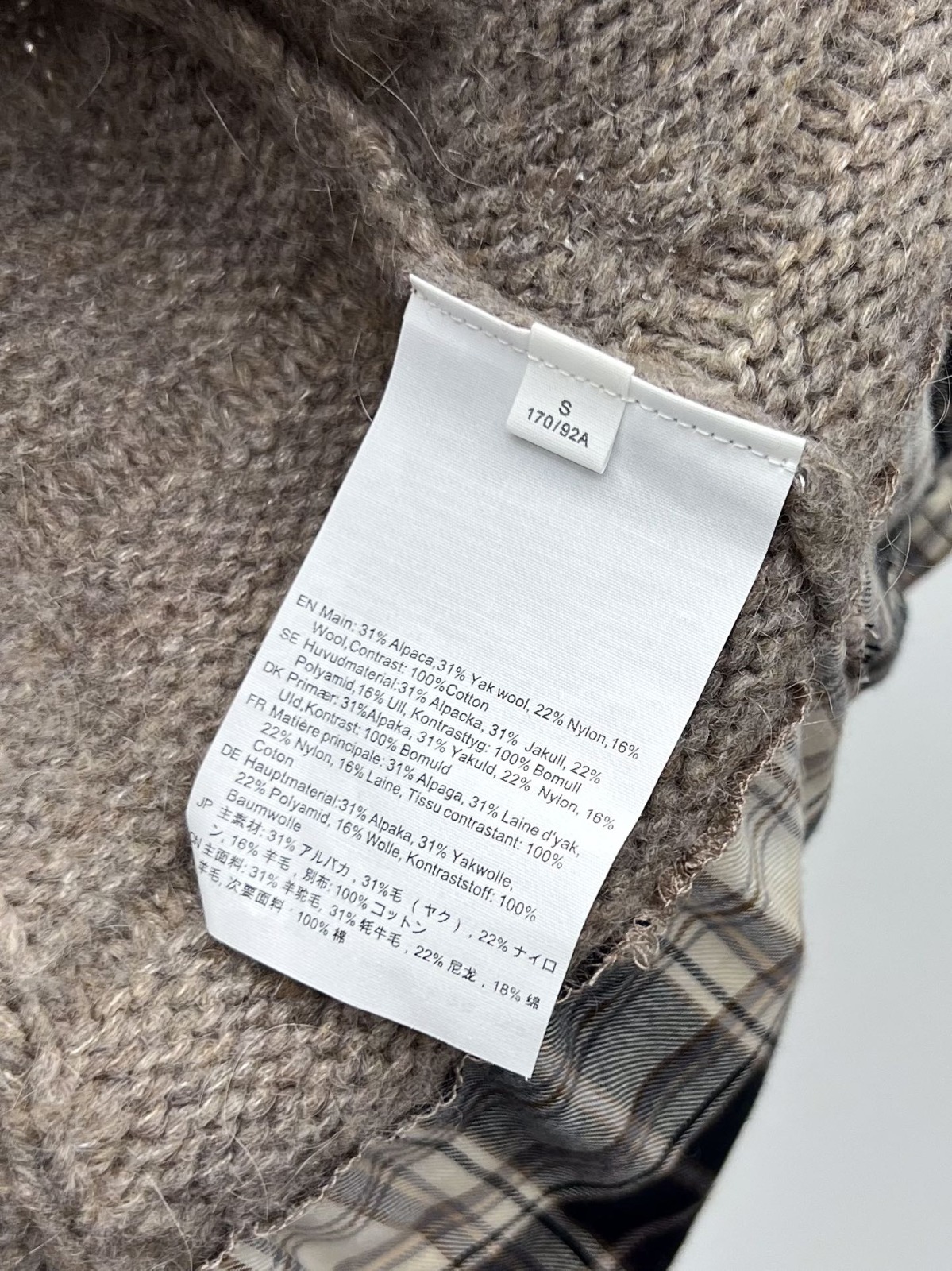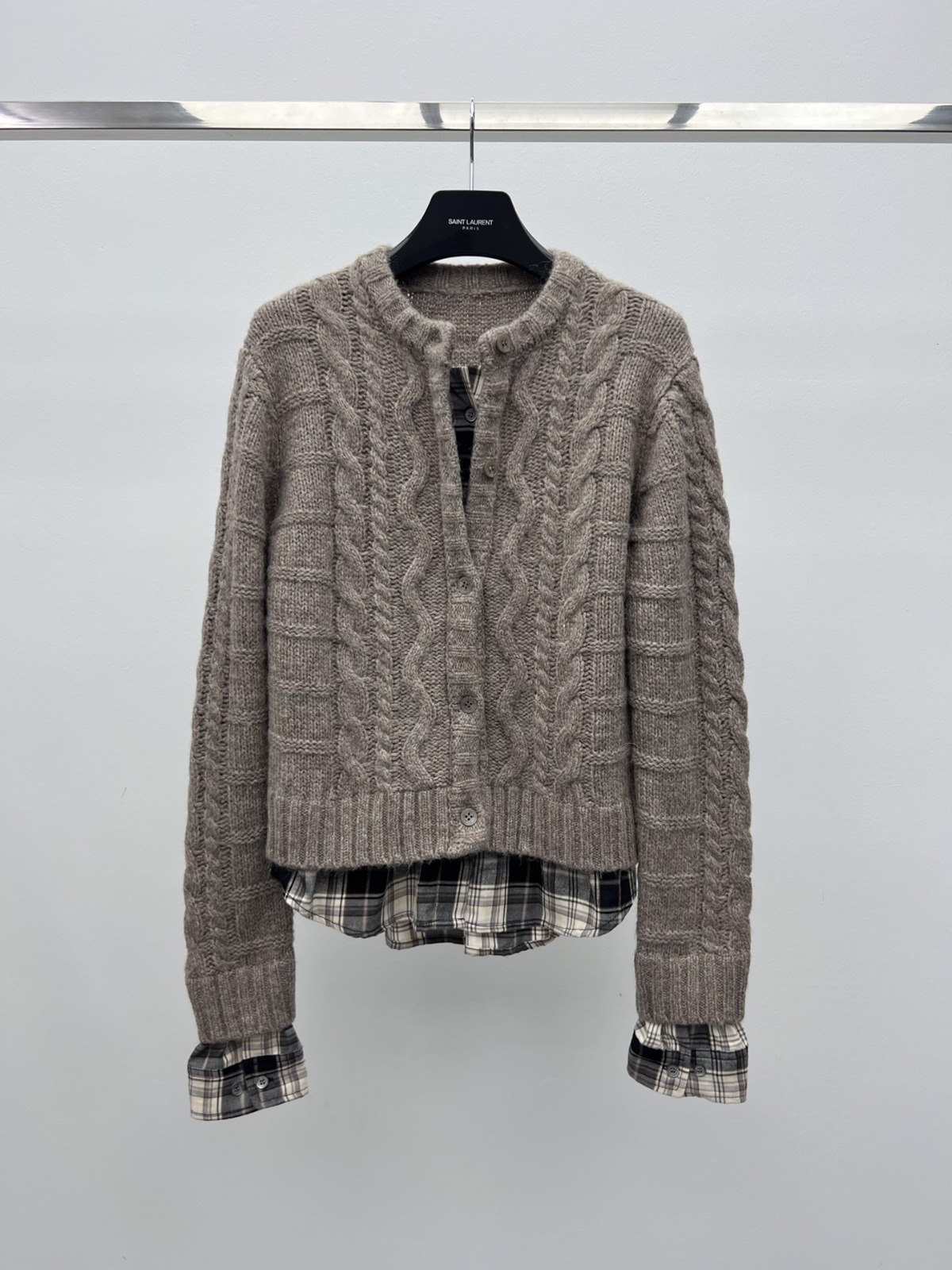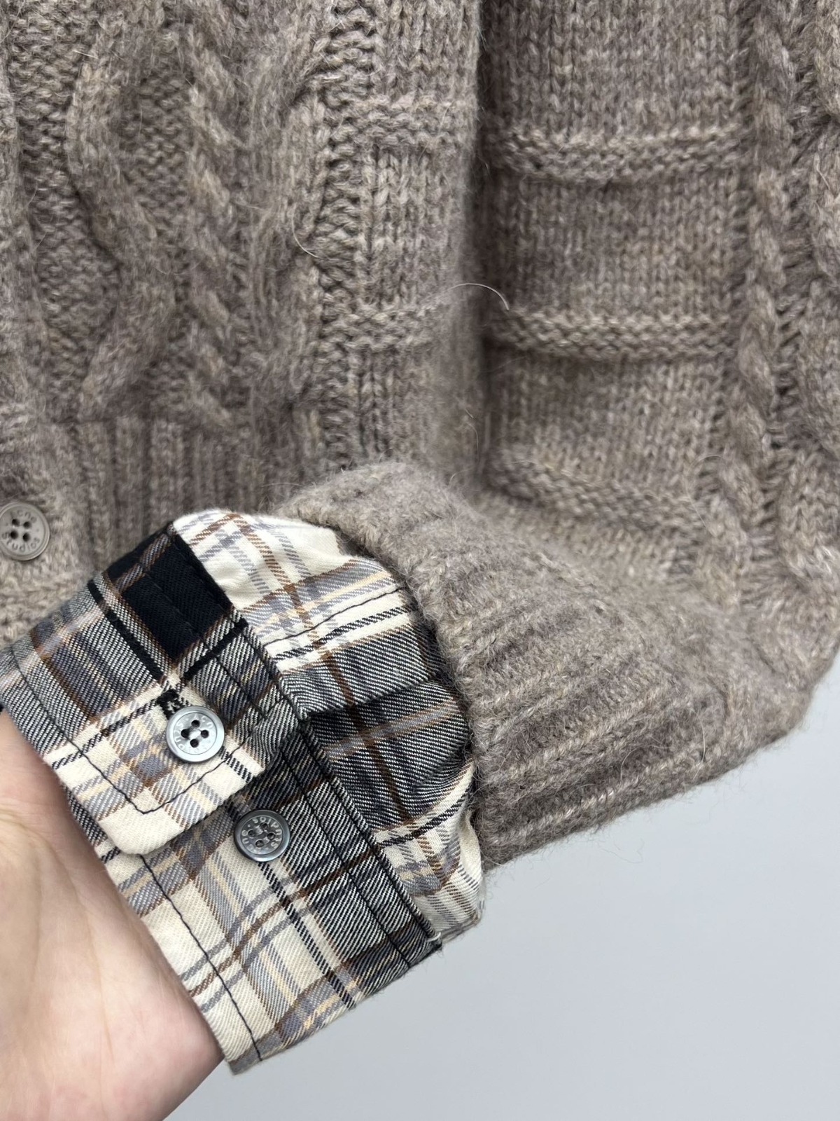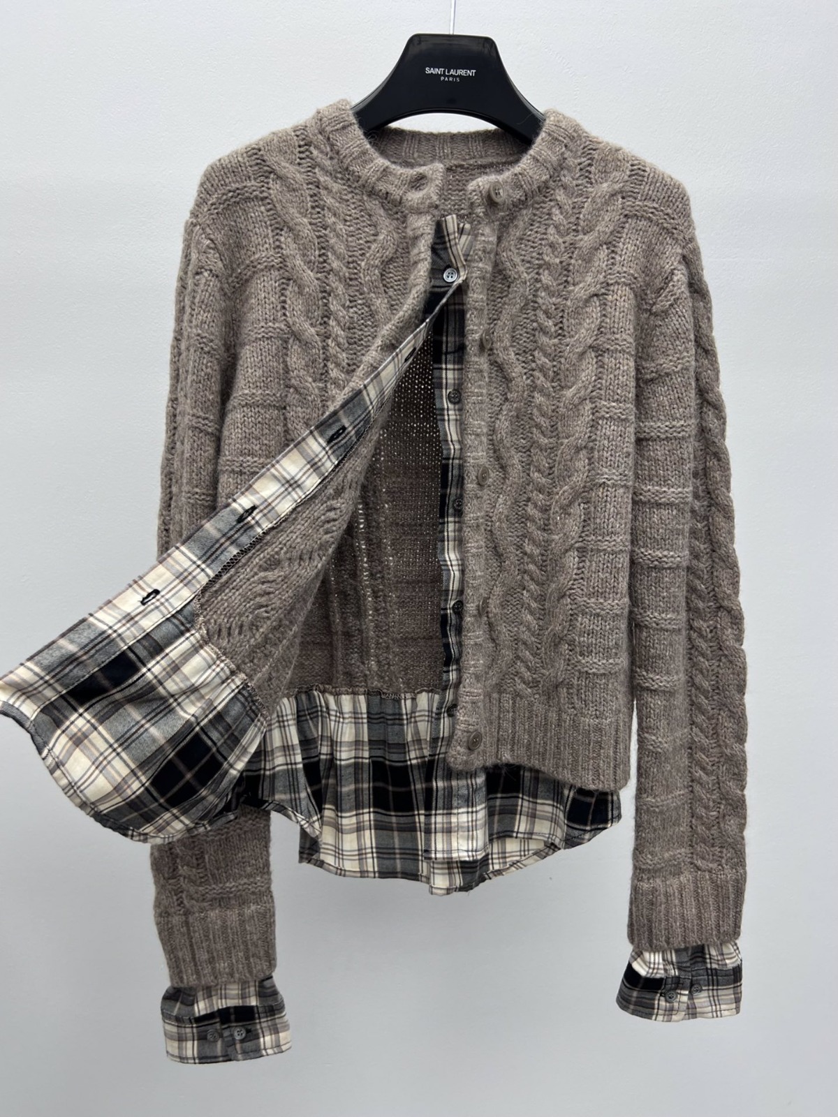 Acne Studios 格紋拼接假兩件毛衣開衫