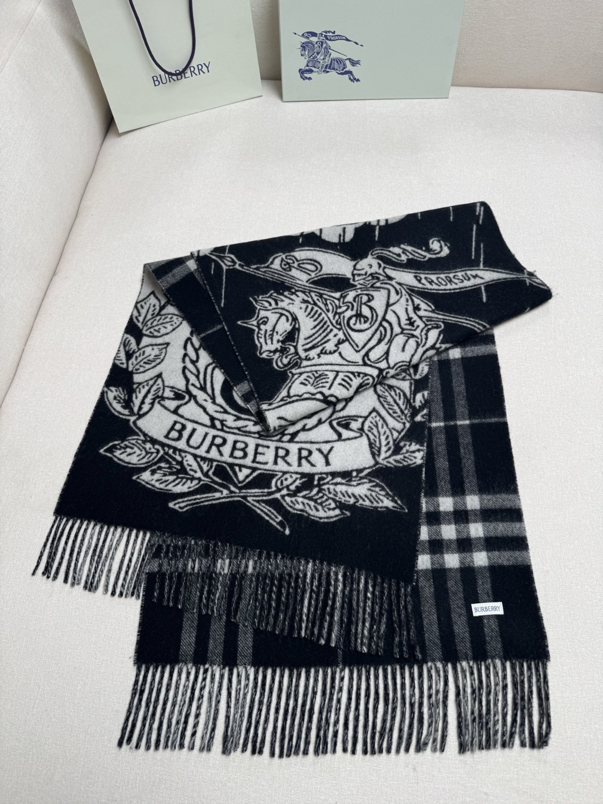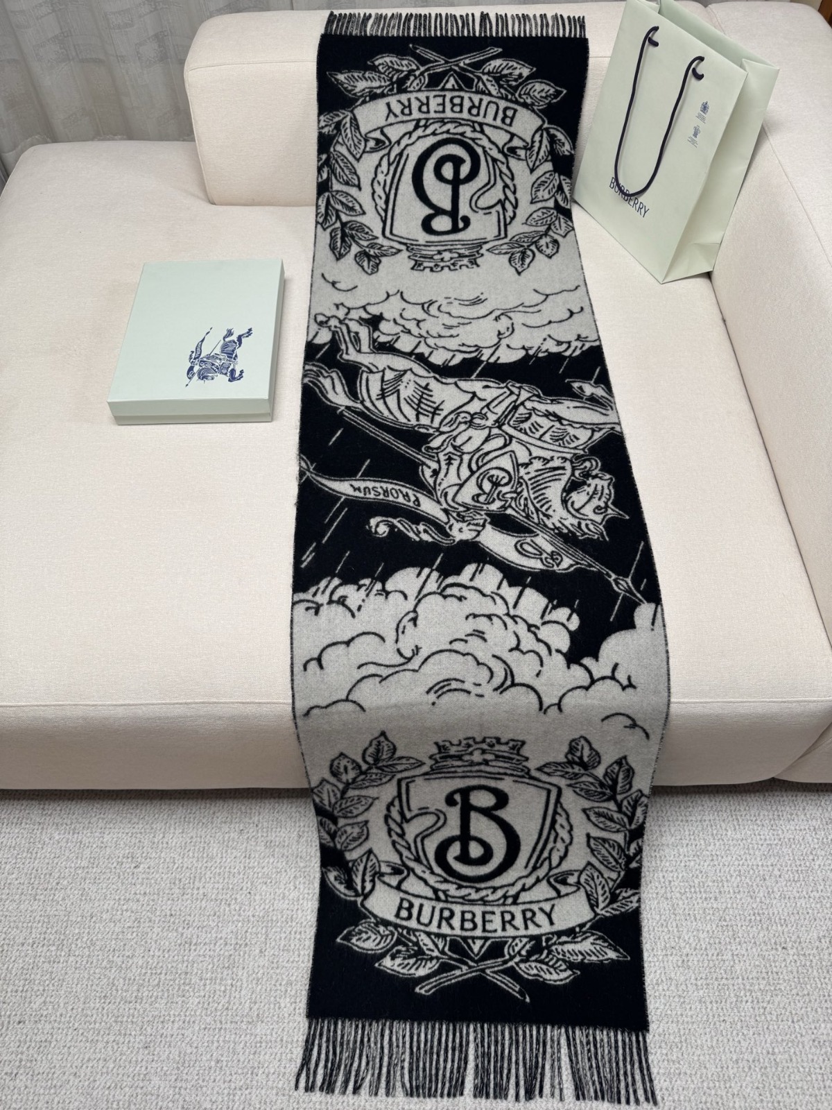 BURBERRY Wide Reversible Stormy Knight Scarf 雙面騎士羊絨頸巾🧣