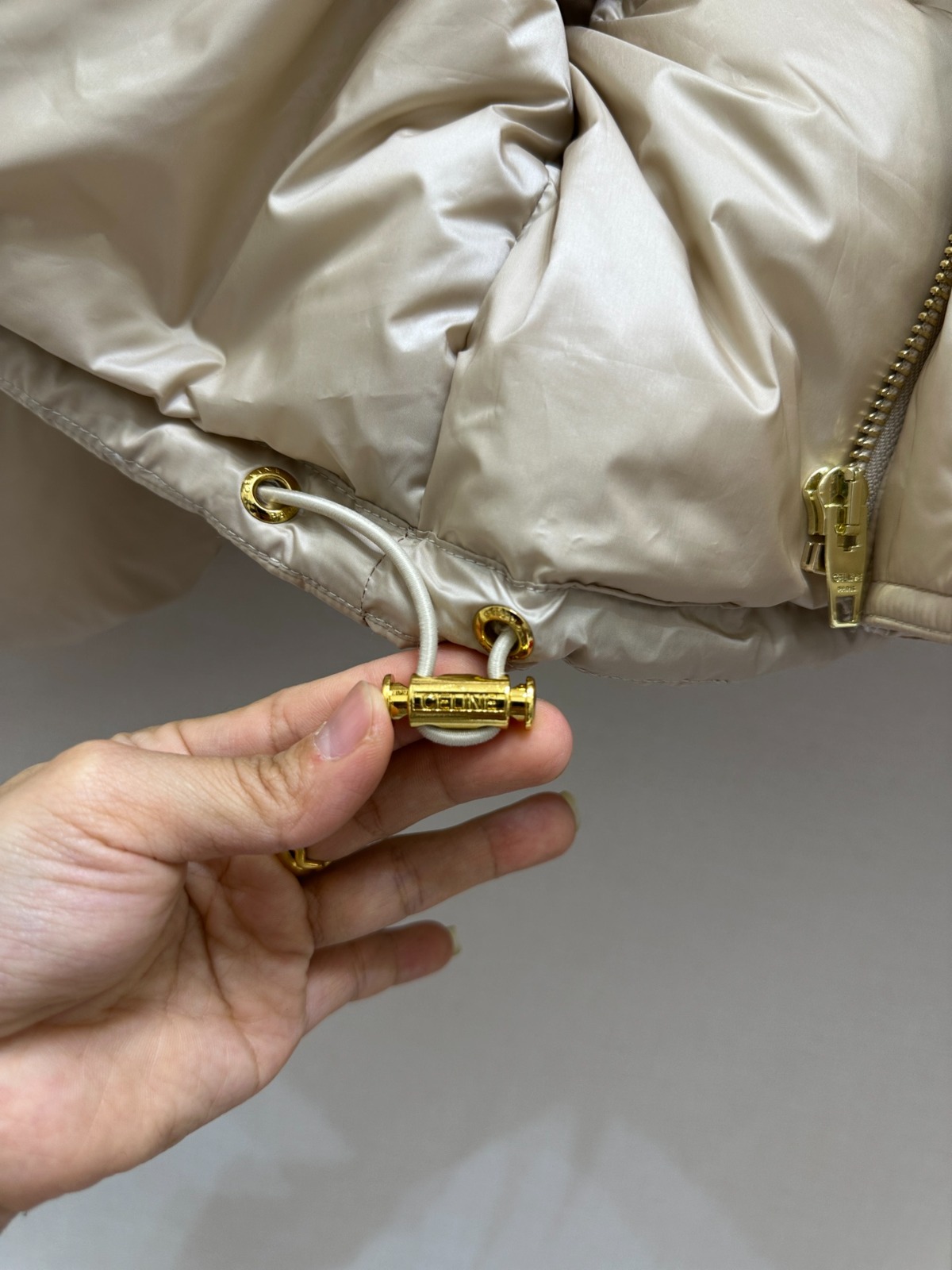 🔄 下擺可調節抽繩,搭配 Celine 鐫刻繩扣,增強個性化 💖