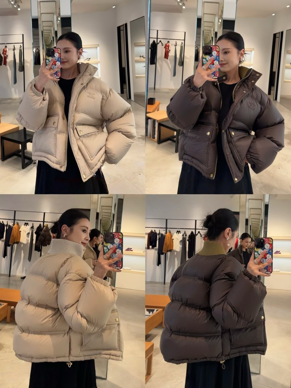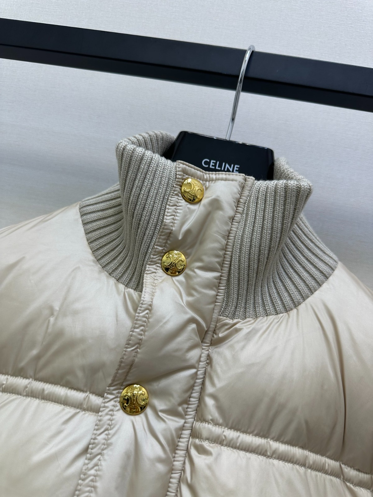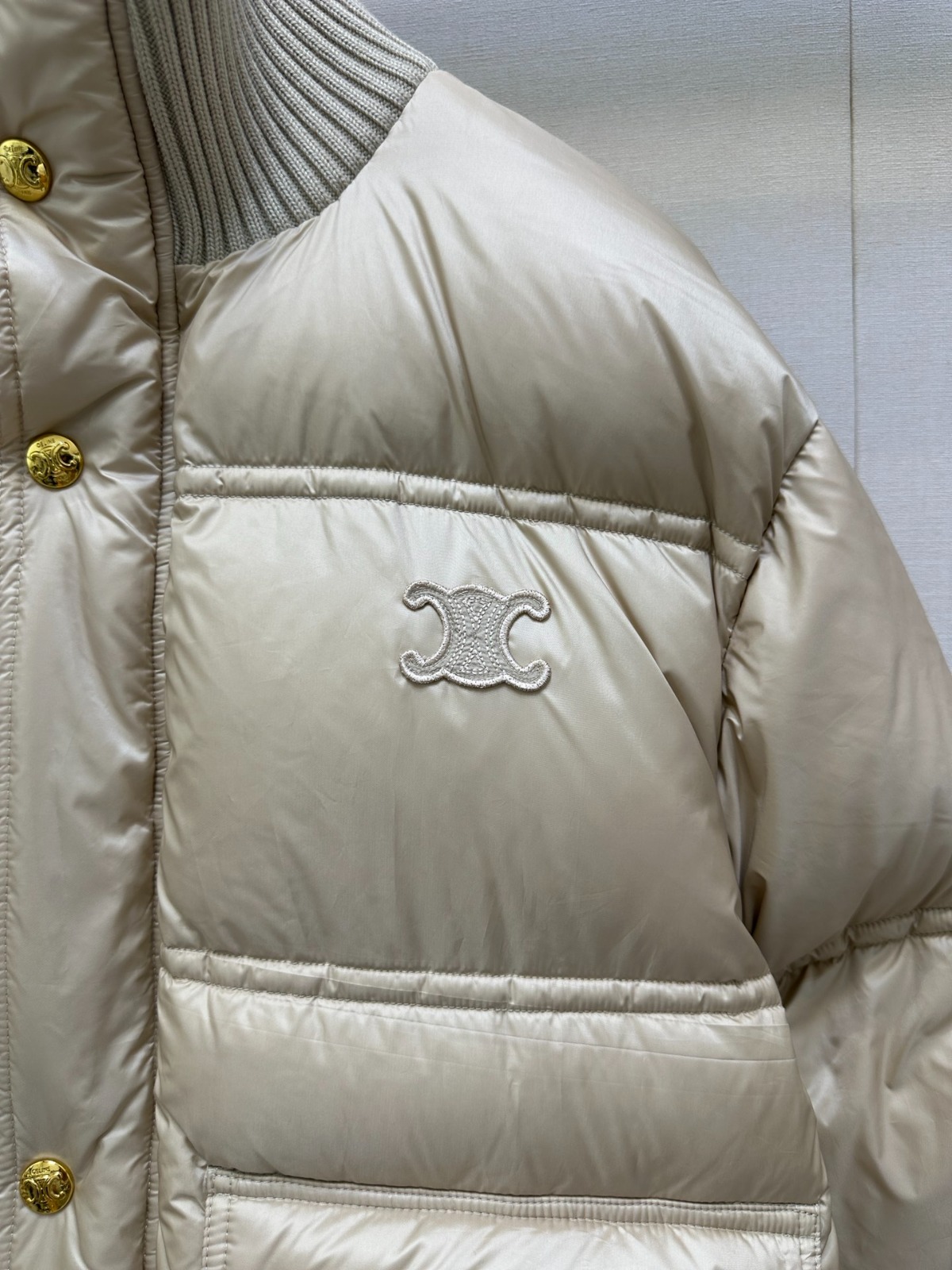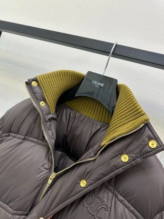【頂級原單】CELINE 撞色羊毛針織領羽絨外套