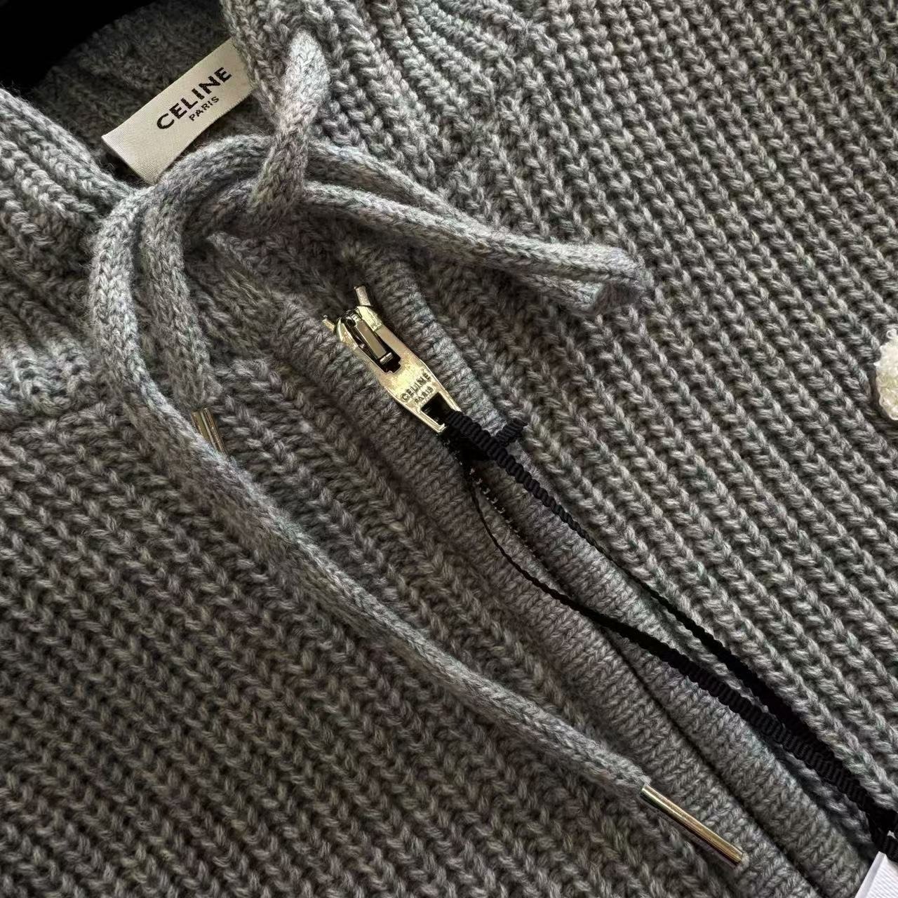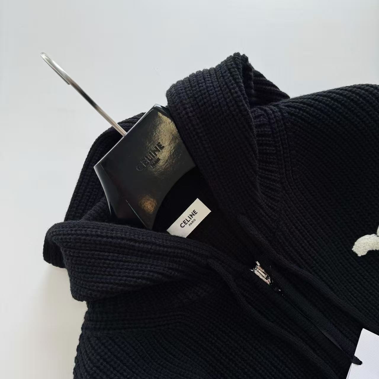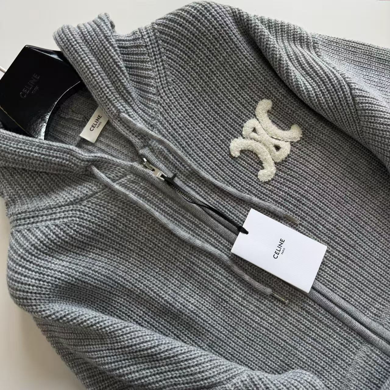 CELINE Hooded Cardigan In Ribbed Wool 連帽拉鏈外套