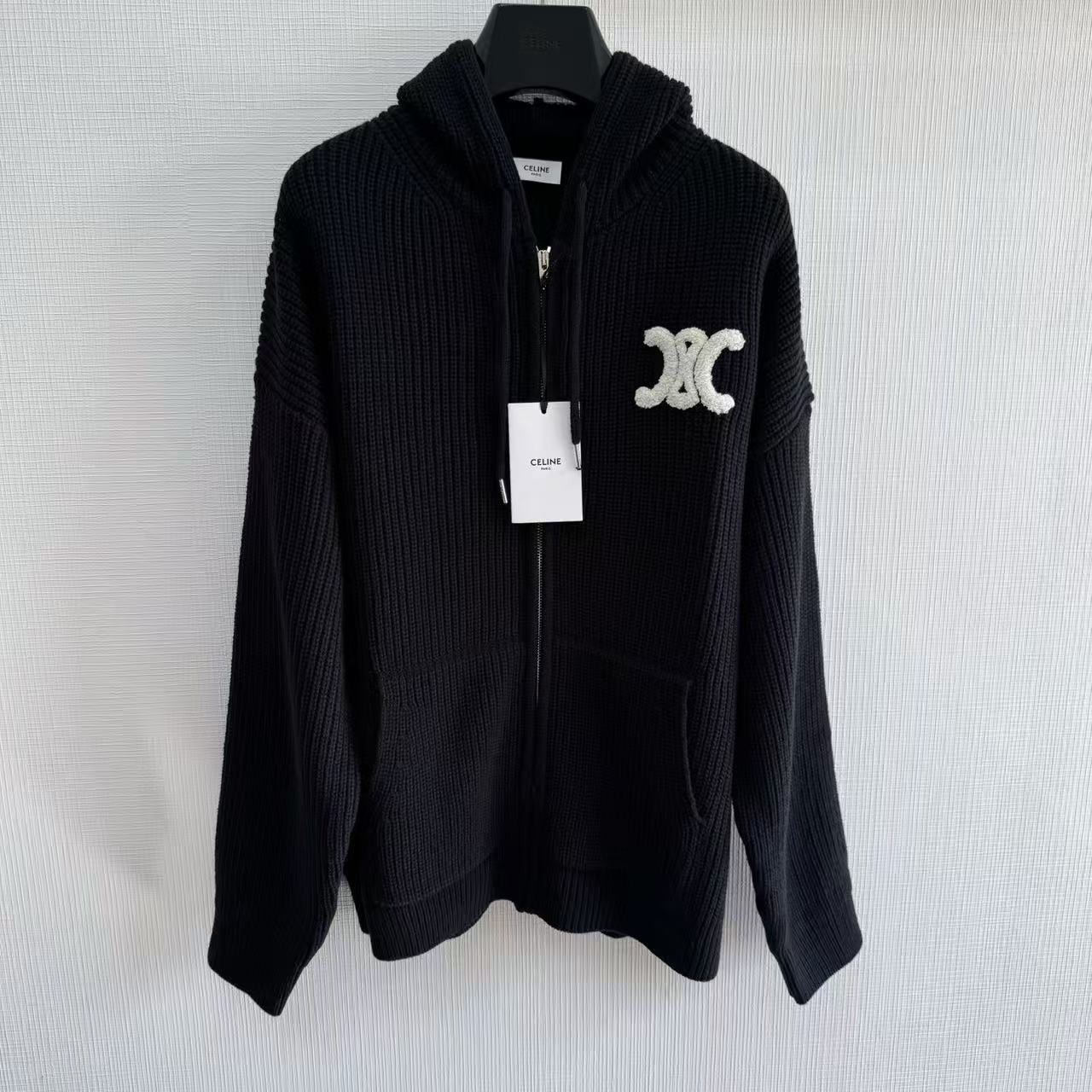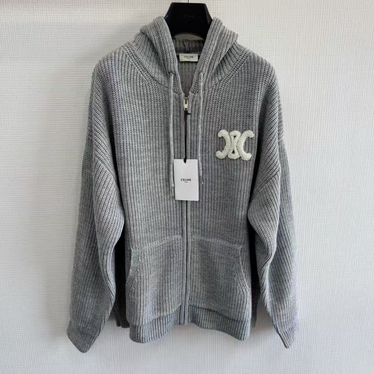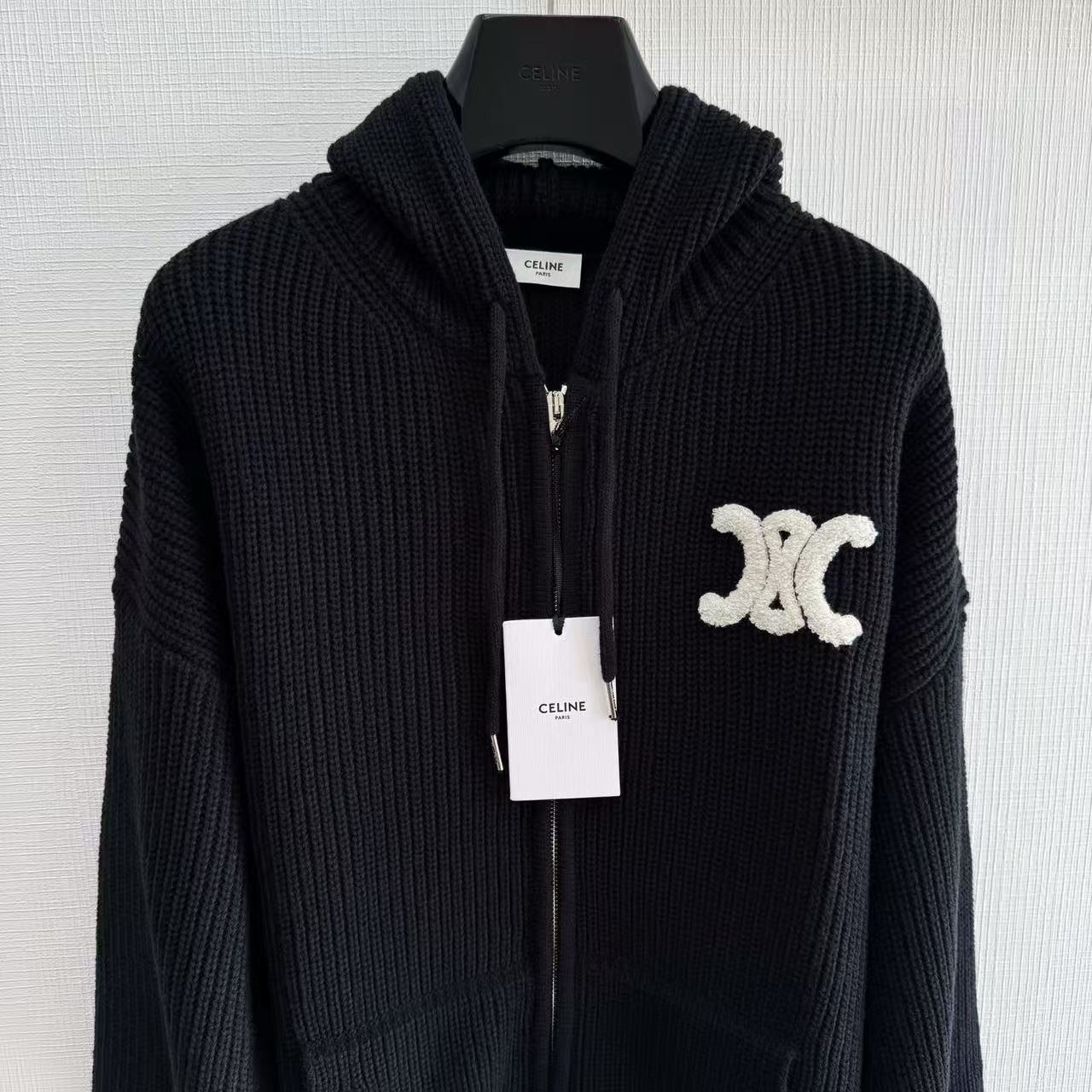 CELINE Hooded Cardigan In Ribbed Wool 連帽拉鏈外套
