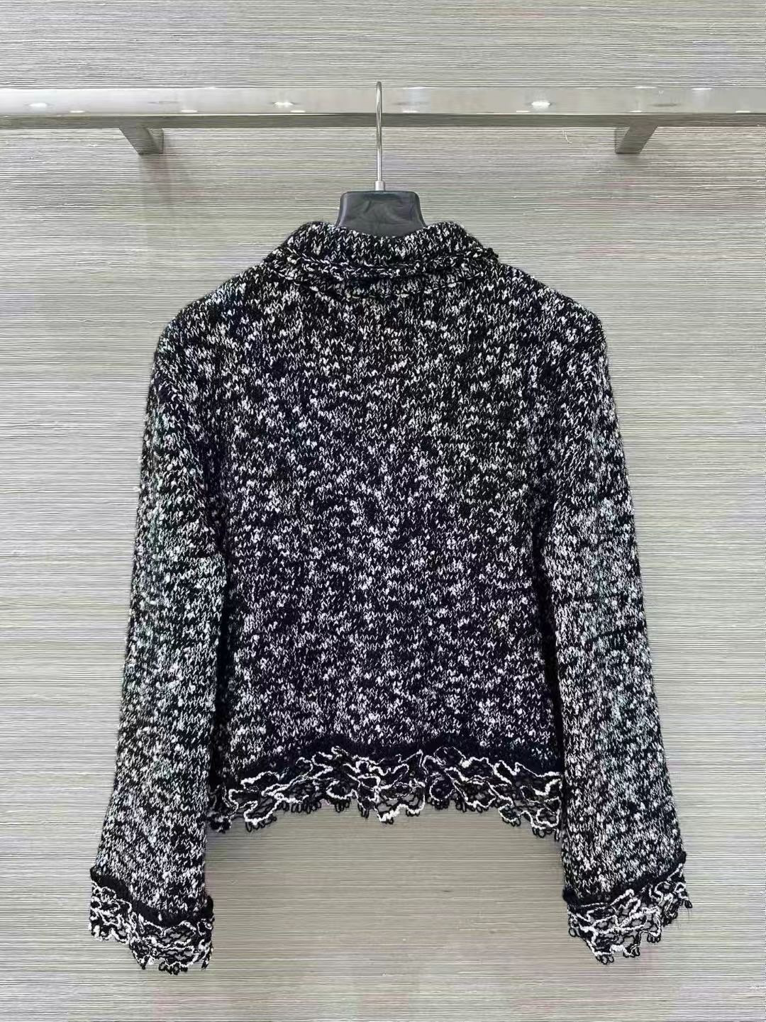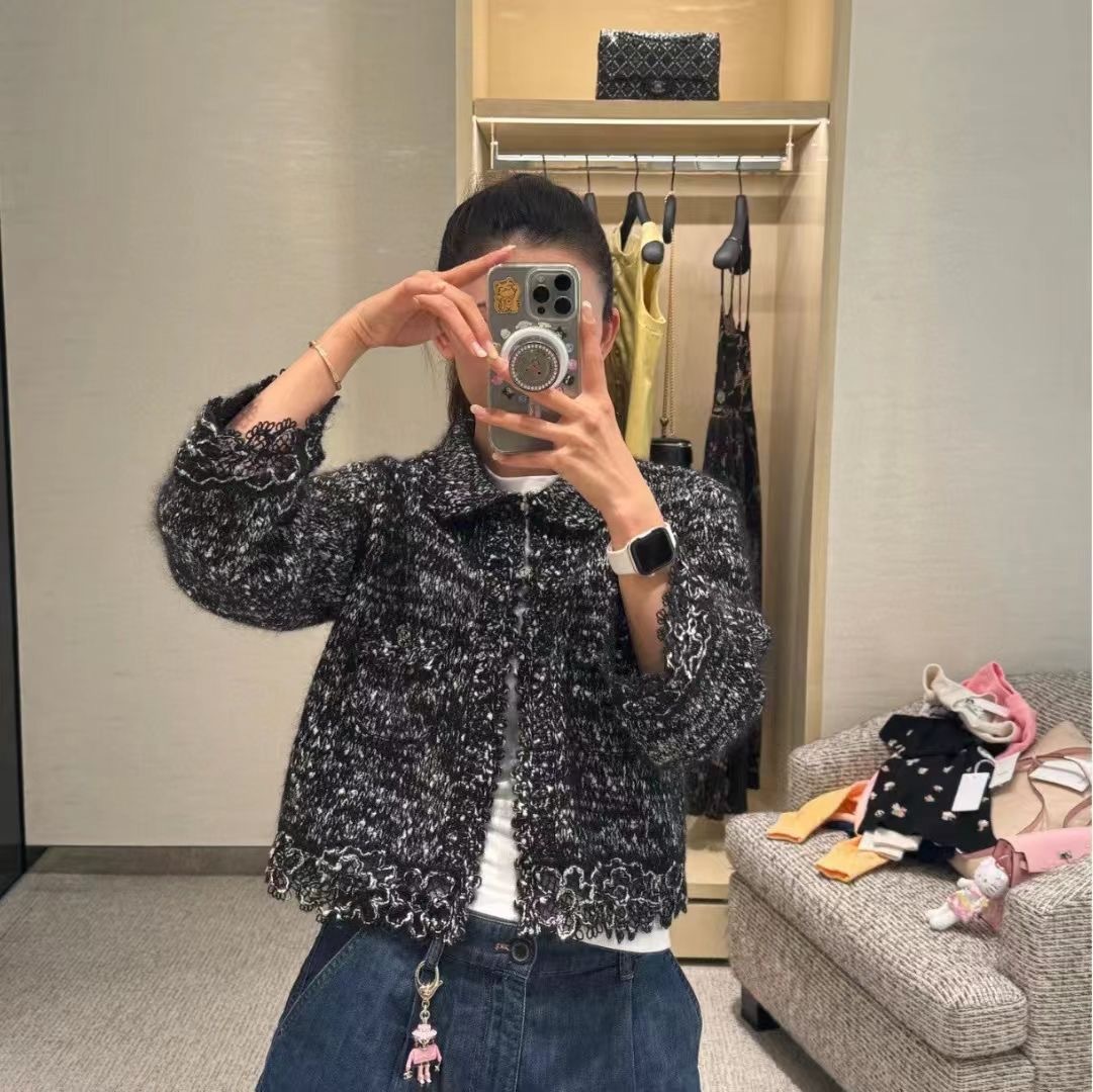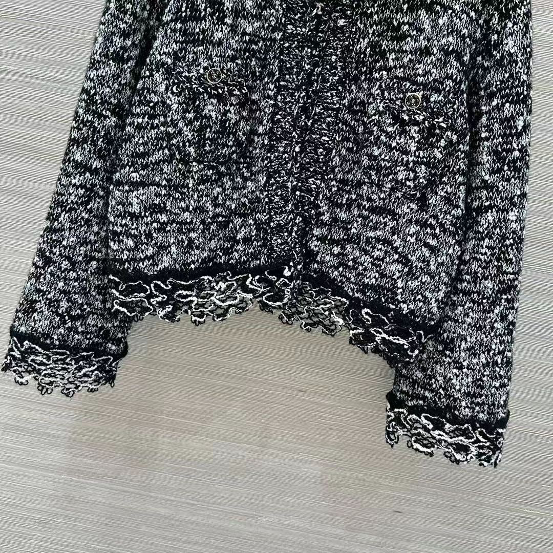 CHANEL 花邊拼接翻領馬海毛針織開襟衫