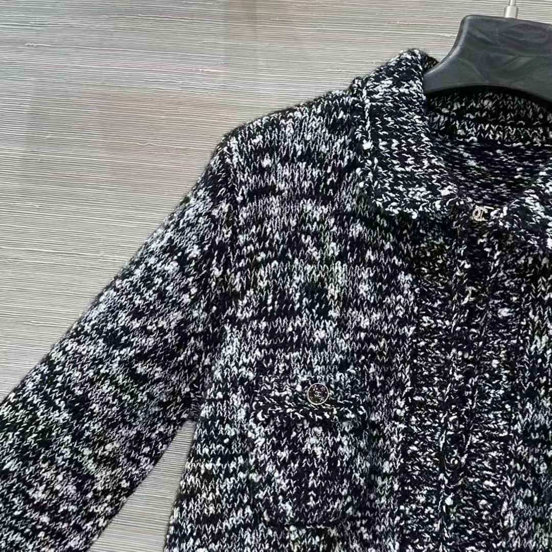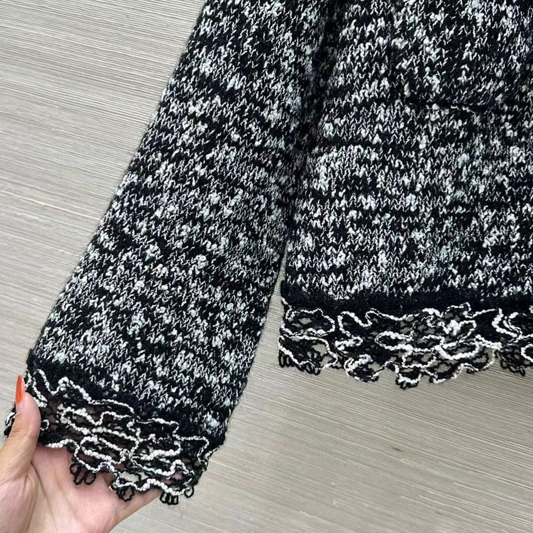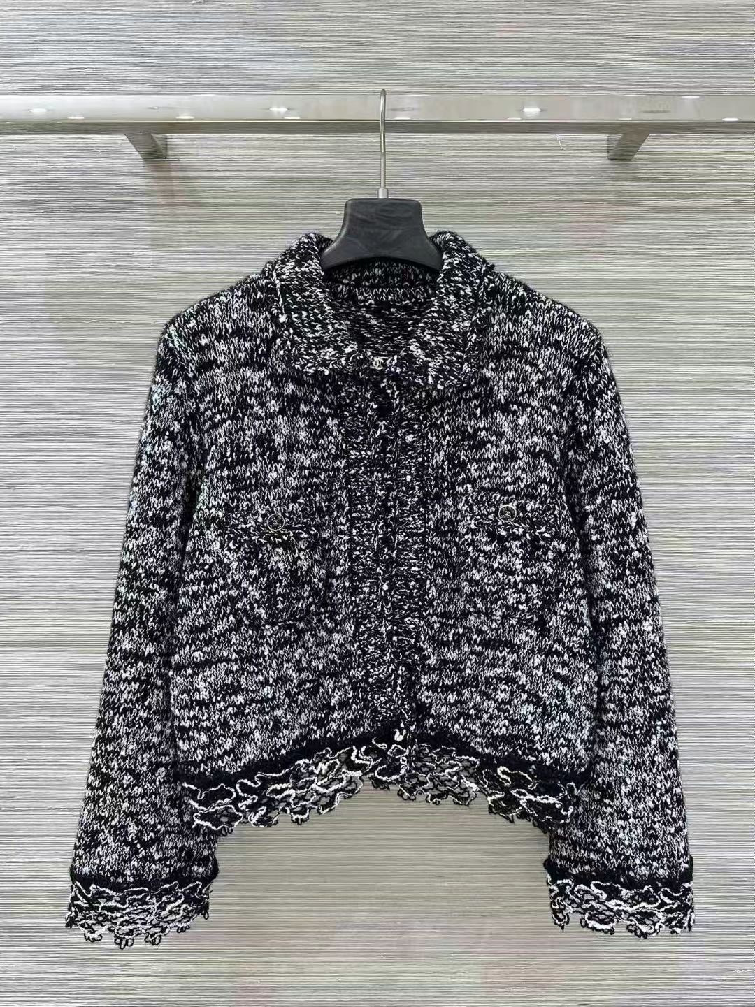 CHANEL 花邊拼接翻領馬海毛針織開襟衫