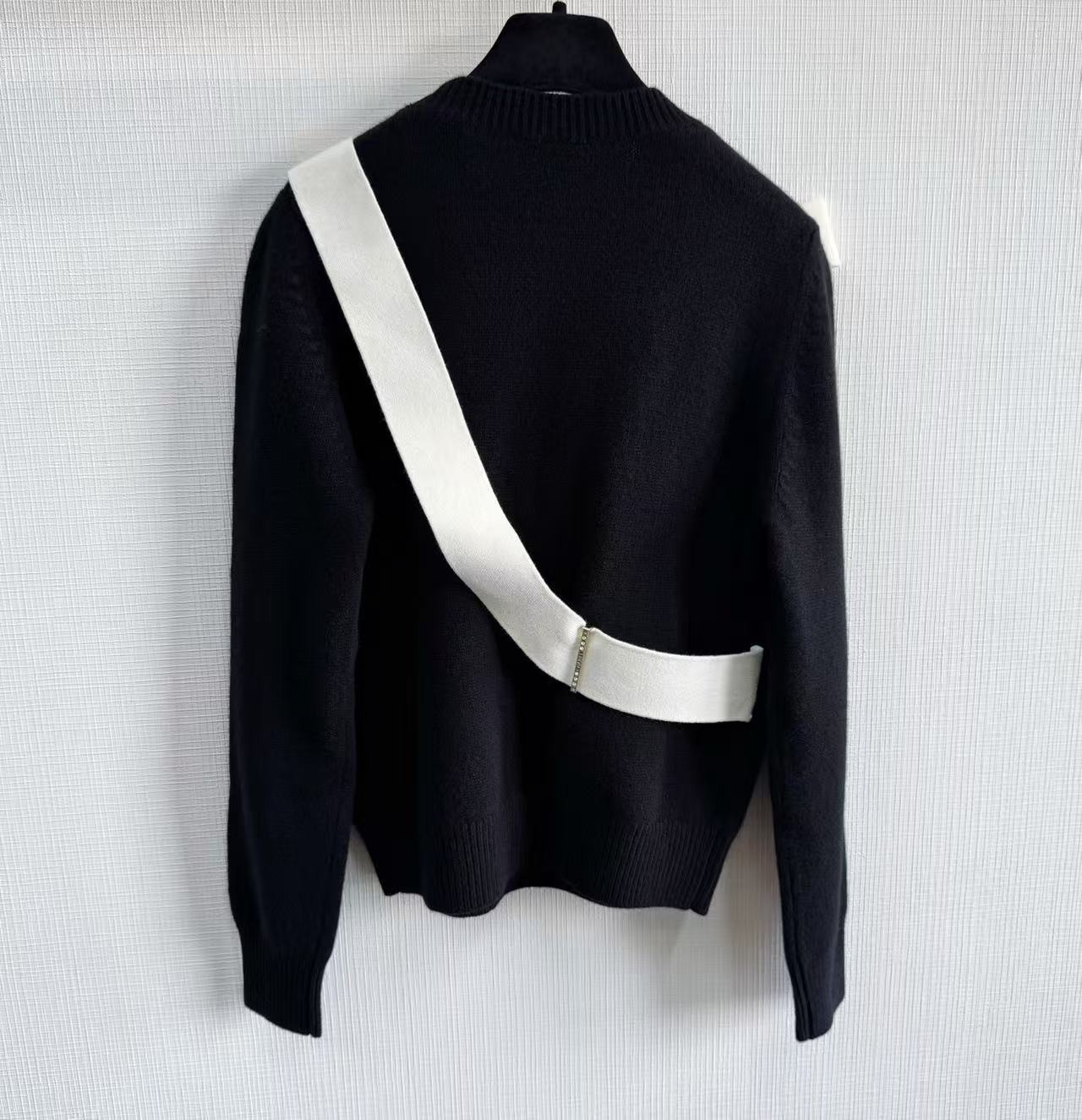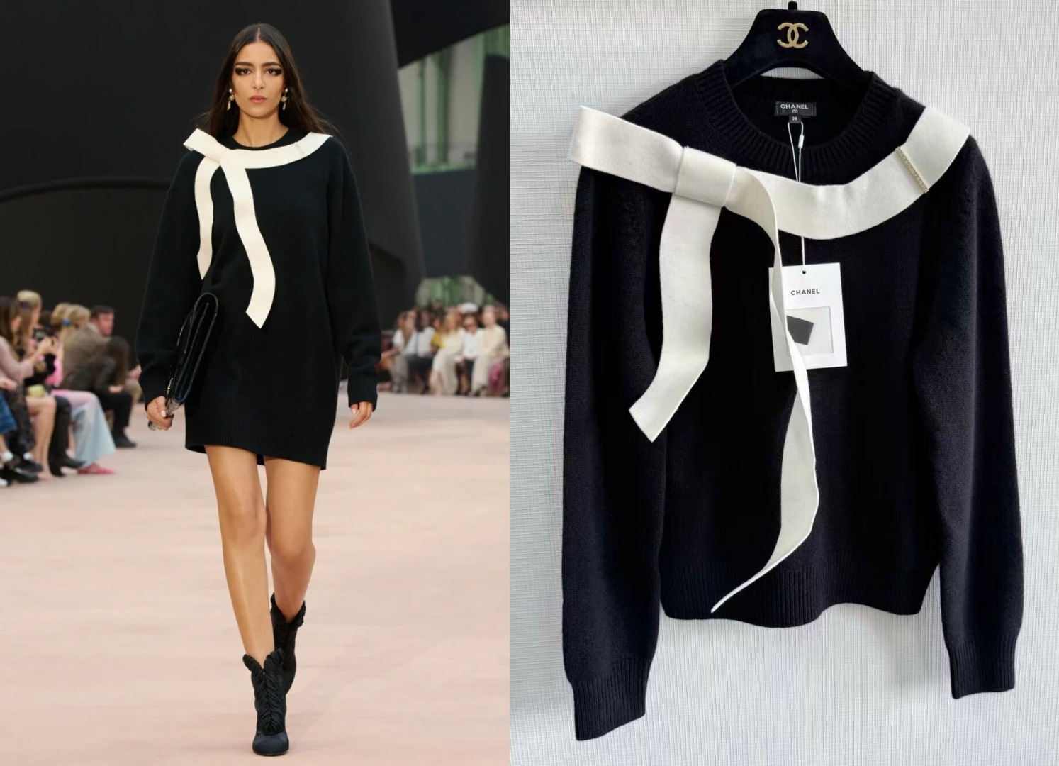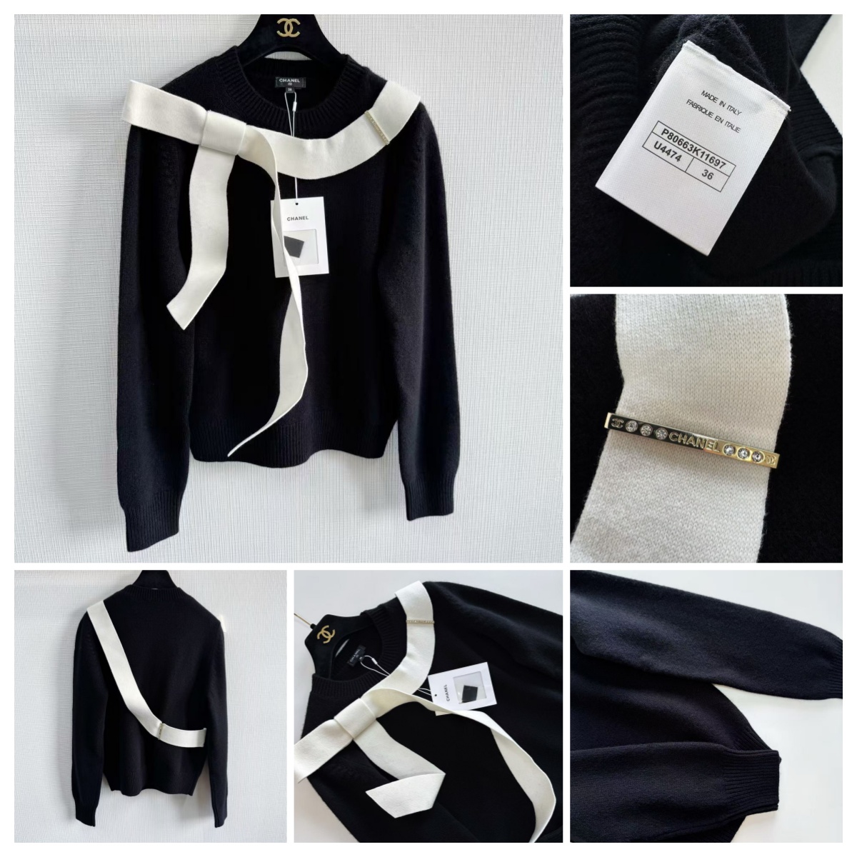 CHANEL 25k黑白拼色蝴蝶結羊絨毛衣冷衫