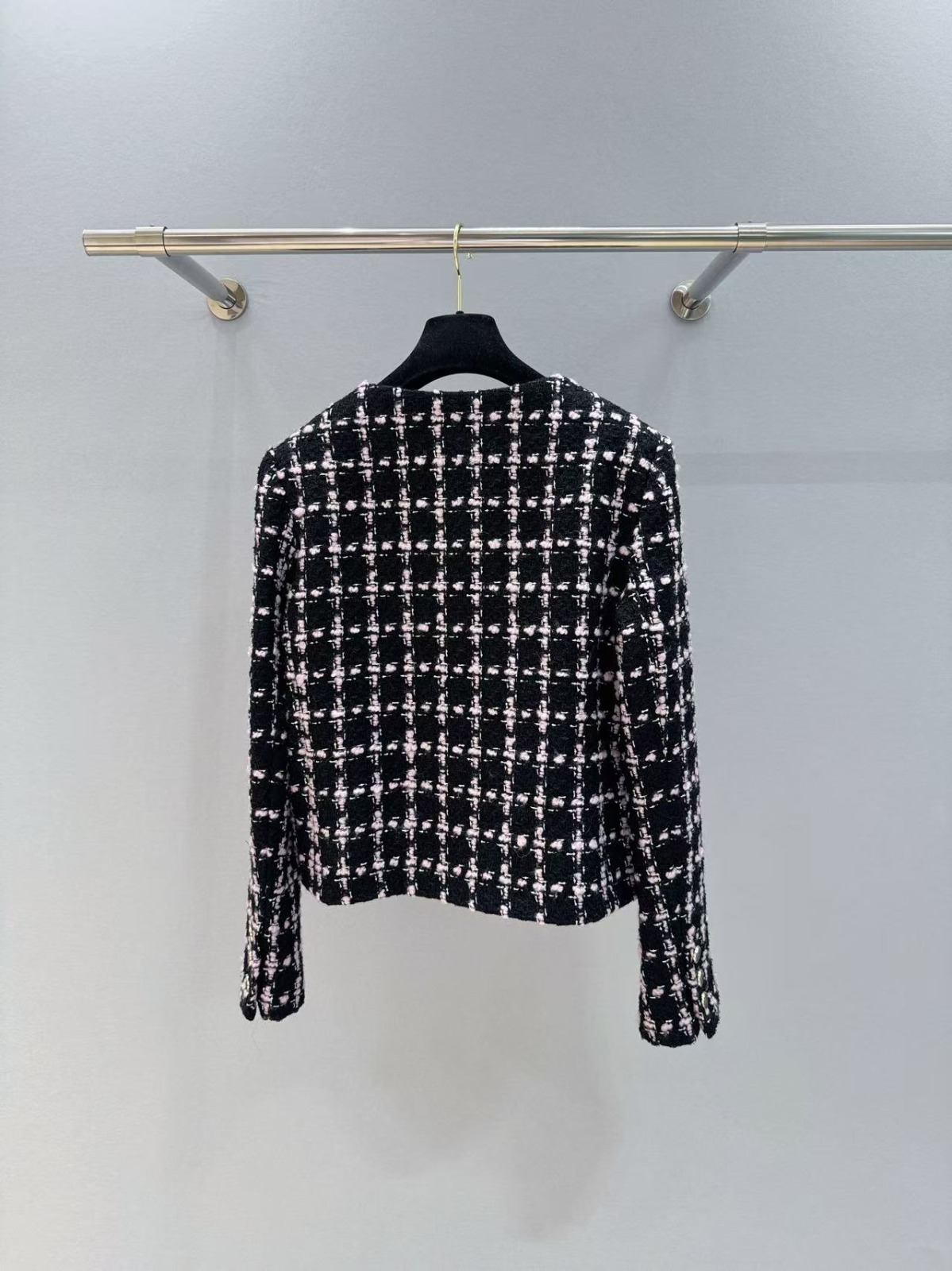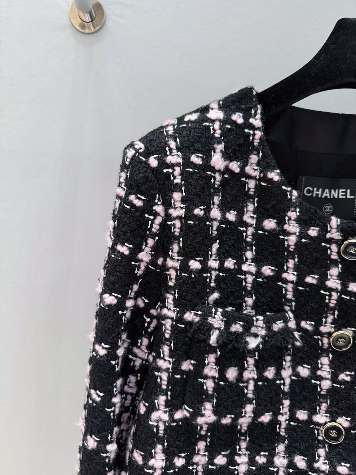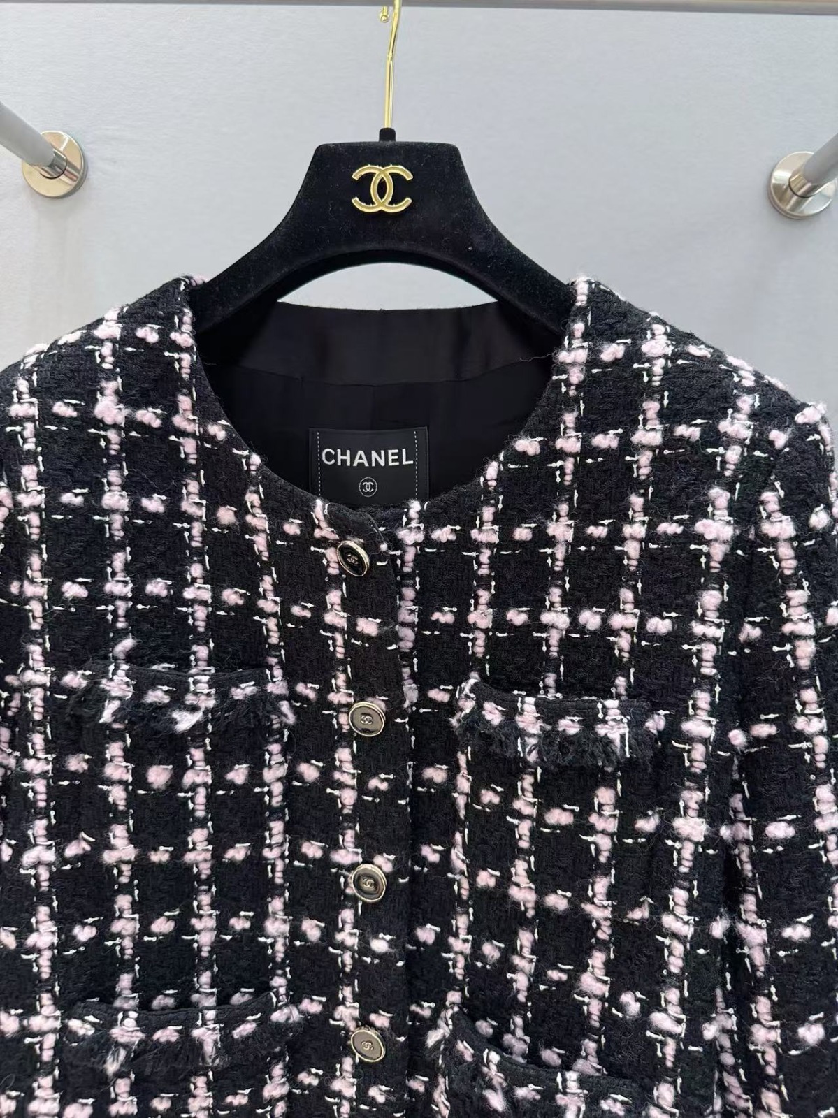 Chanel 25/26 AW 黑拼粉粗花羊毛呢外套