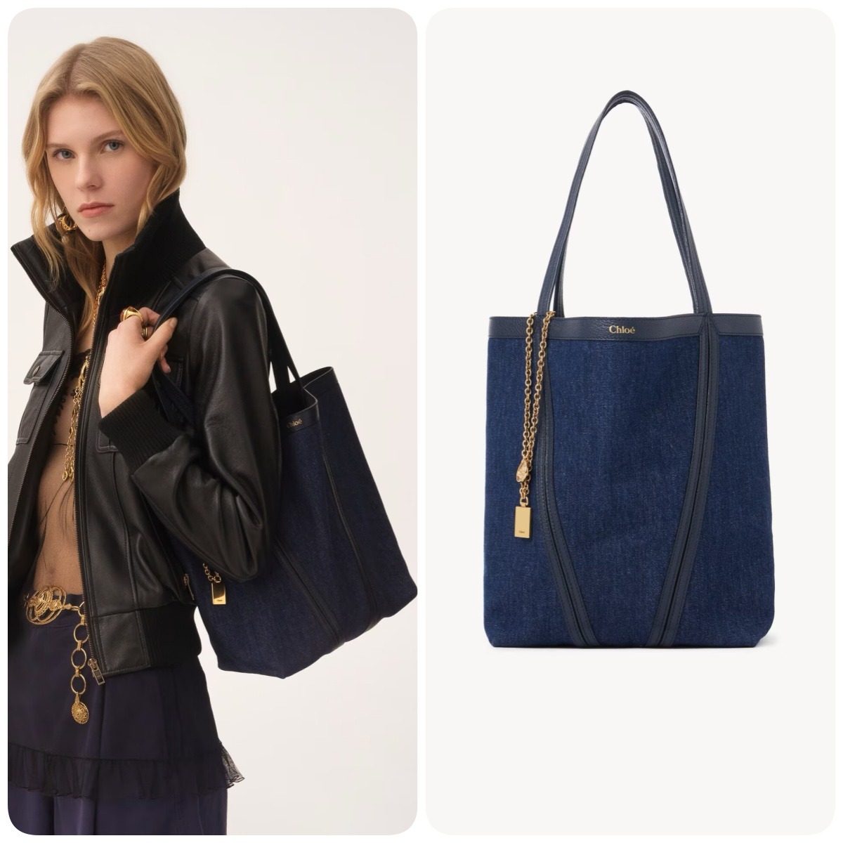 此款包包是Chloè 的暢銷包款之一、Spin推出了單寧牛仔布搭配小牛皮的款式、可以當一個法式優雅小女人也可以兼具個性帥氣的一面